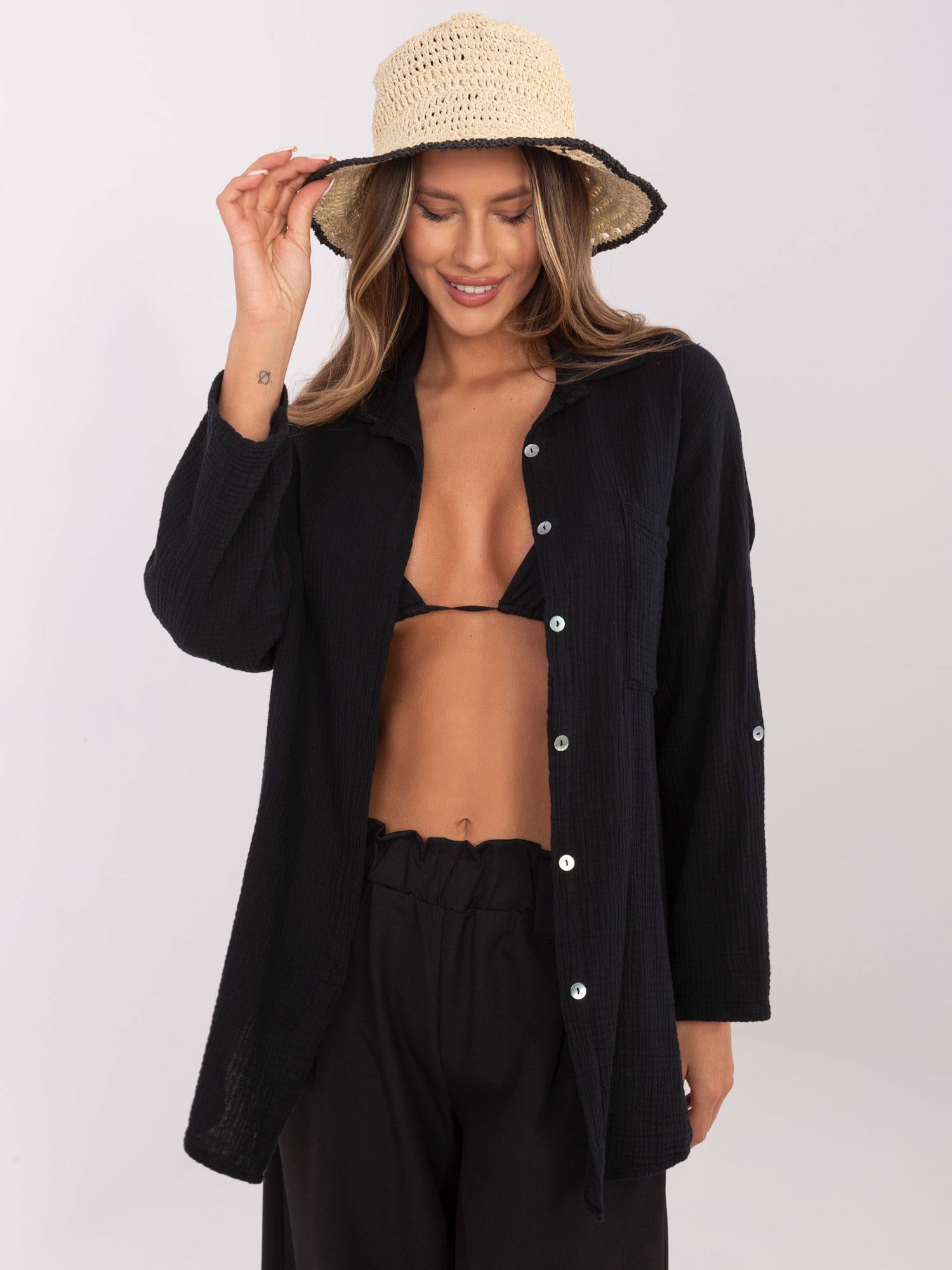 Wymiary koszuli w rozmiarze one size mierzone na płasko: szerokość pod pachami - 64 cm, długość rękawa - 41 cm (od szwu), długość całkowita - 74 cm, szerokość w biodrach - 62 cm.
