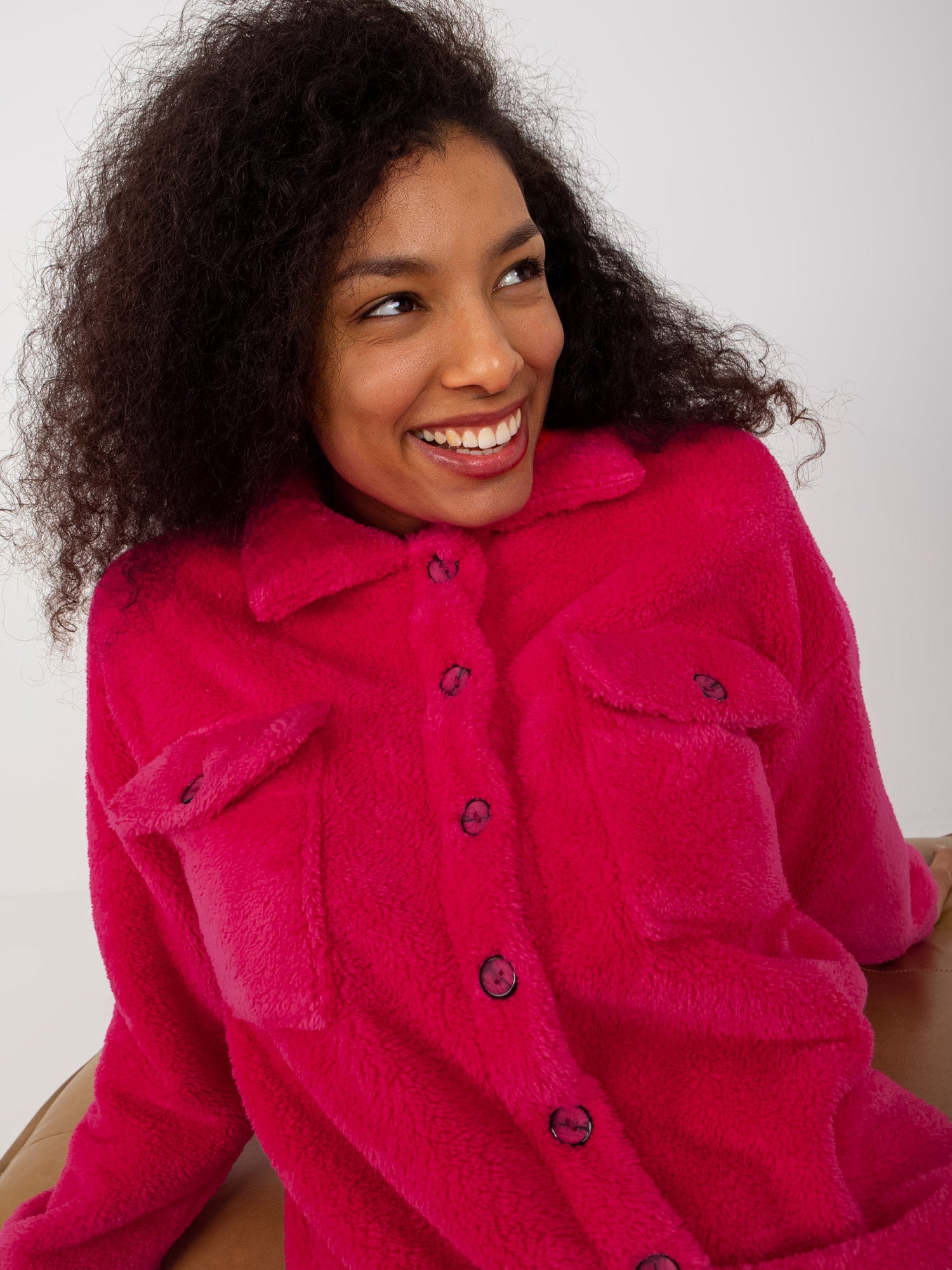 Fuksjowa futrzana koszula wierzchnia z kieszeniami RUE PARIS .
