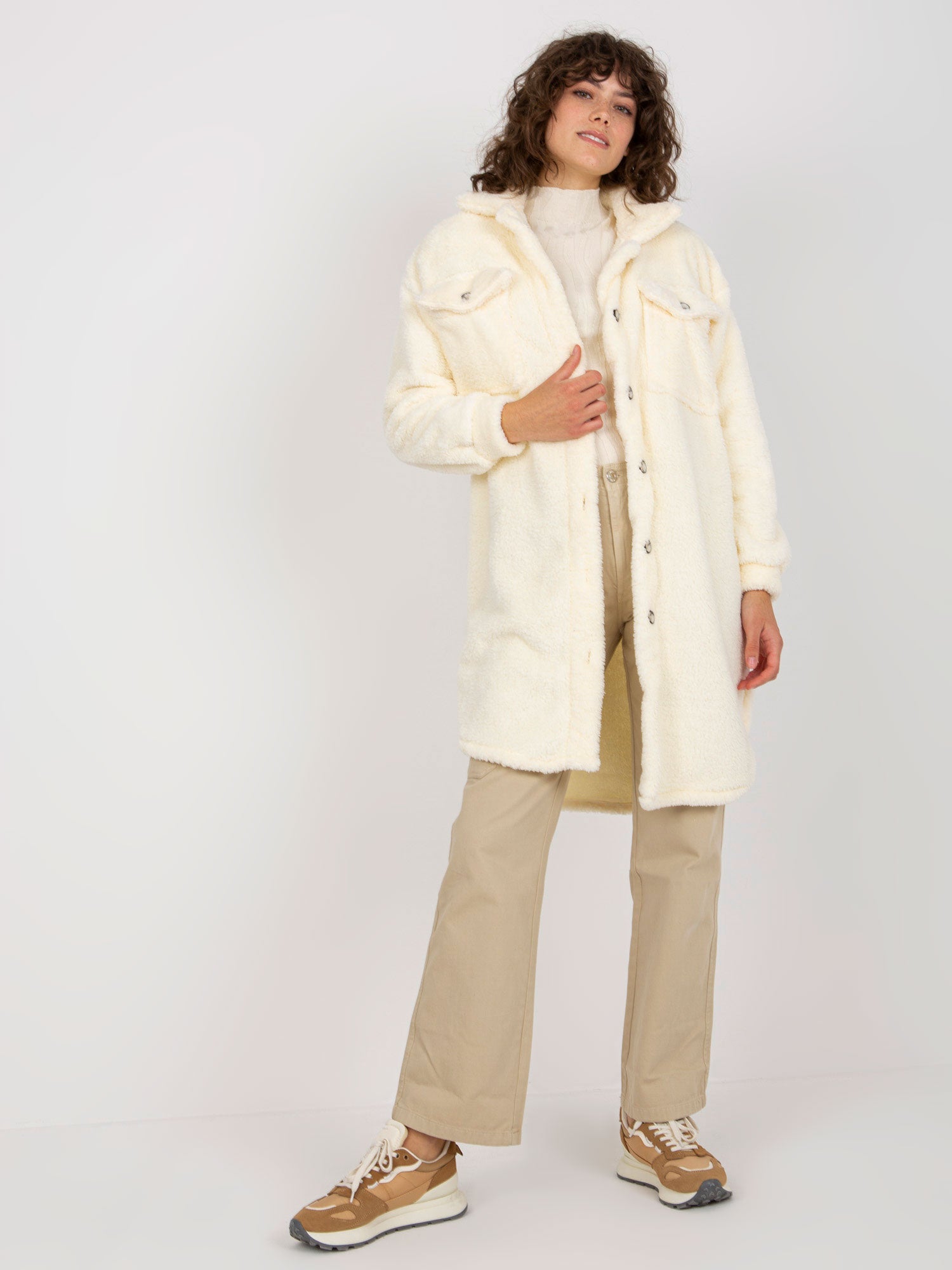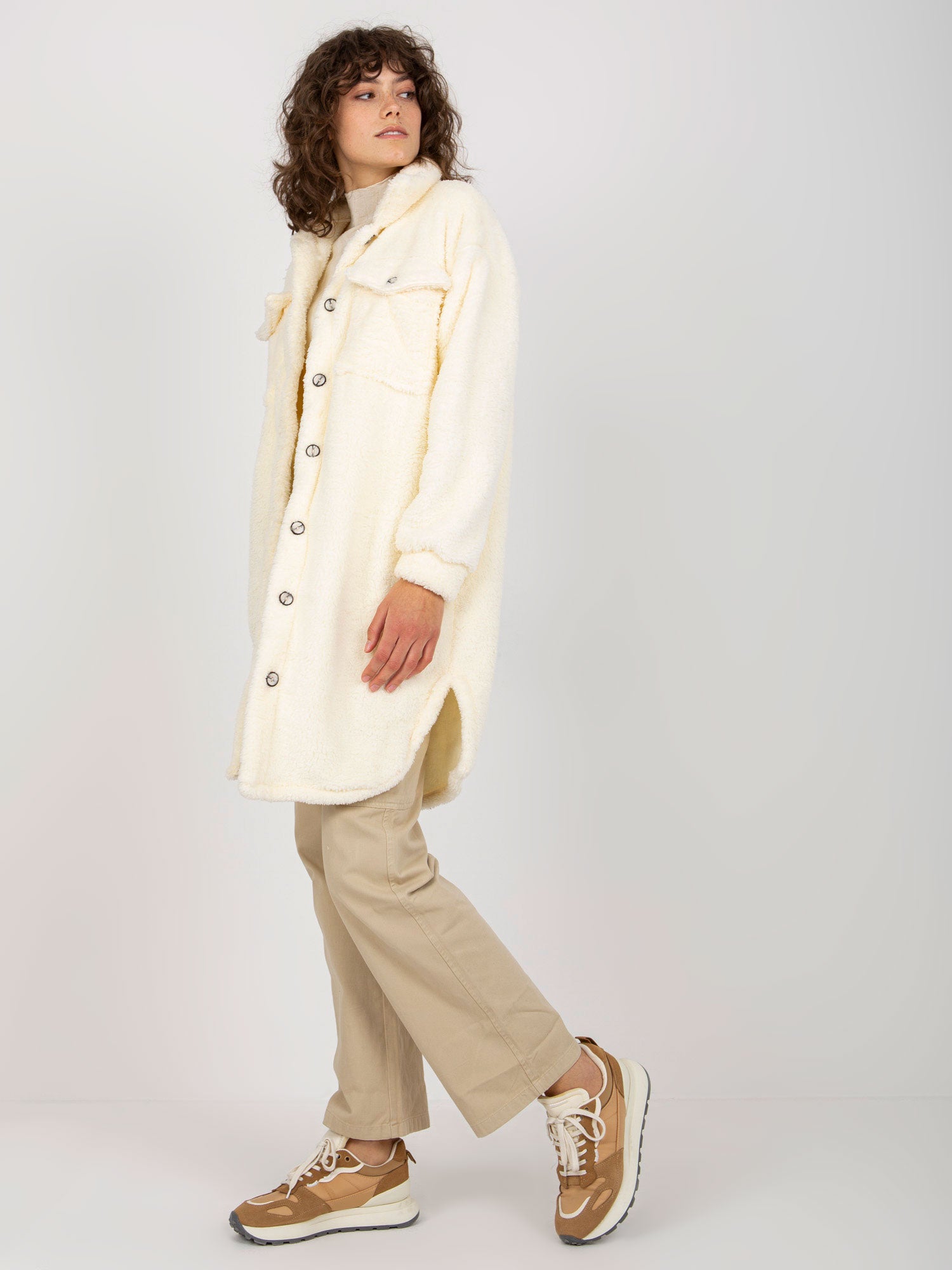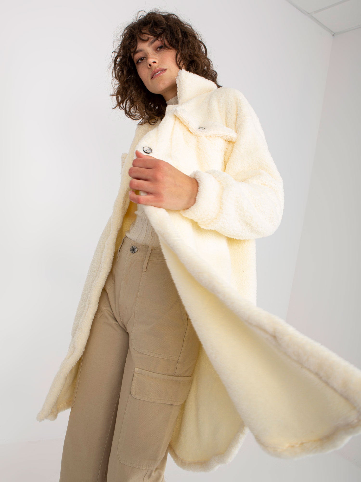 Ecru długa koszula futrzana z kołnierzykiem RUE PARIS .