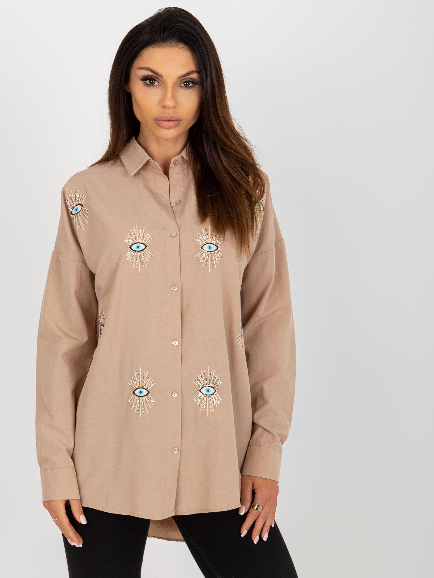 Wymiary koszuli w rozmiarze S mierzone na płasko: szerokość pod pachami - 60 cm, długość rękawa - 62 cm, długość całkowita (przód) - 71 cm, długość całkowita (tył) - 78 cm.