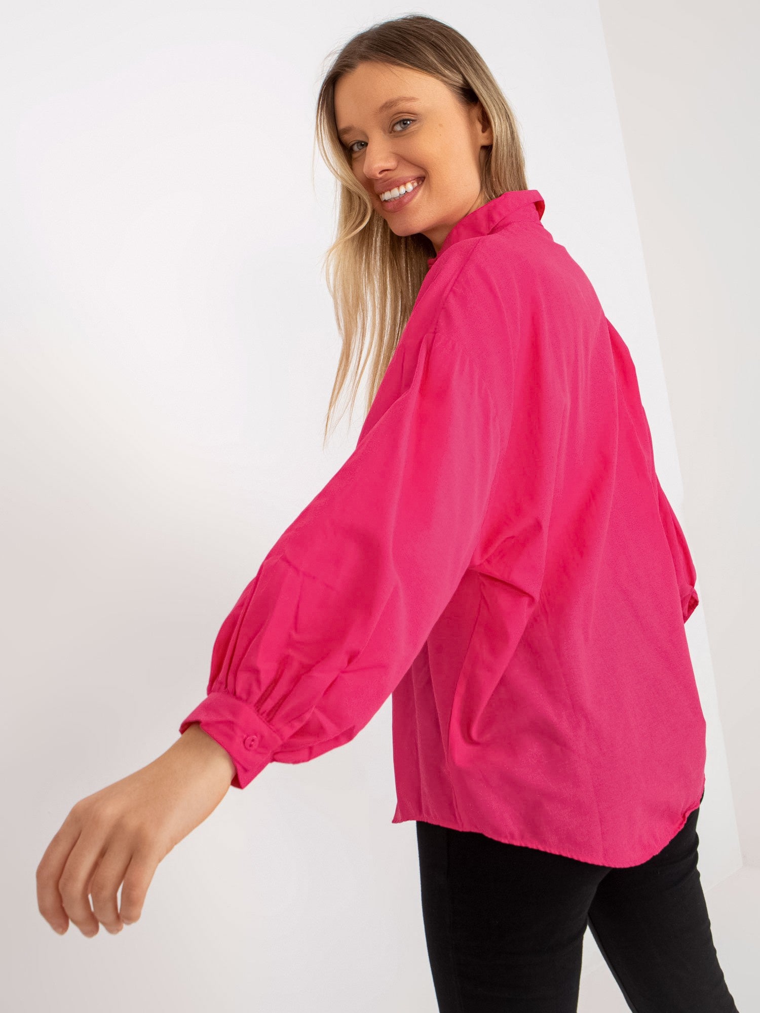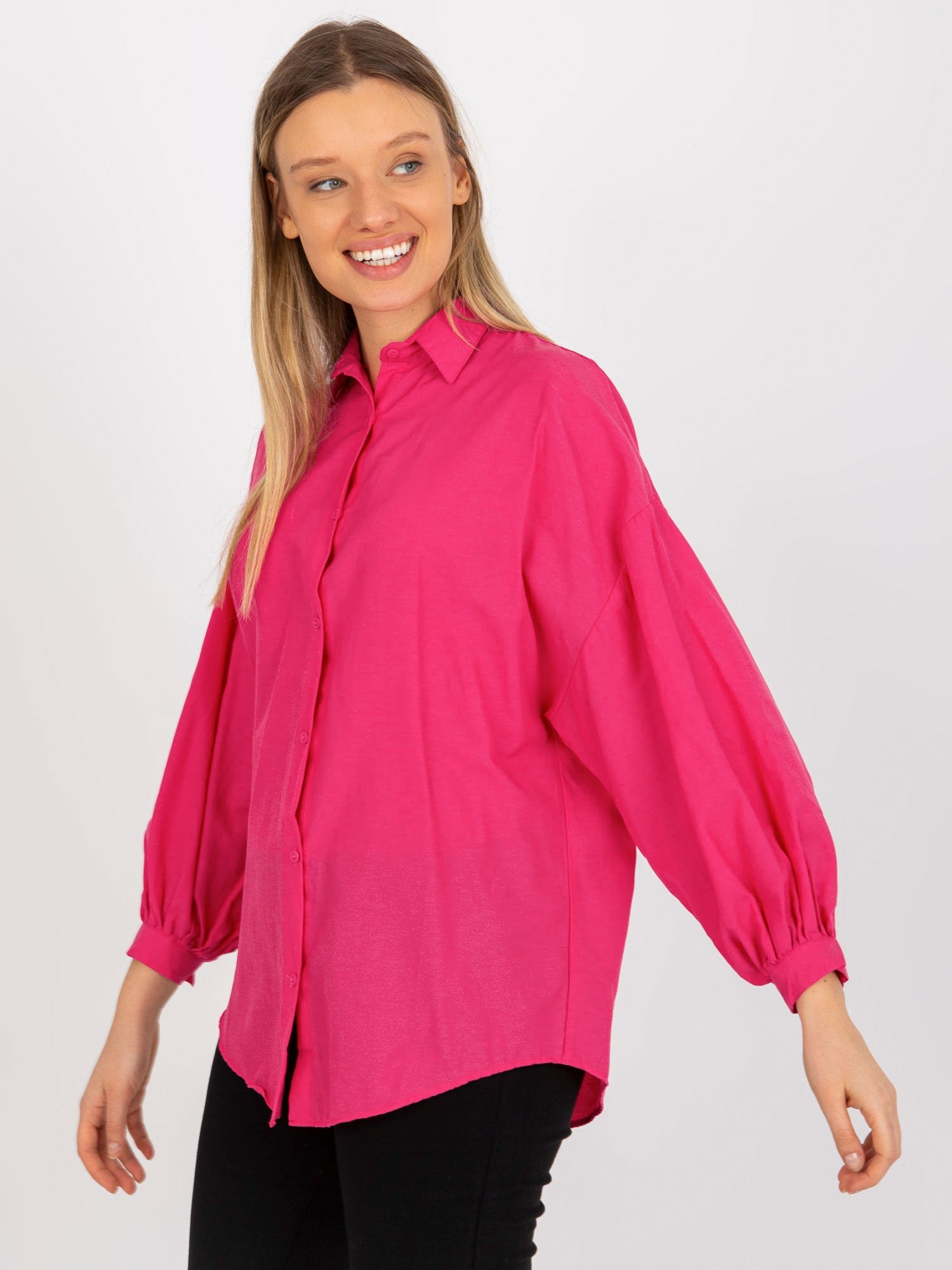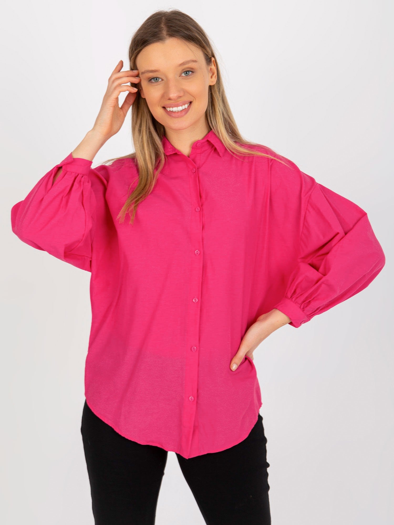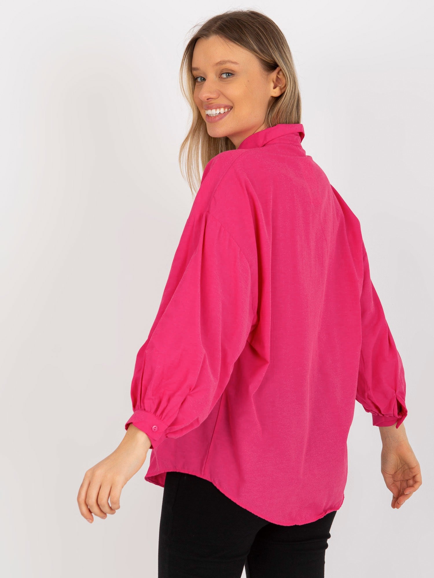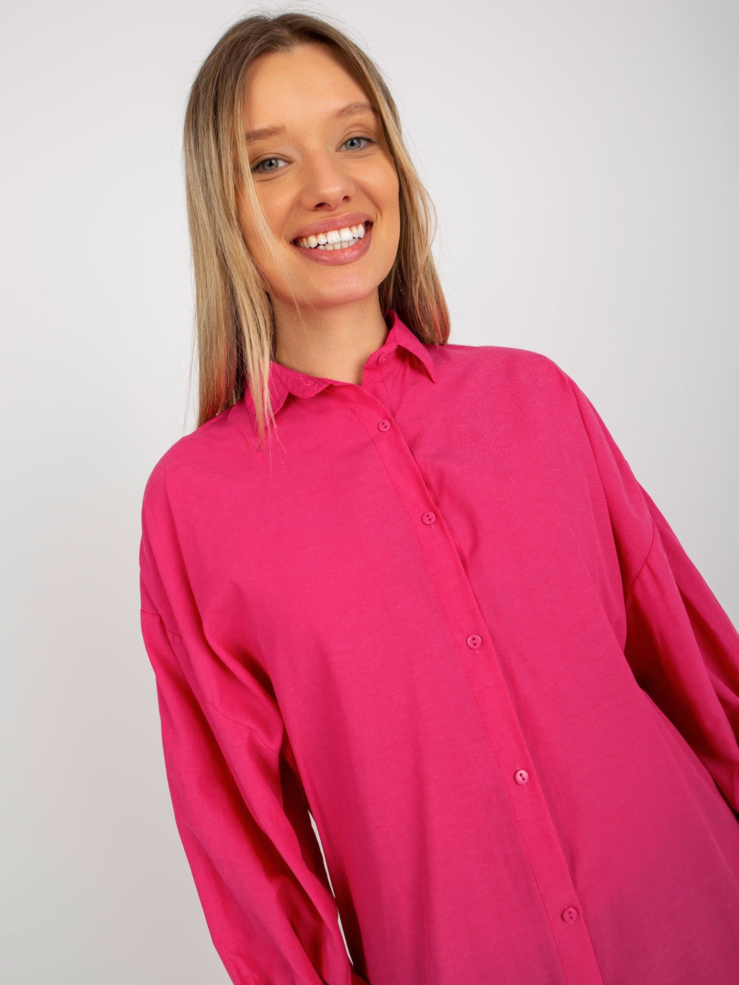 Ciemnoróżowa damska koszula oversize z kołnierzem .