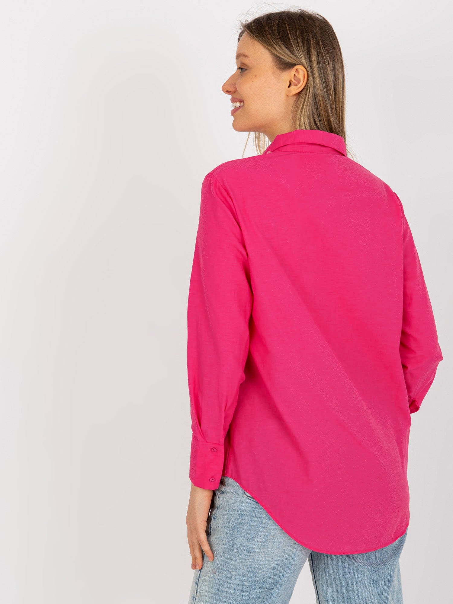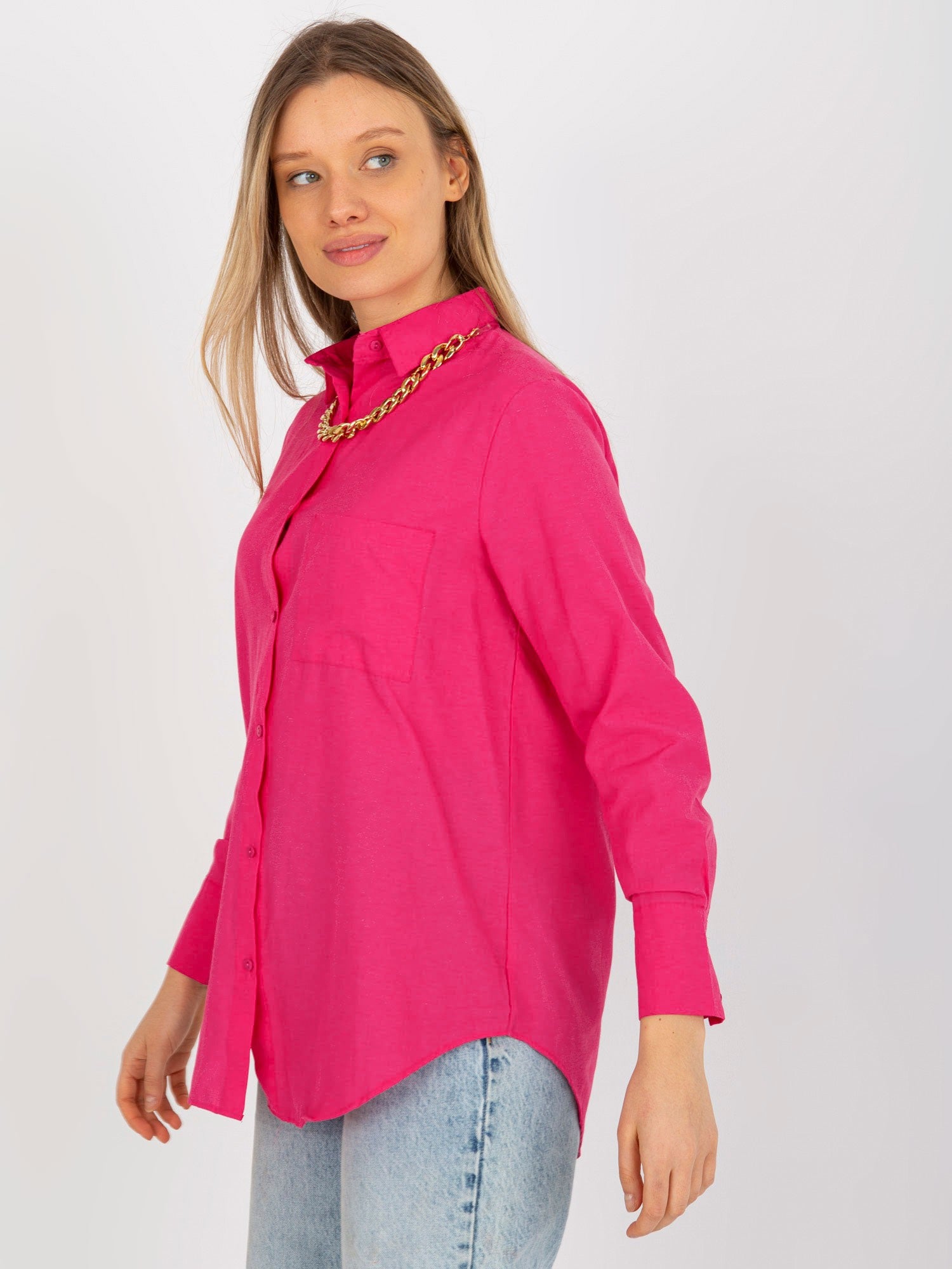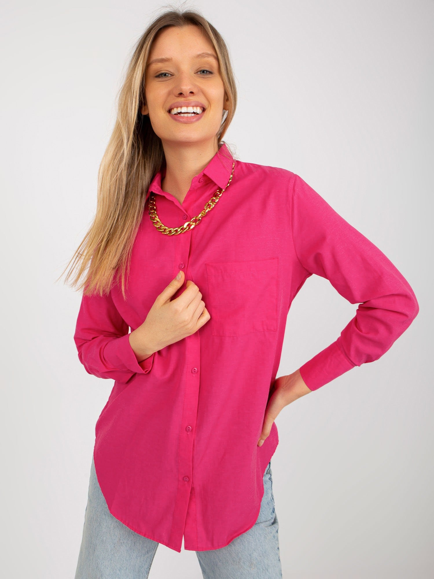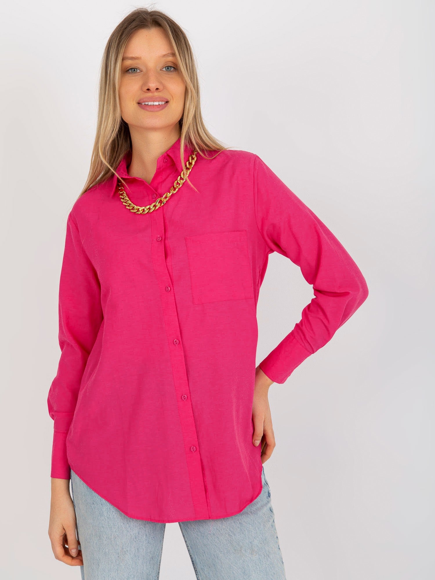 Ciemnoróżowa rozpinana koszula oversize z kieszenią .