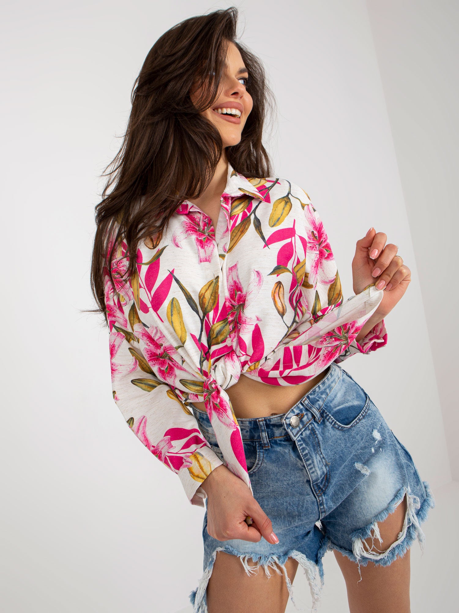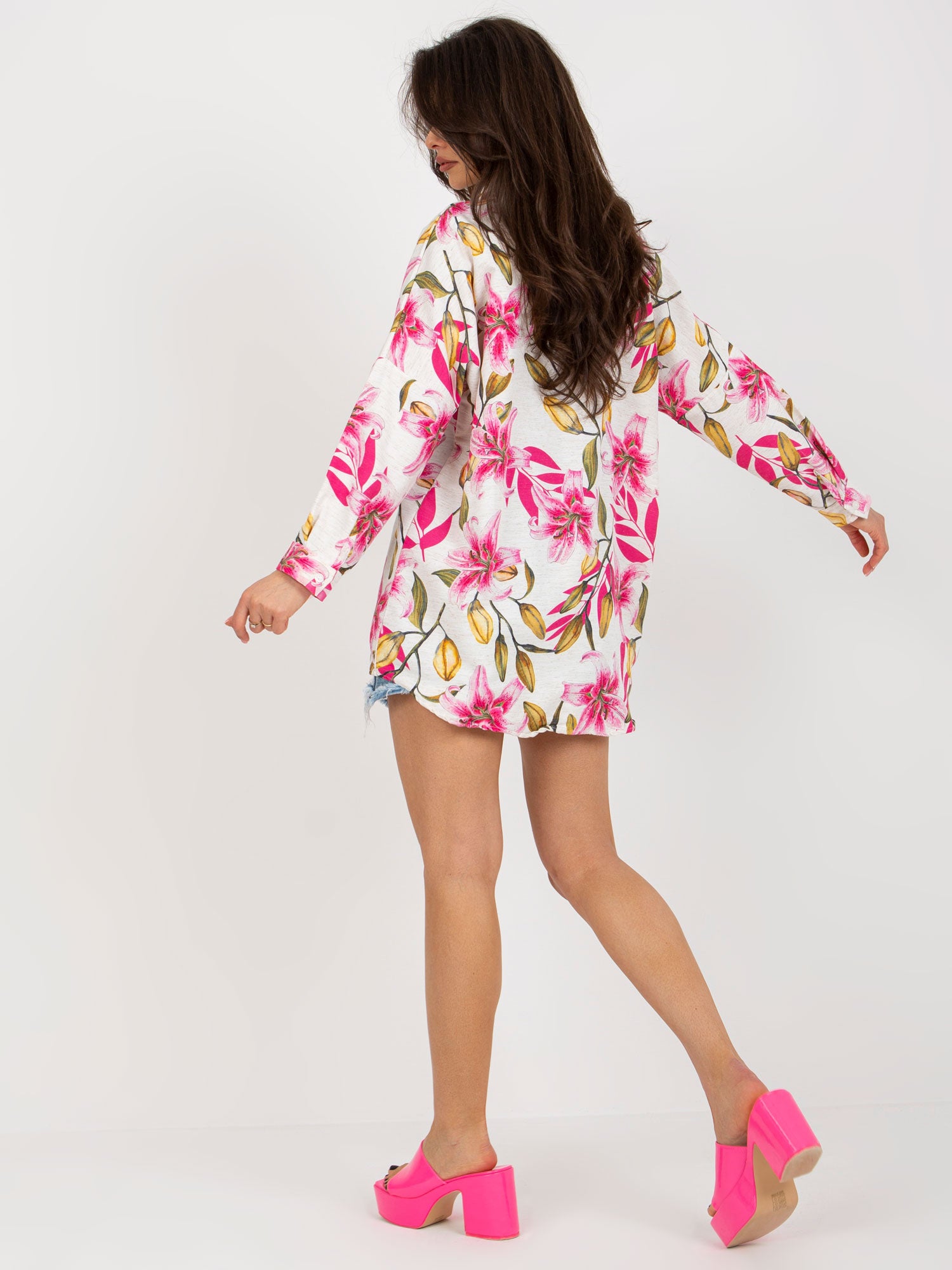 Wymiary koszuli w rozmiarze one size mierzone na płasko: szerokość pod pachami - 69 cm, długość rękawa - 58 cm, długość całkowita - 80 cm.