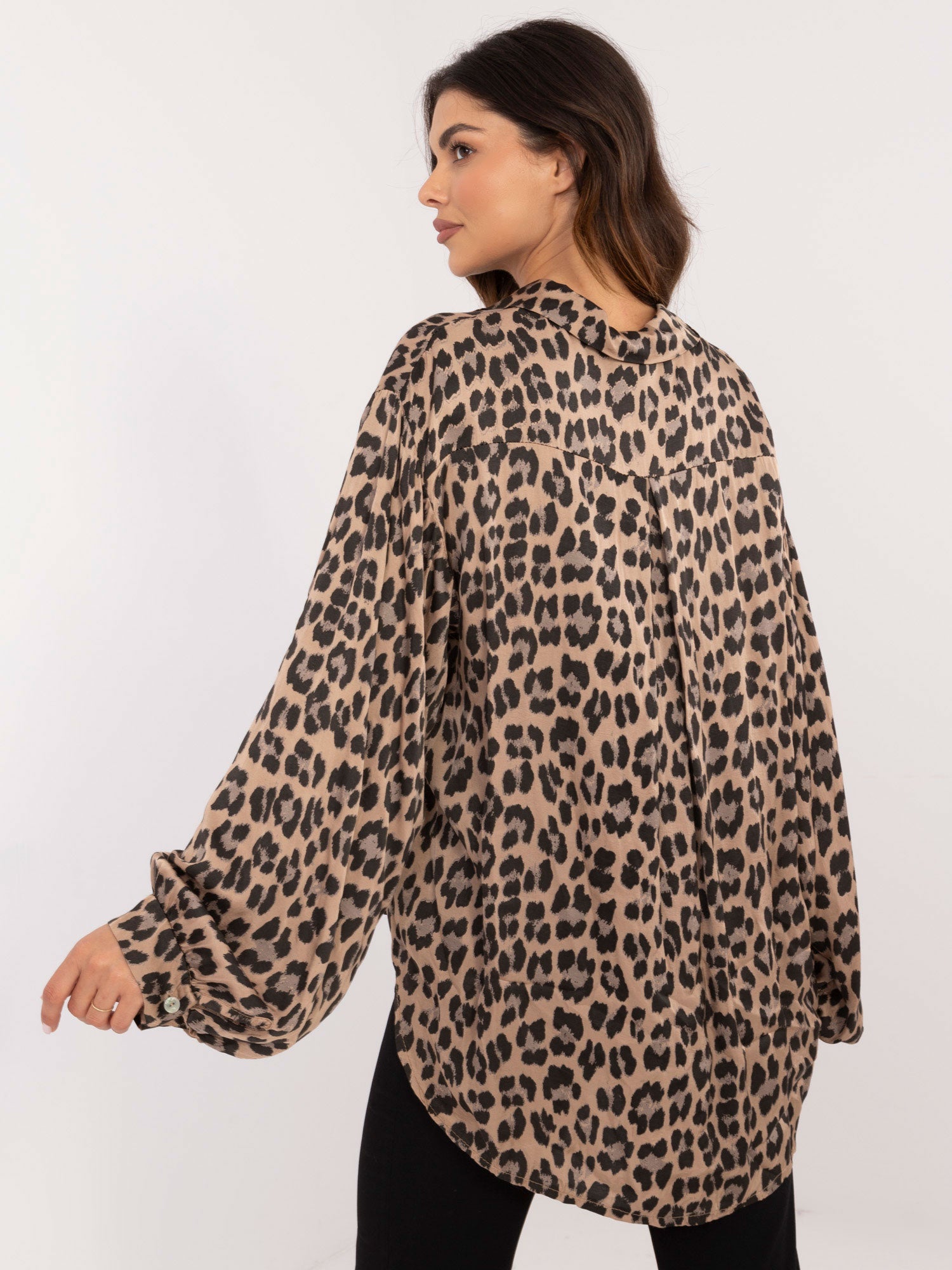 Wymiary koszuli w rozmiarze one size mierzone na płasko: szerokość pod pachami - 65 cm, długość całkowita (przód) - 70 cm, długość całkowita (tył) - 82 cm, długość rękawa - 70 cm..