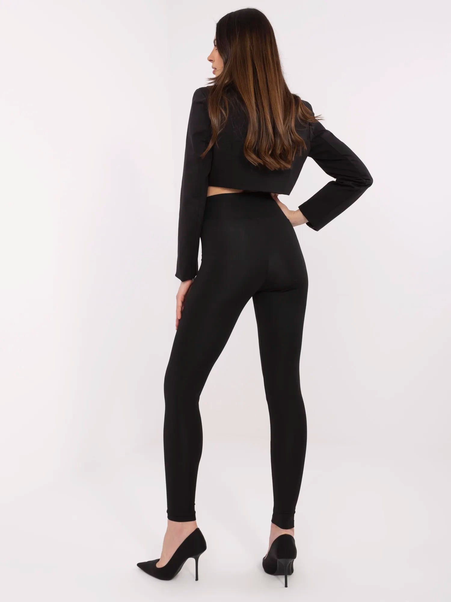 Wymiary legginsów w rozmiarze S mierzone na płasko: szerokość w pasie - 28 cm (na płasko), szerokość w pasie - 50 cm (po rozciągnięciu), wysokość stanu - 32 cm, szerokość w biodrach - 34 (na płasko), szerokość w biodrach - 58 (po rozciągnięciu), długość całkowita - 102 cm.