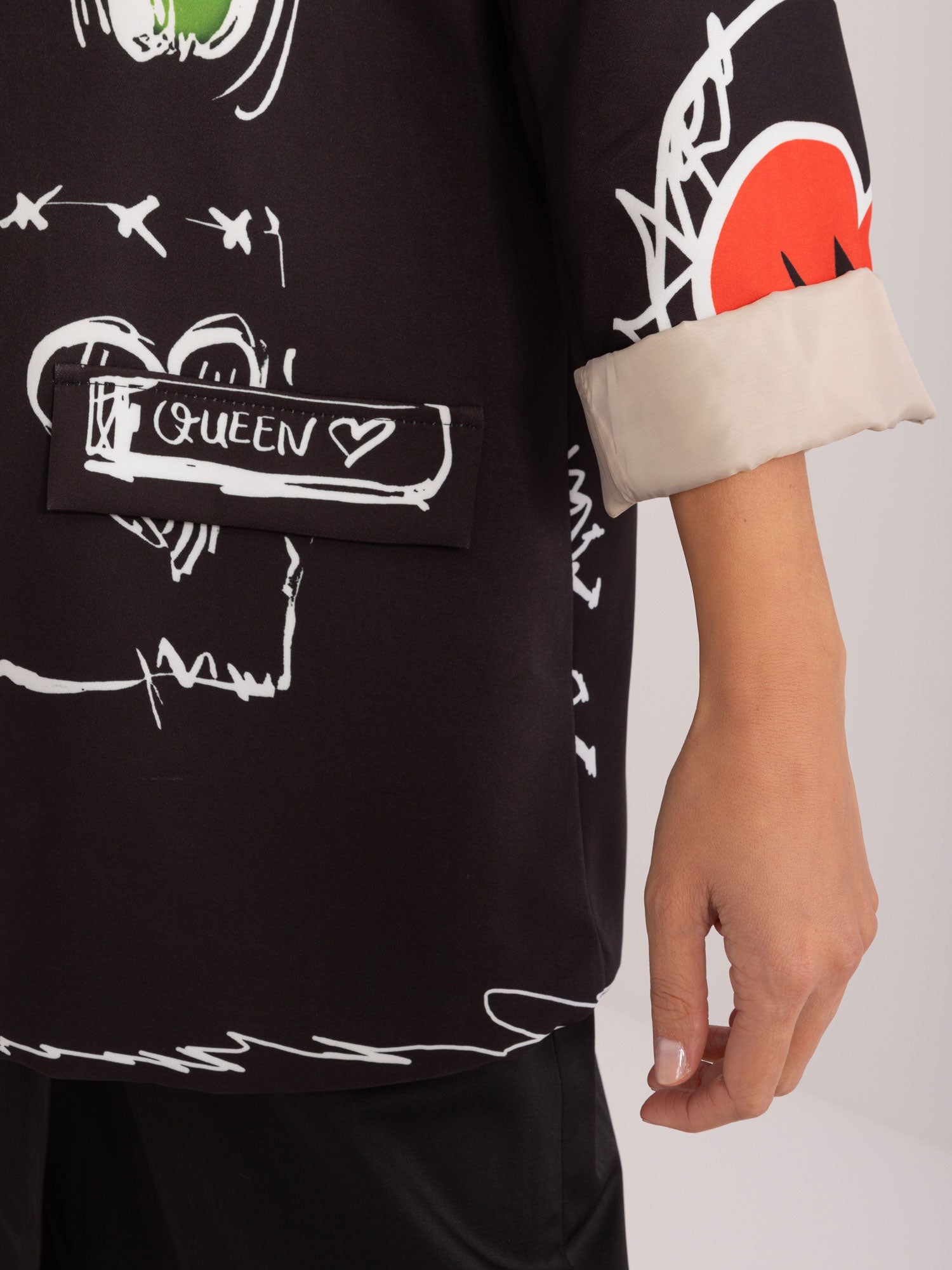 Modelka ma na sobie rozmiar one size. Wymiary modelki: wzrost 175 cm, biust 90 cm, talia 66 cm, biodra 94 cm.