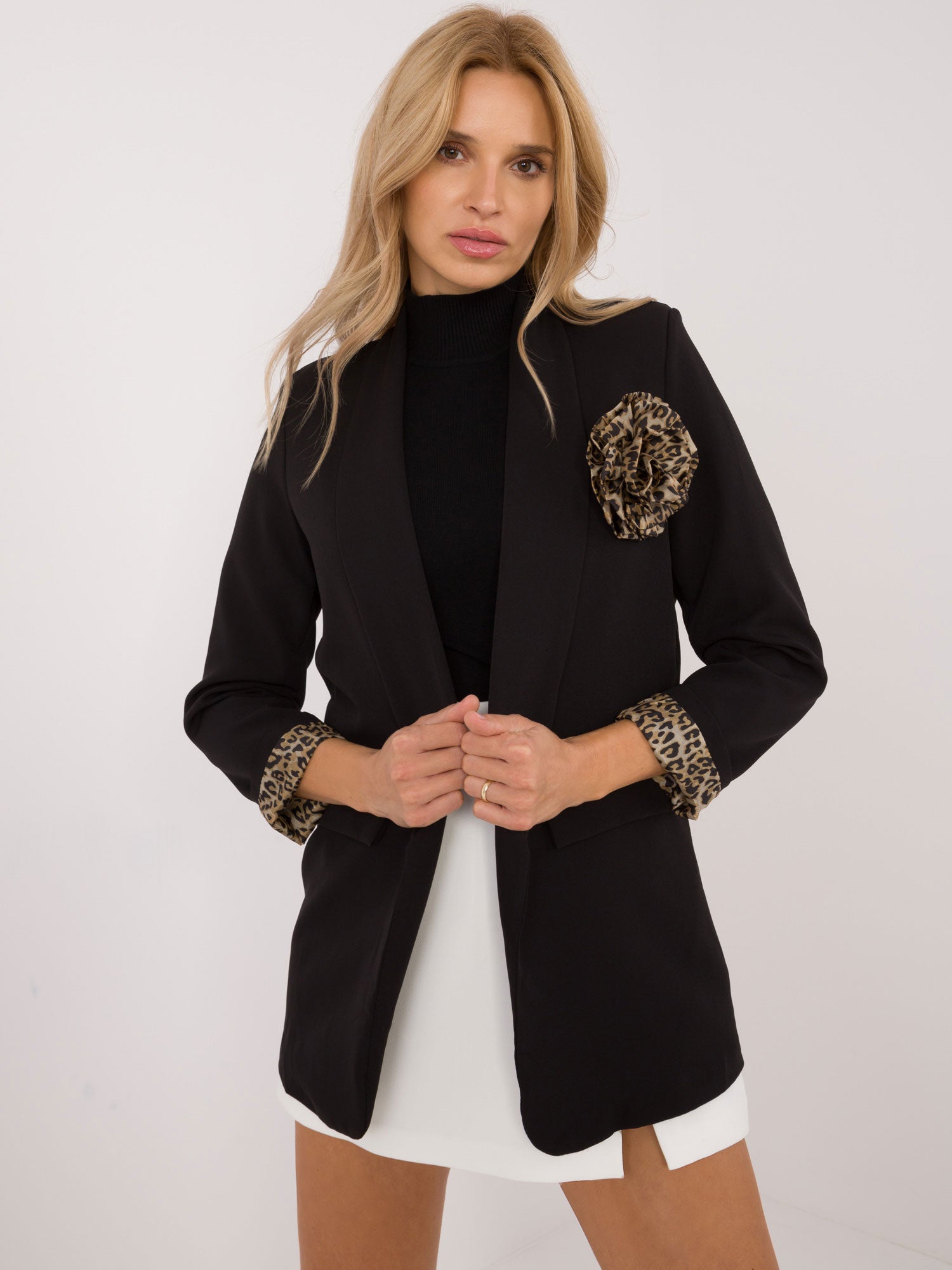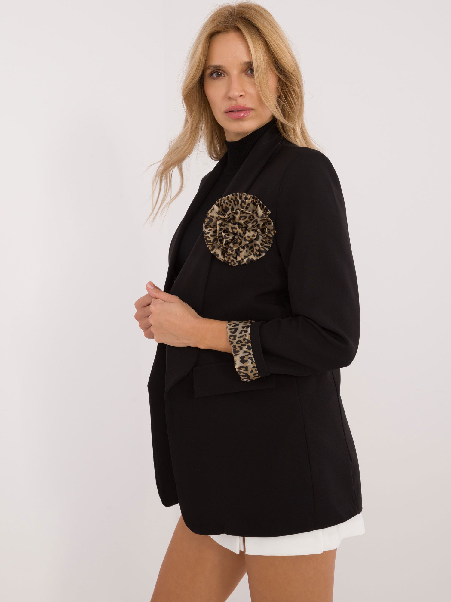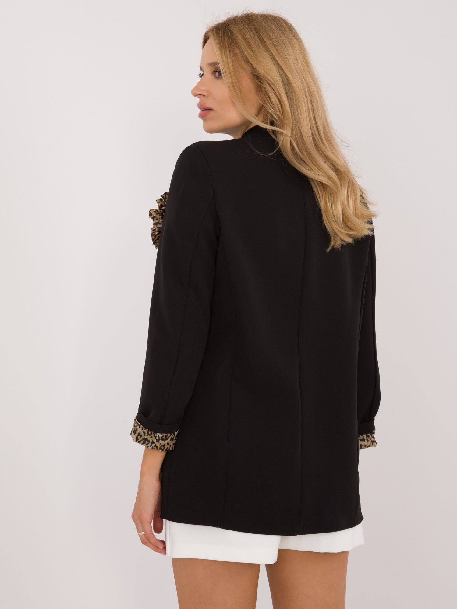 Wymiary marynarki w rozmiarze one size mierzone na płasko: szerokość pod pachami - 53 cm, długość rękawa - 52 cm, długość całkowita - 76 cm.