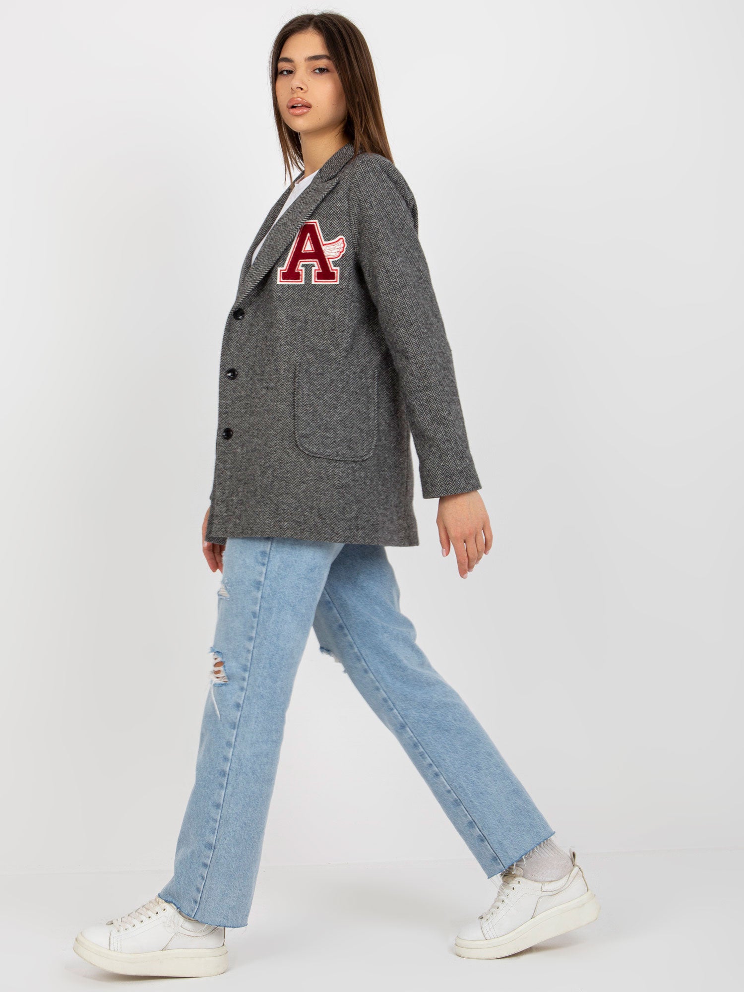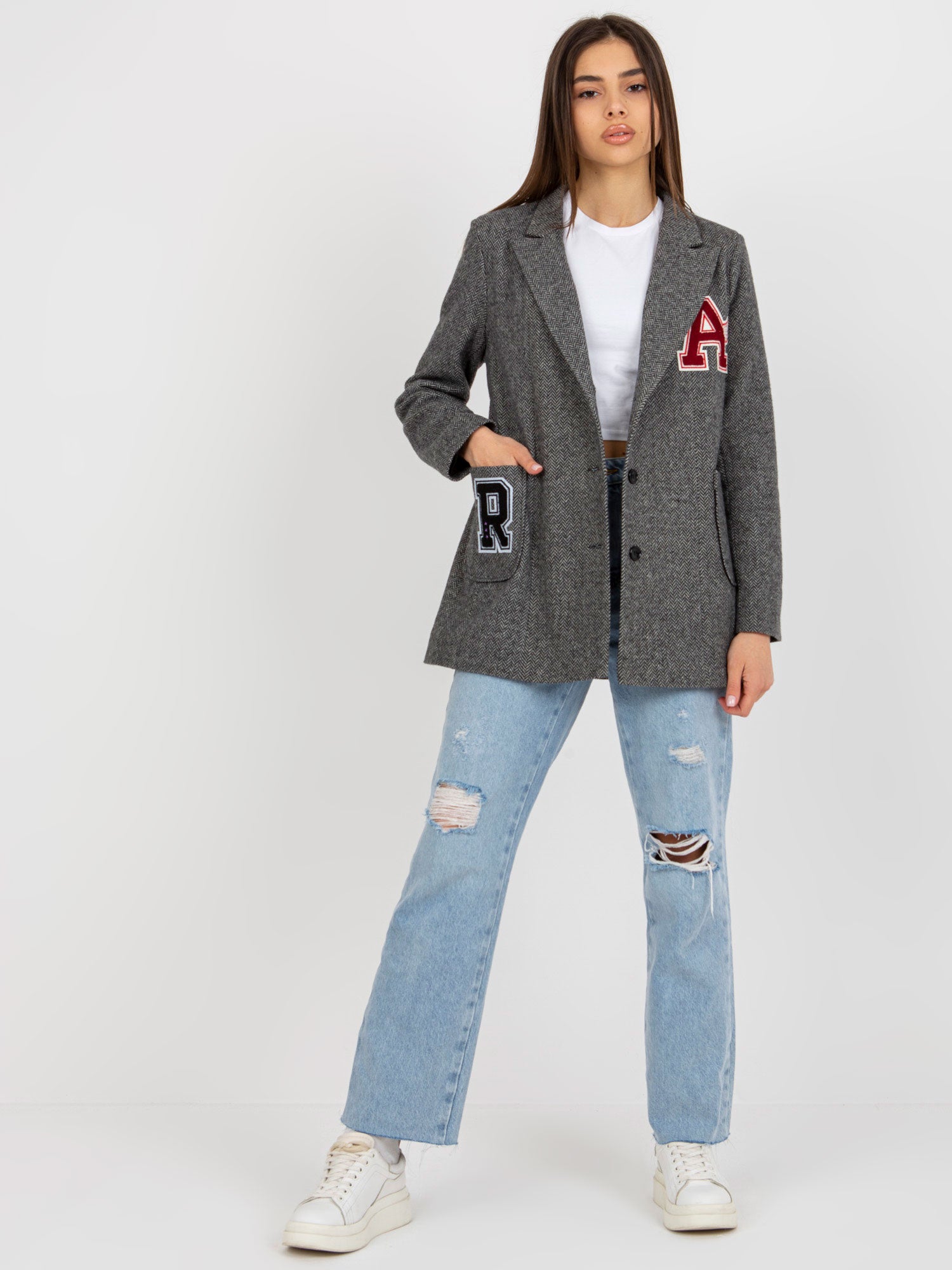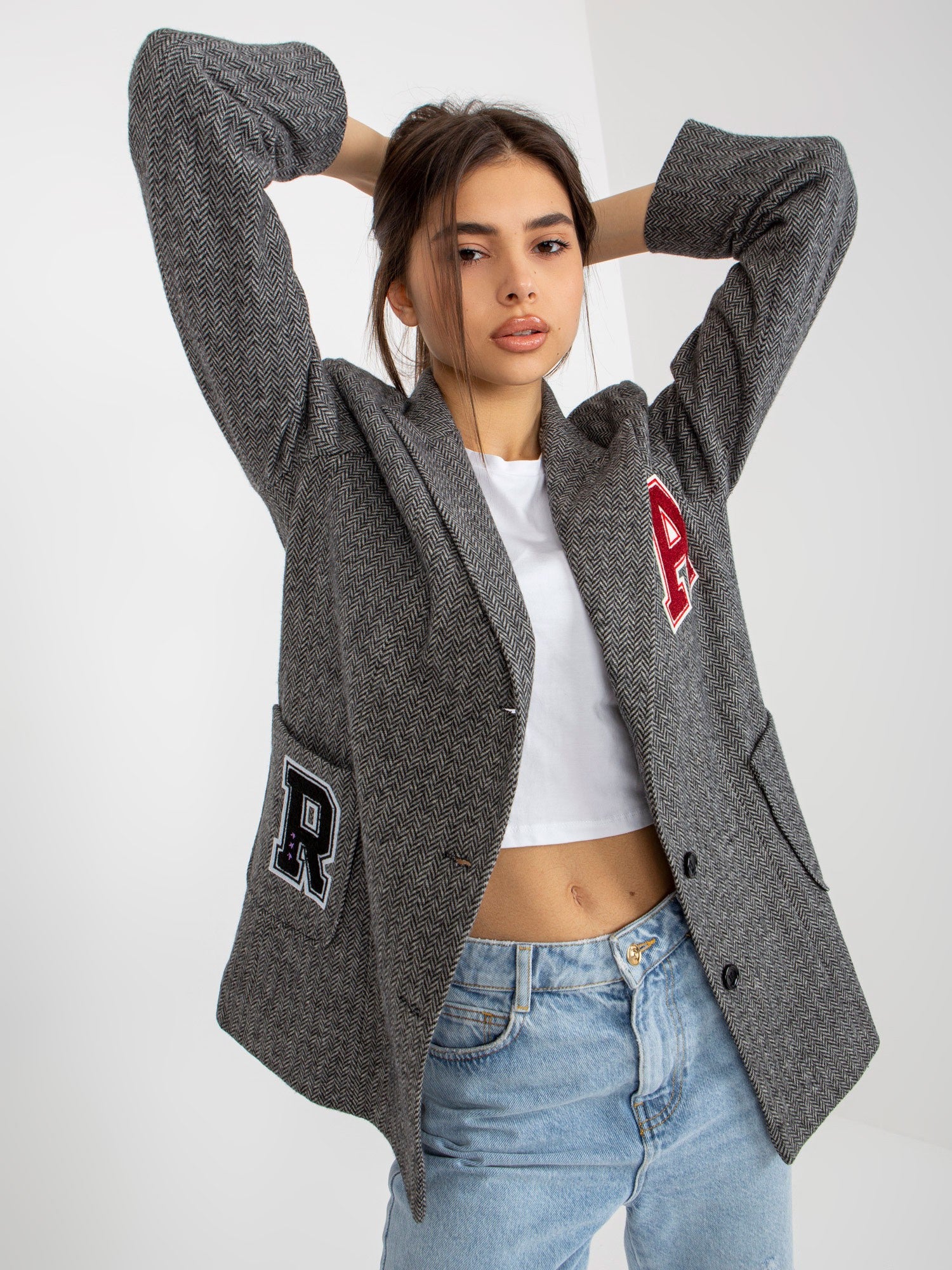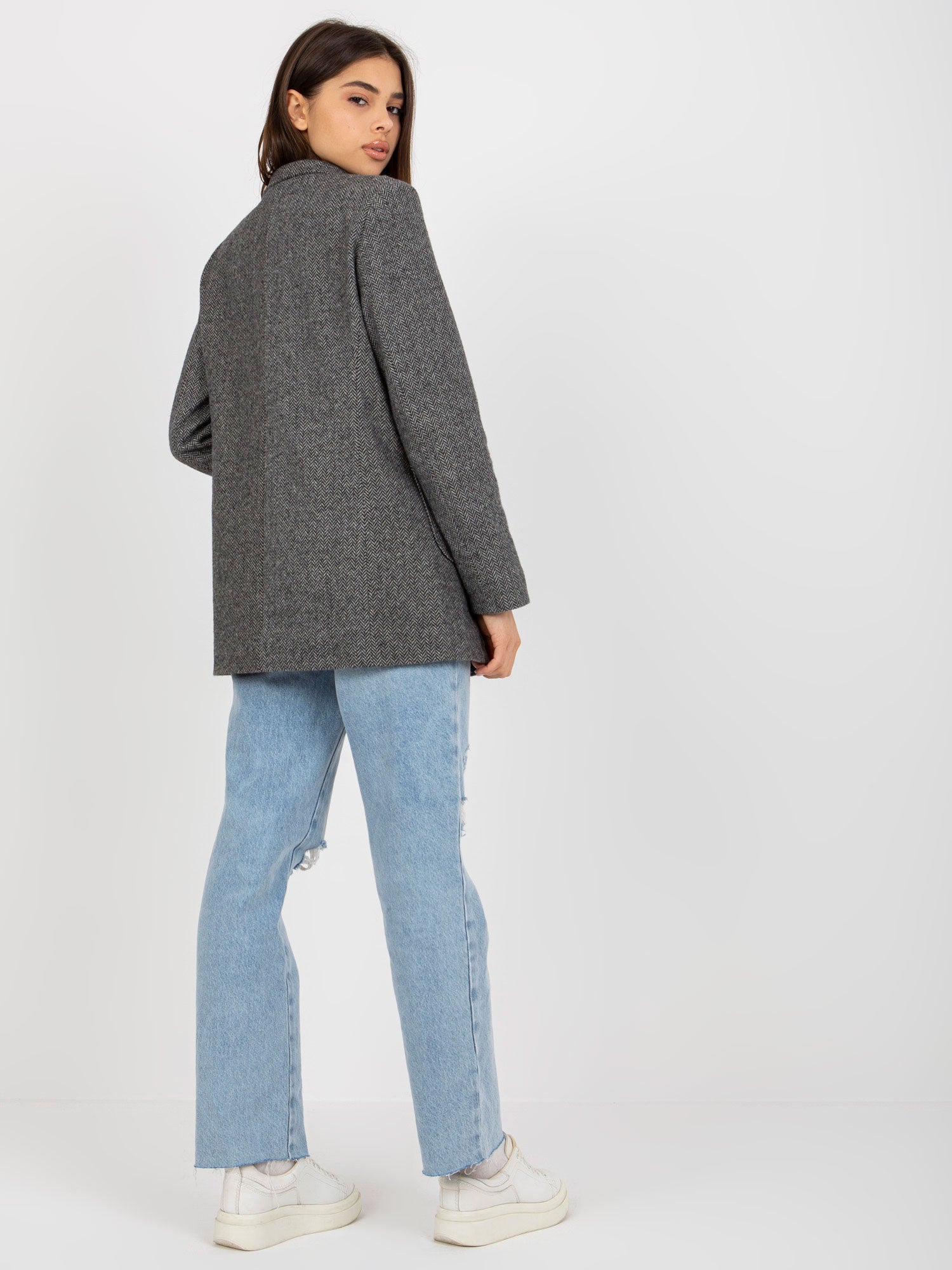 Ciemnoszara zapinana marynarka z kieszeniami .
