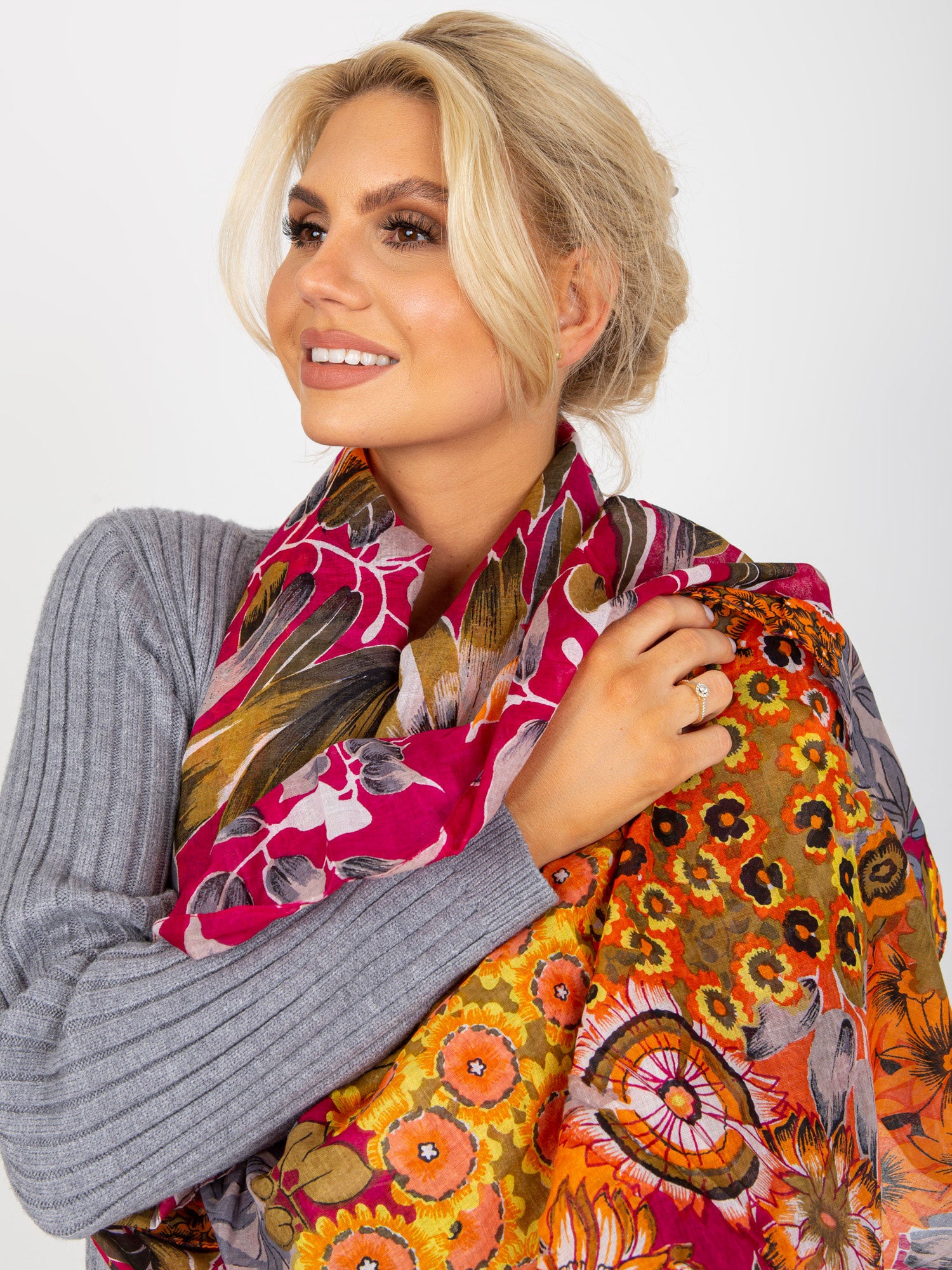 Ciemnoróżowa wzorzysta chusta z bawełny .