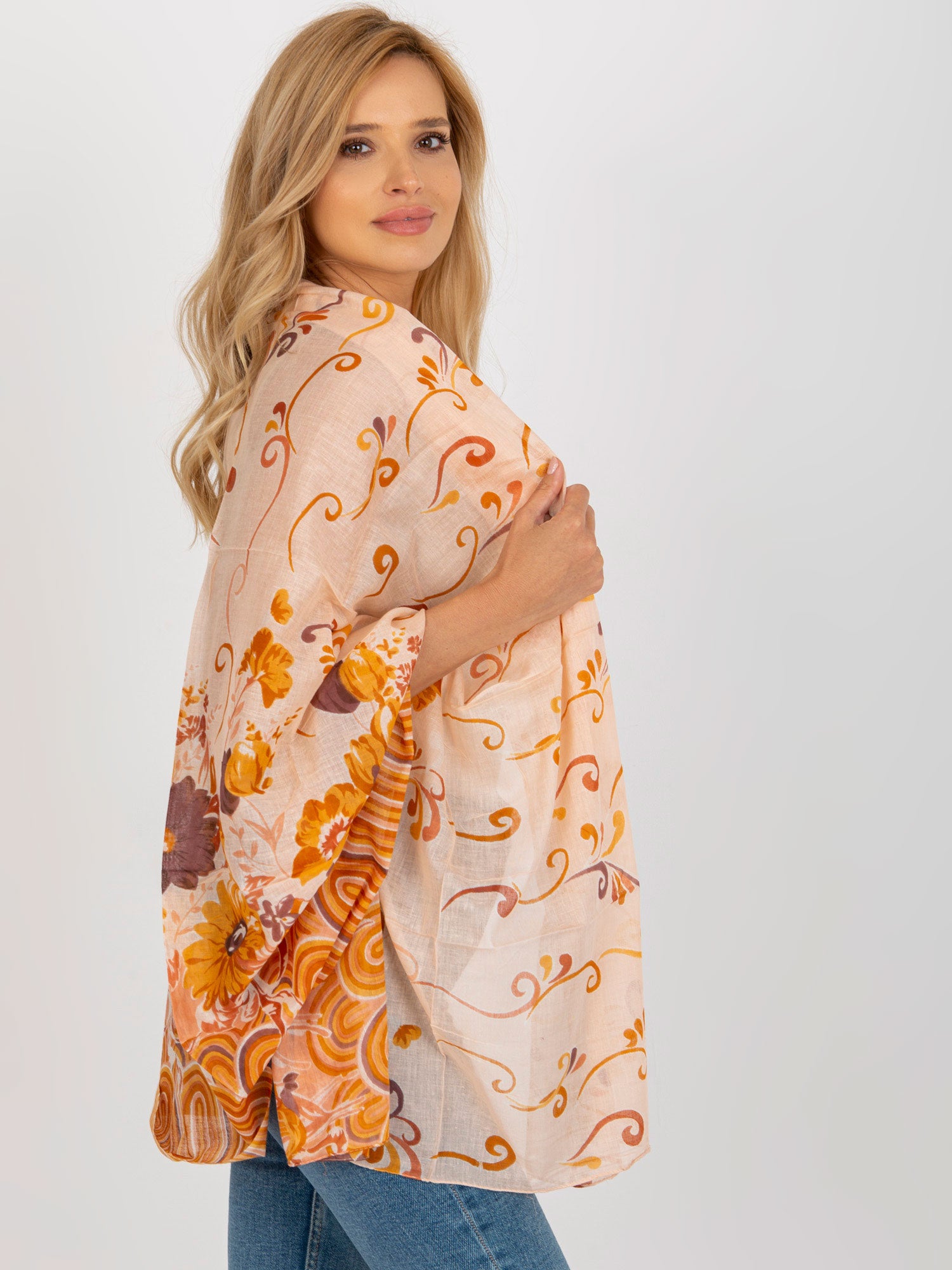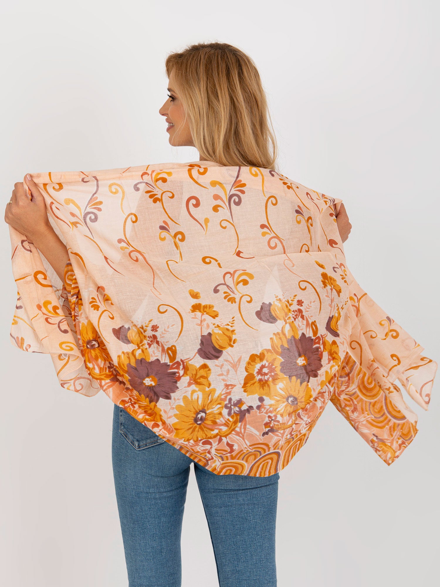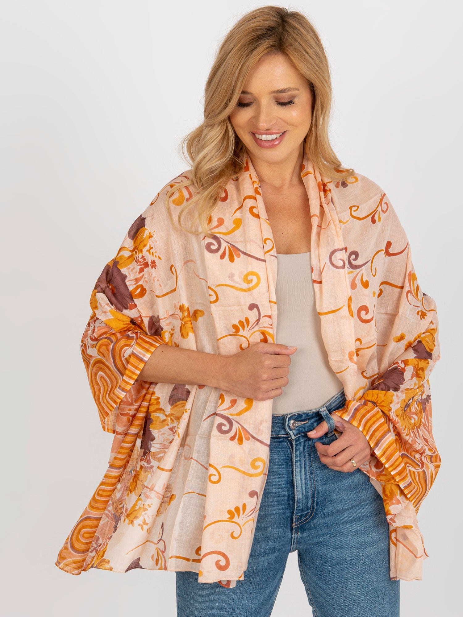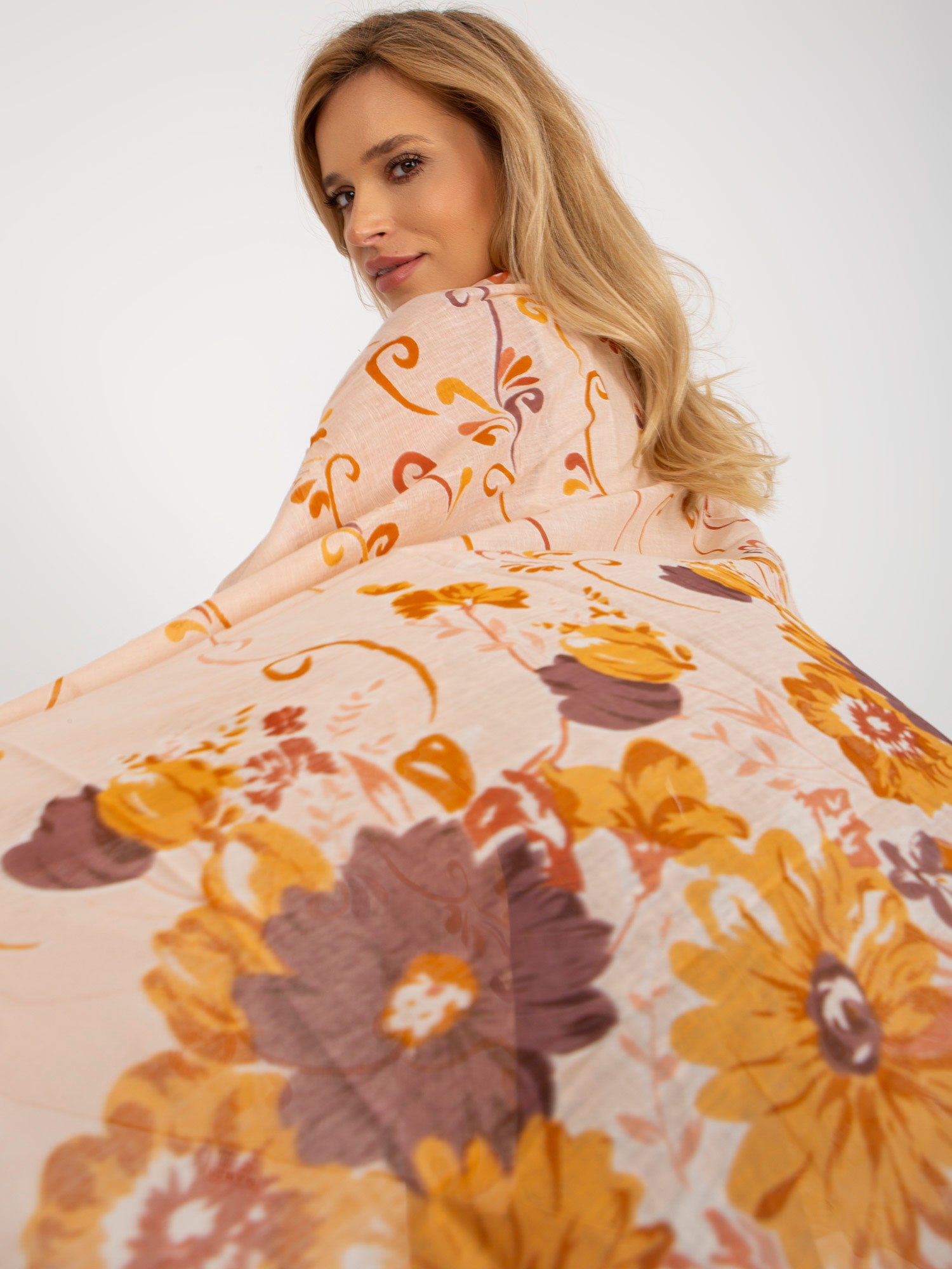 Pomarańczowo-żółta bawełniana chusta w kwiaty .