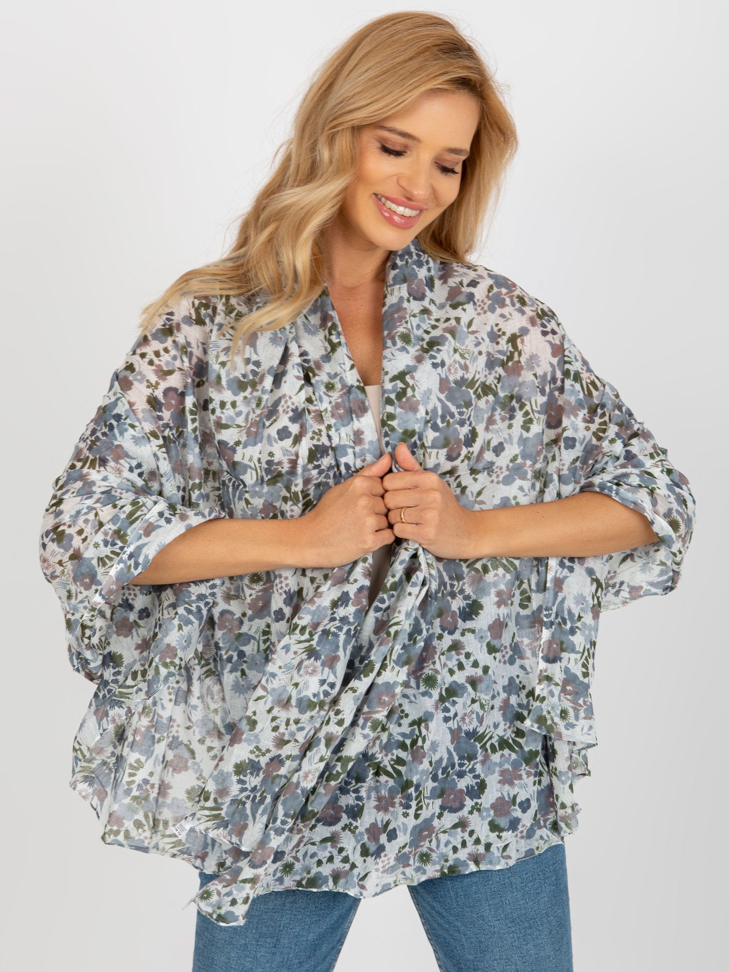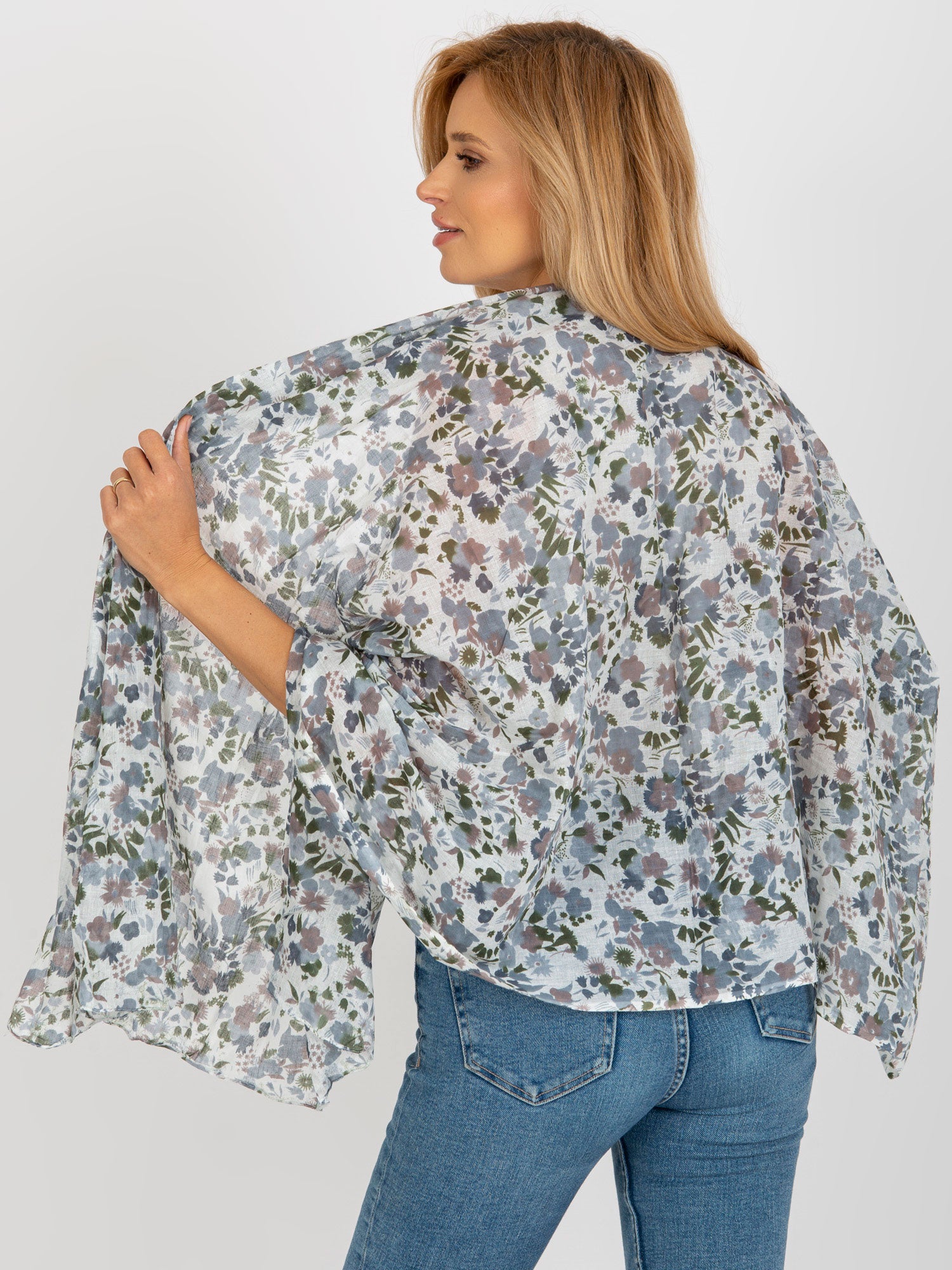 Szaro-biała chusta w kwiaty z bawełny .