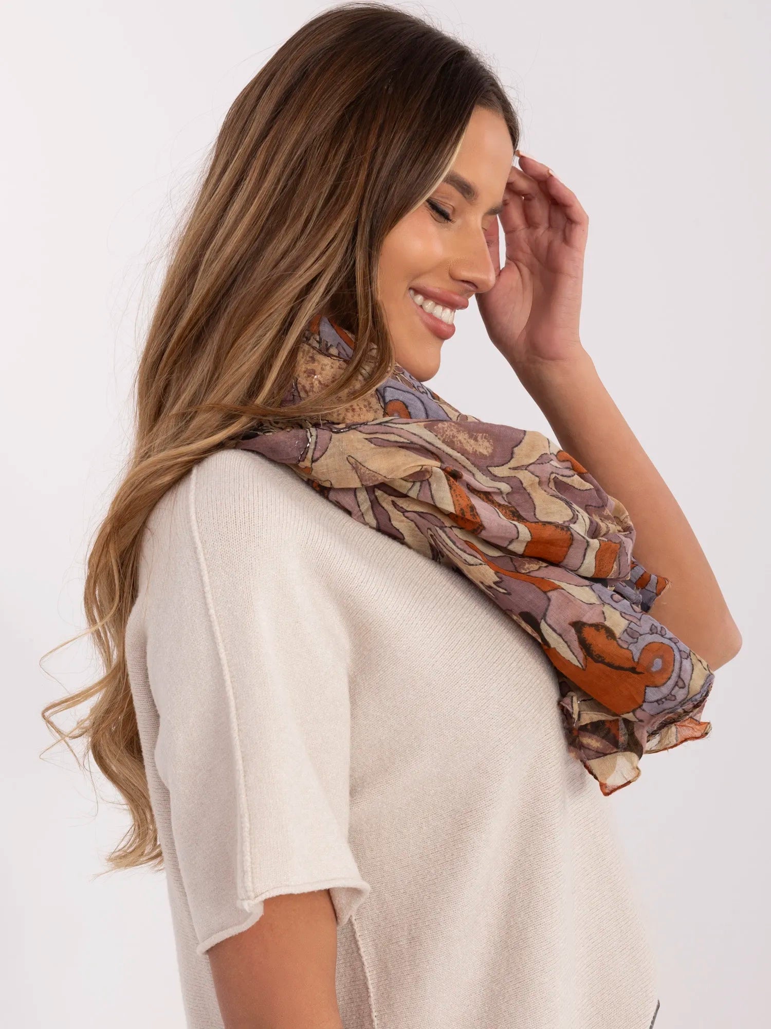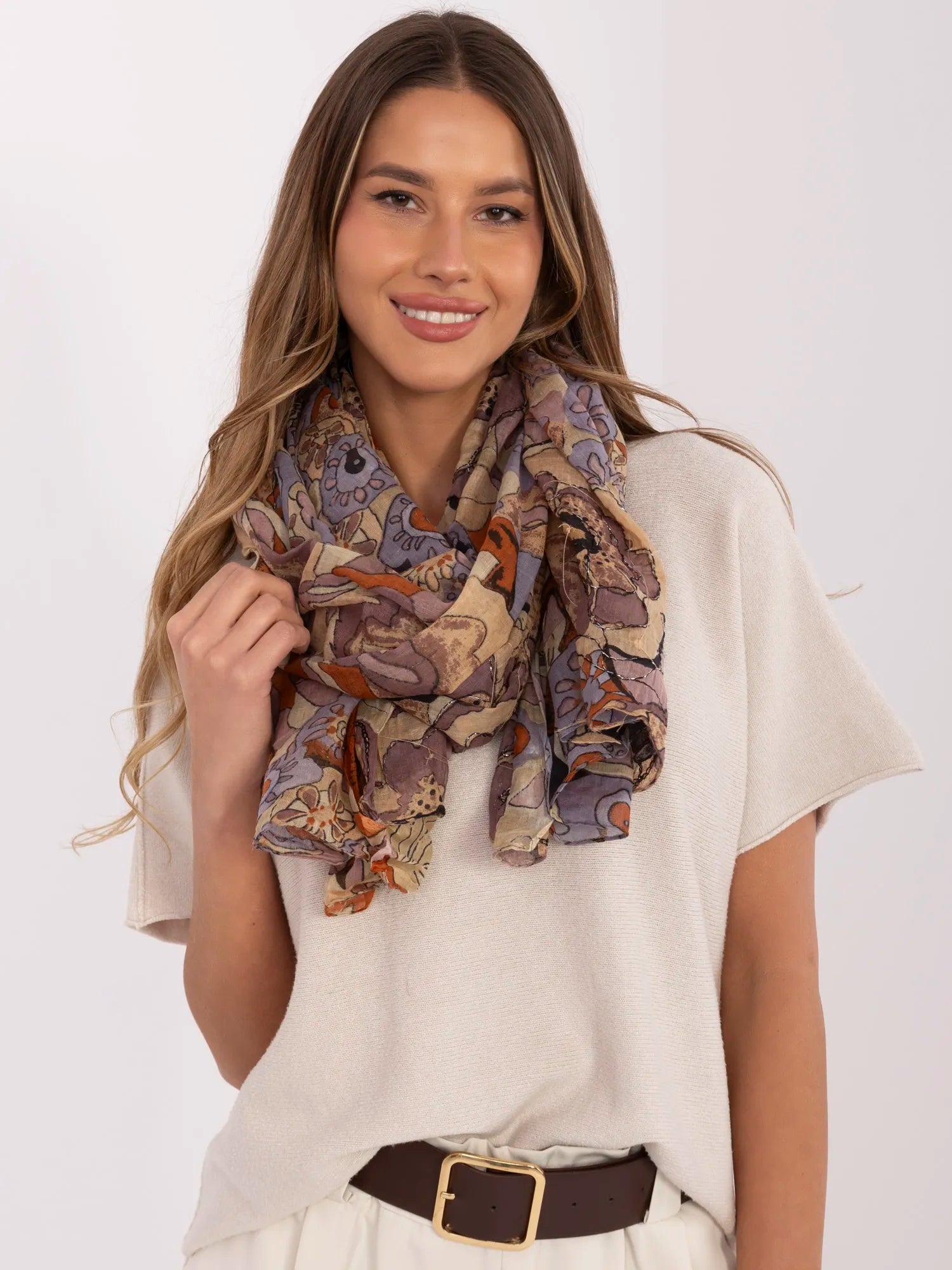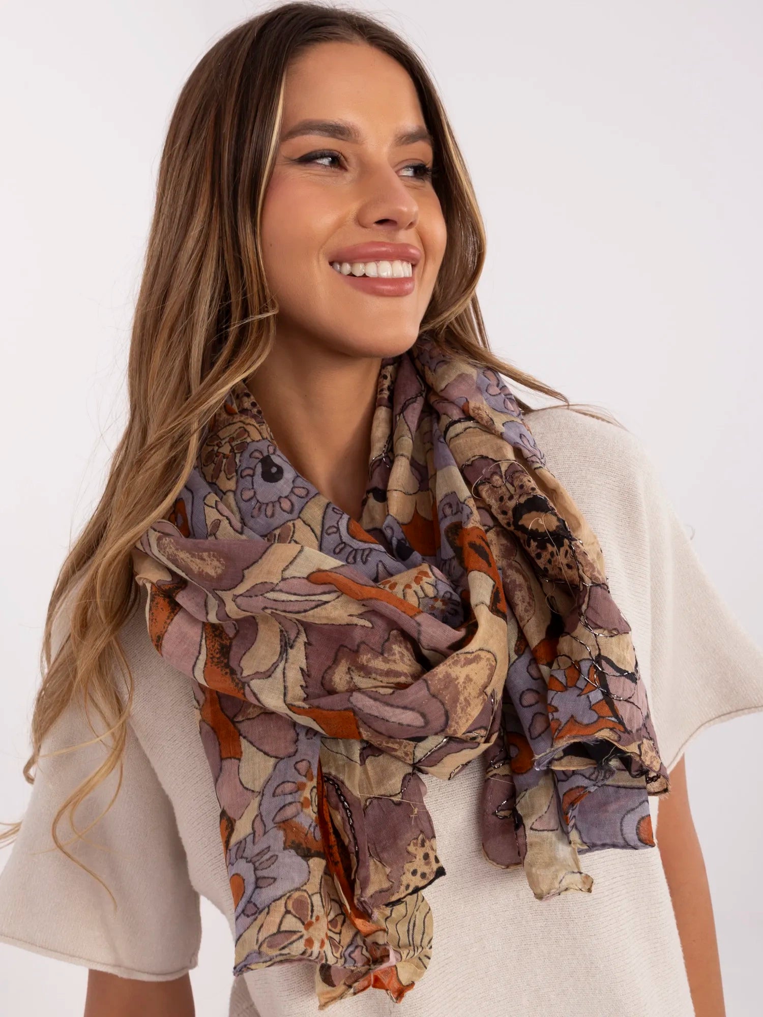 Wzorzysta chusta damska w kwiaty .