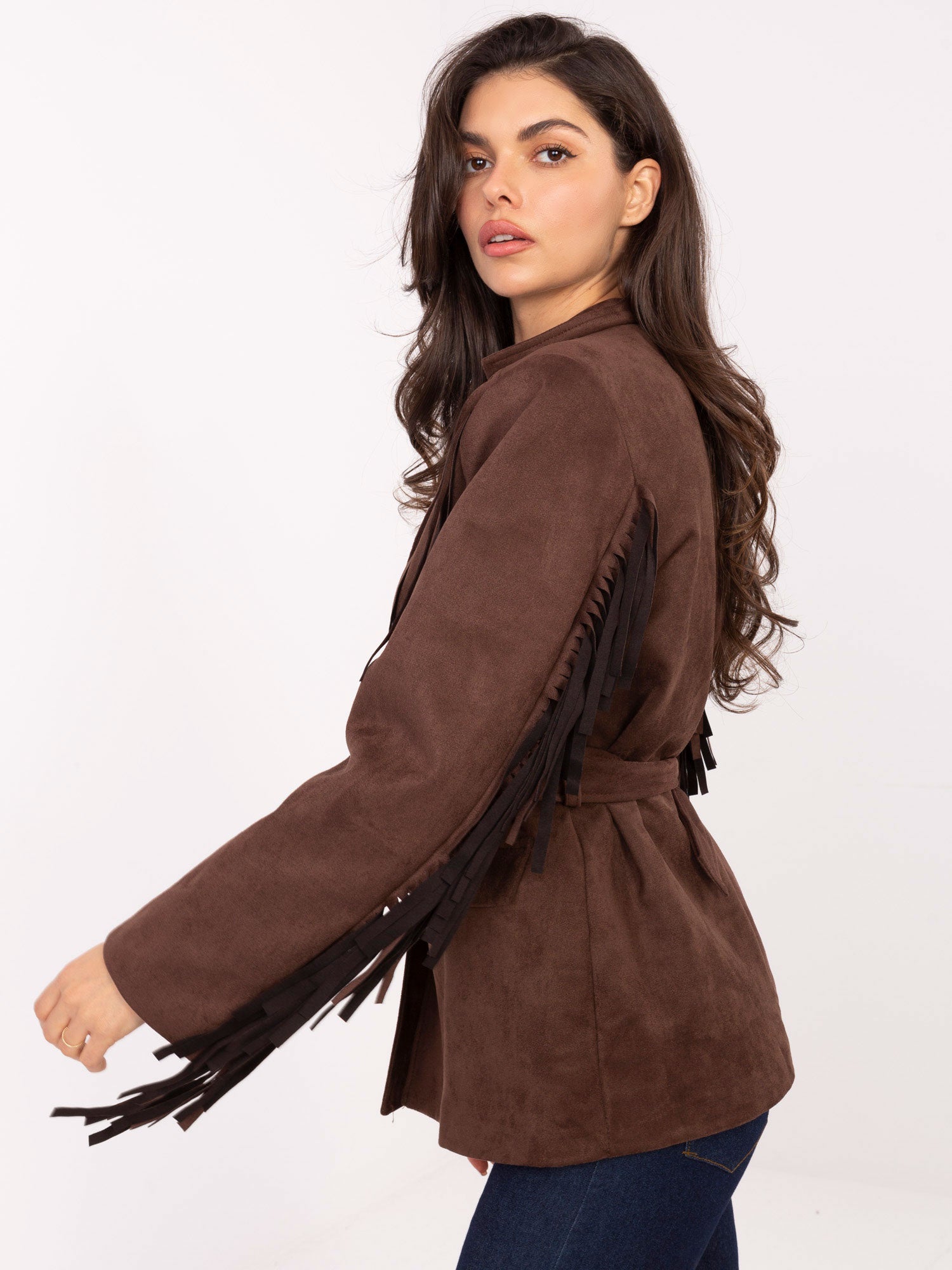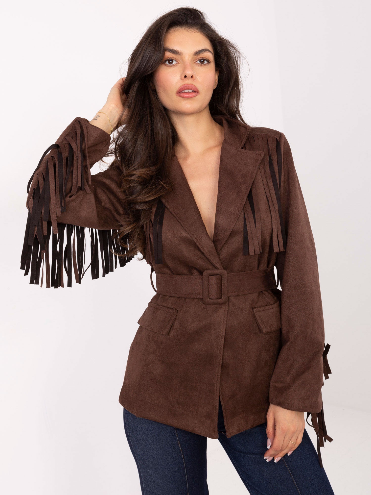Wymiary marynarki w rozmiarze one size: szerokość pod pachami - 50 cm, długość całkowita - 71 cm, długość rękawa - 61 cm (od szwu), szerokość w biodrach - 51 cm.