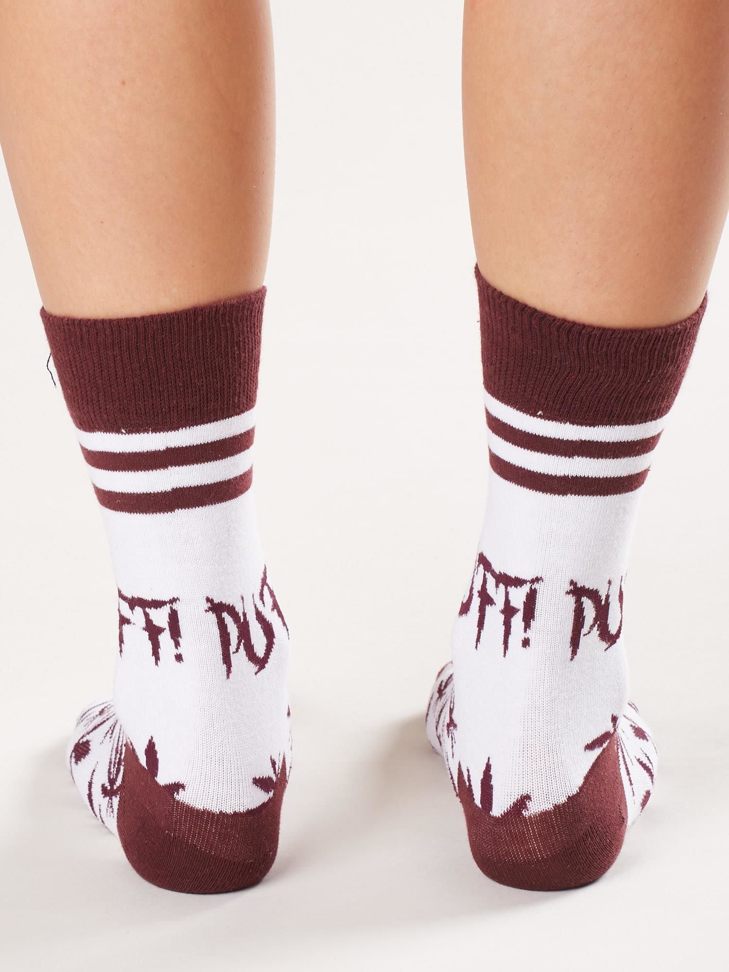 Skarpetki z nadrukiem biało-bordowe.