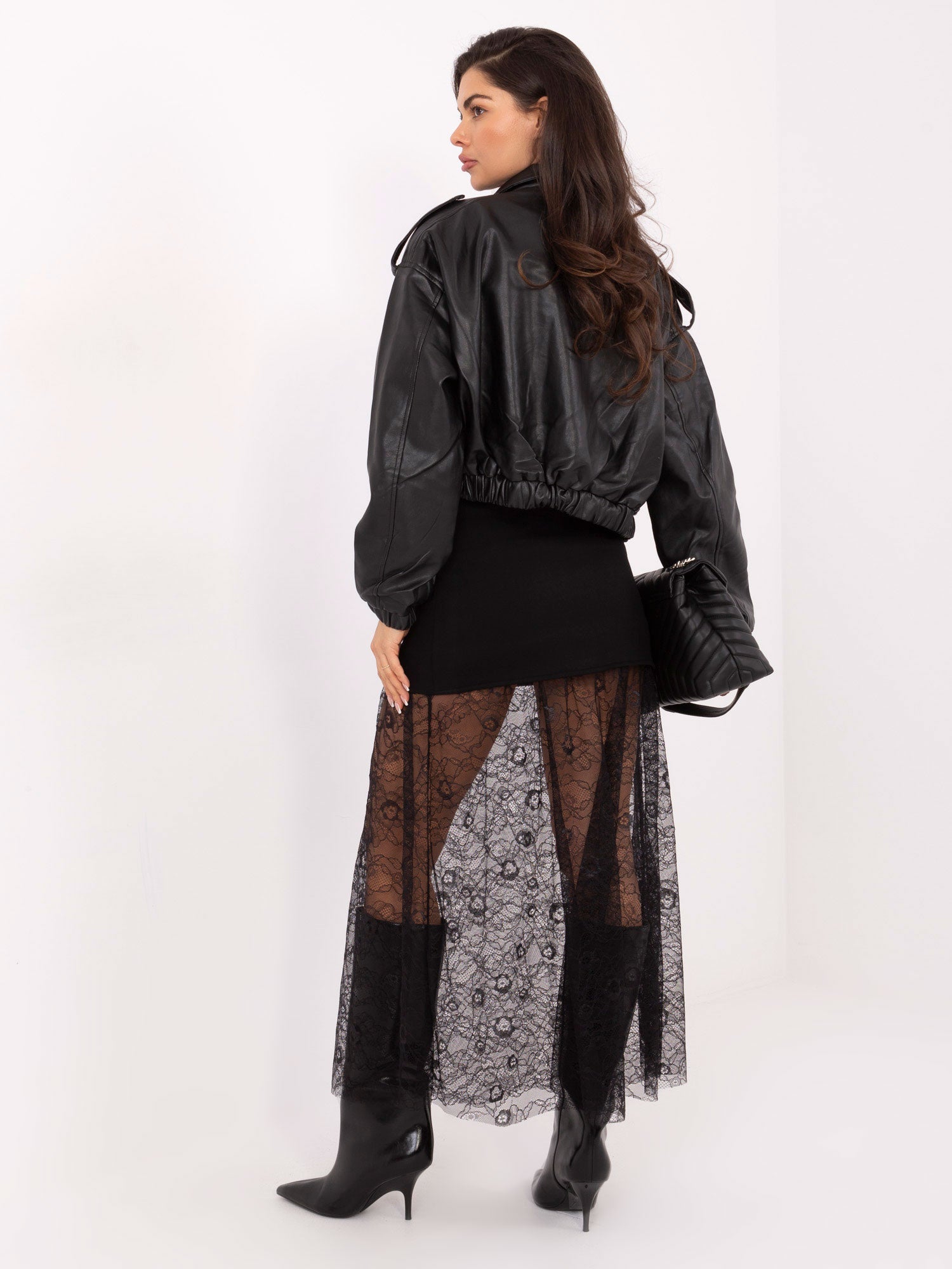 Modelka ma na sobie rozmiar one size. Wymiary modelki: wzrost 173 cm, biust 85 cm, talia 62 cm, biodra 95 cm.