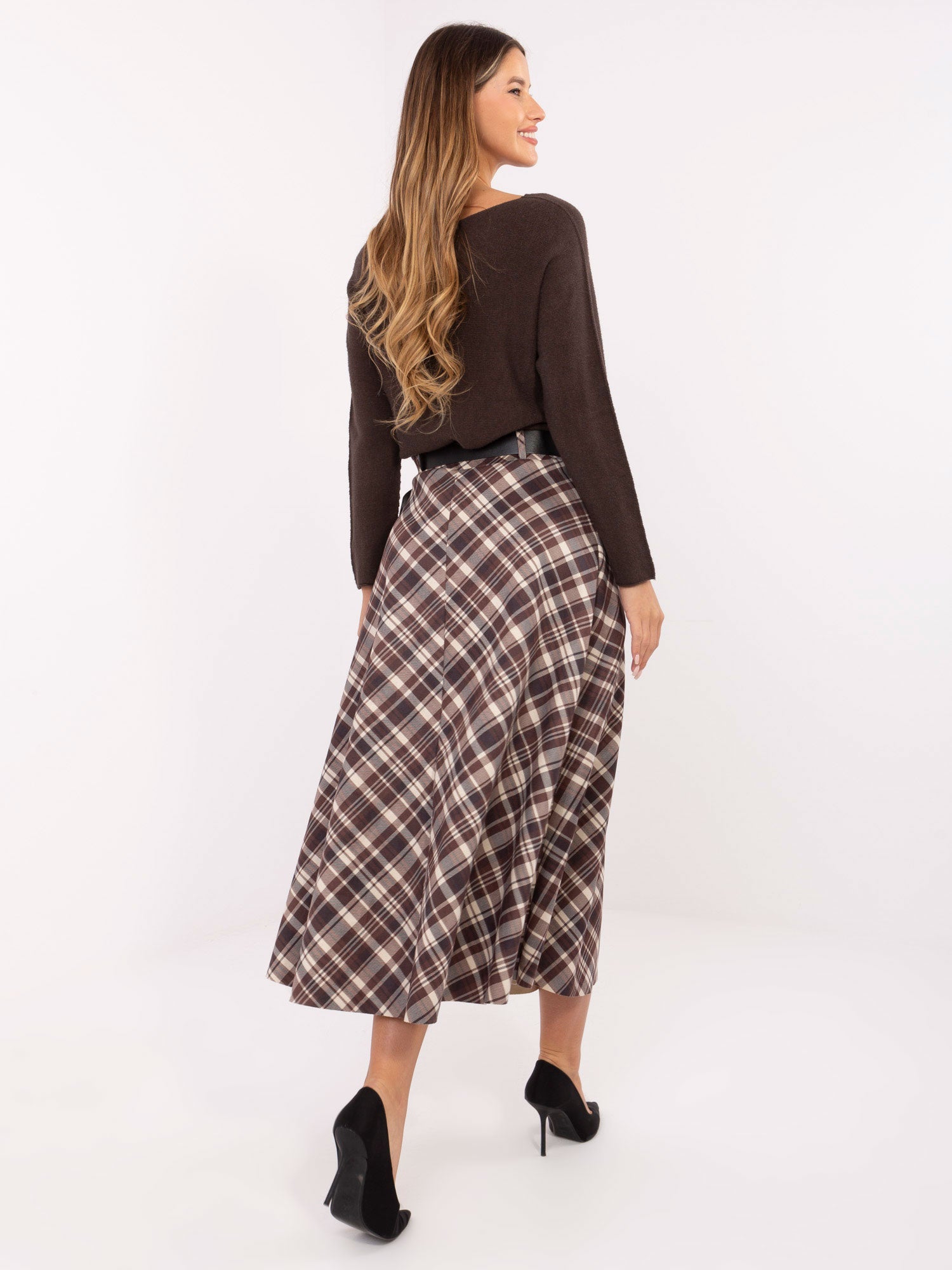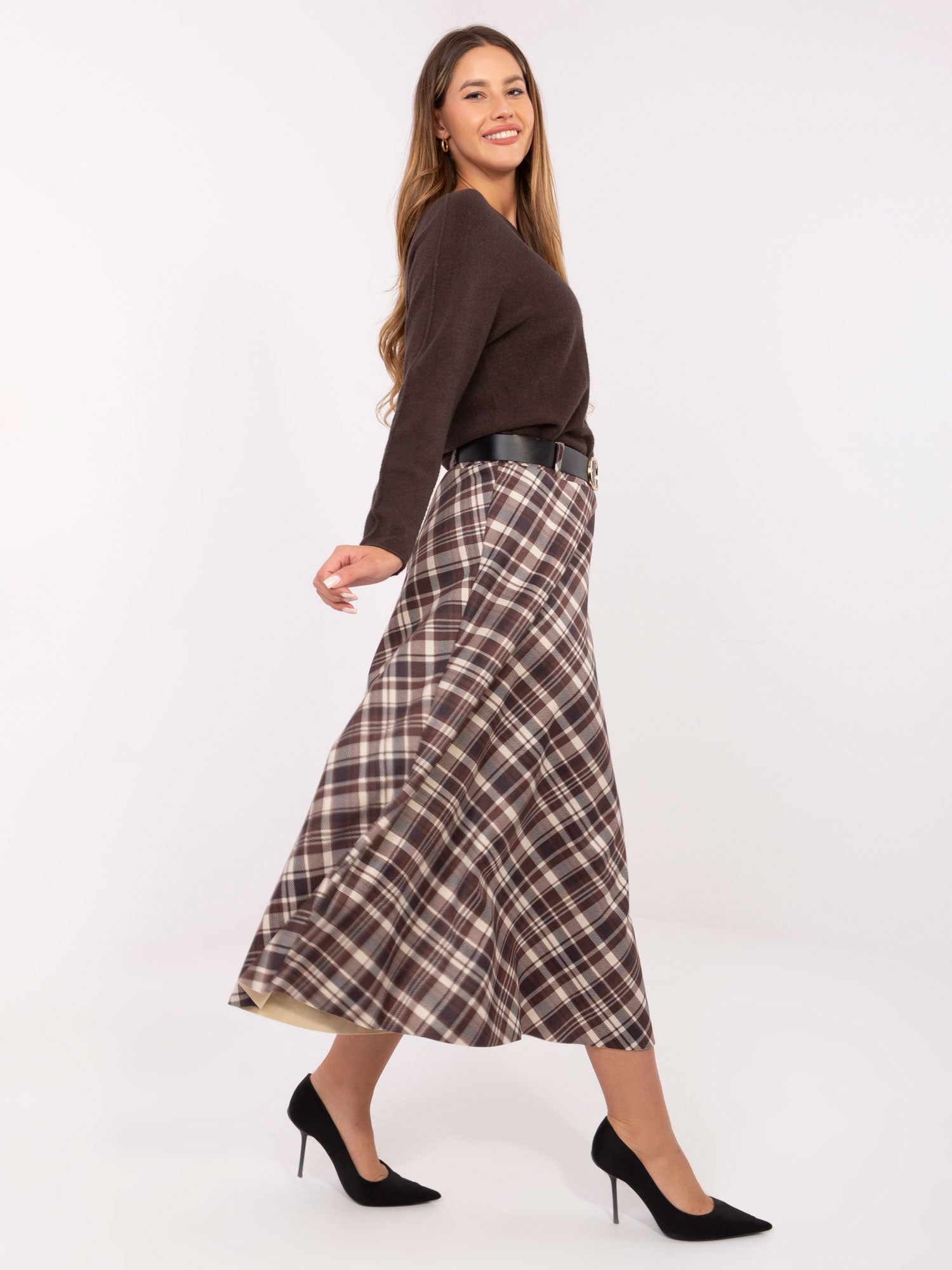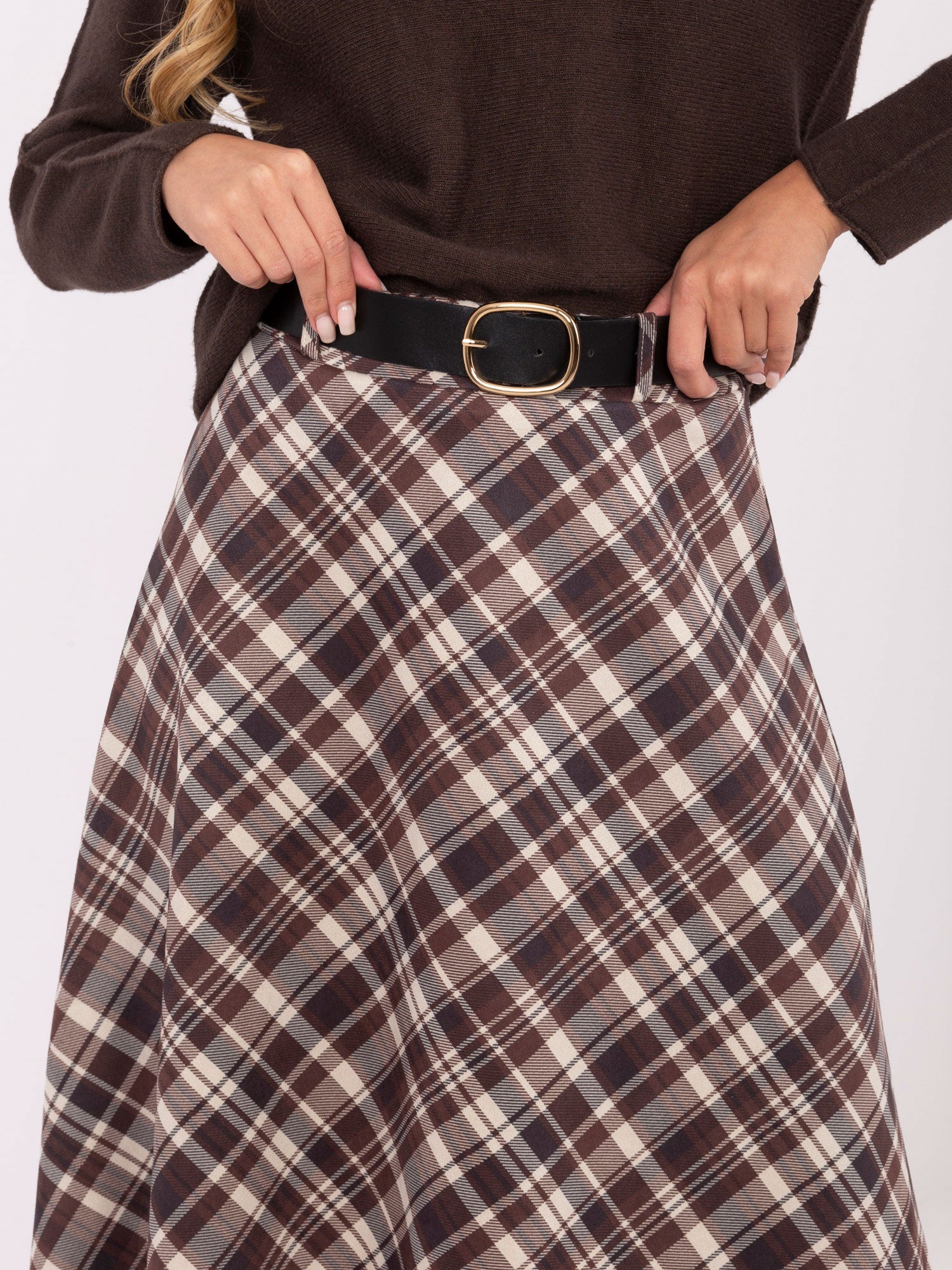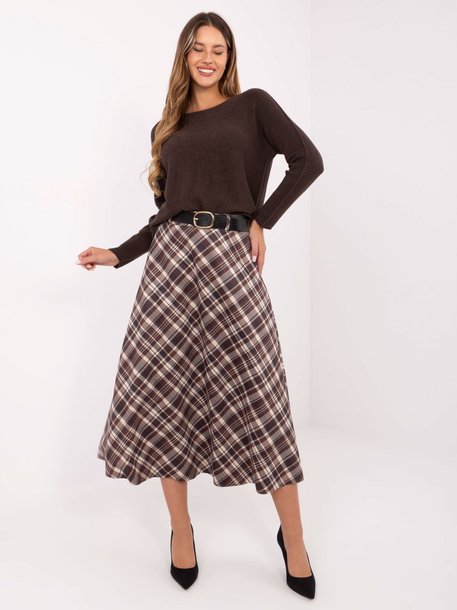 Wymiary spódnicy w rozmiarze one size: szerokość w pasie - 36 cm (na płasko), szerokość w pasie - 50 cm (po rozciągnięciu), obwód w biodrach - 65 cm, długość całkowita - 87 cm.