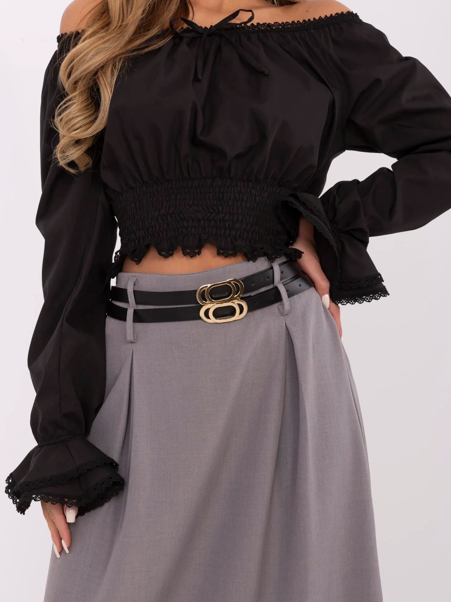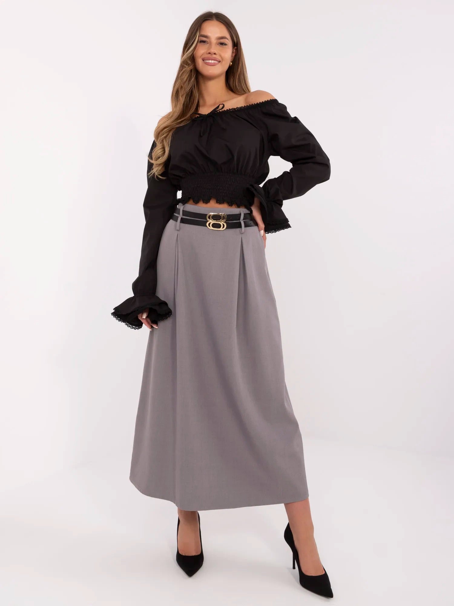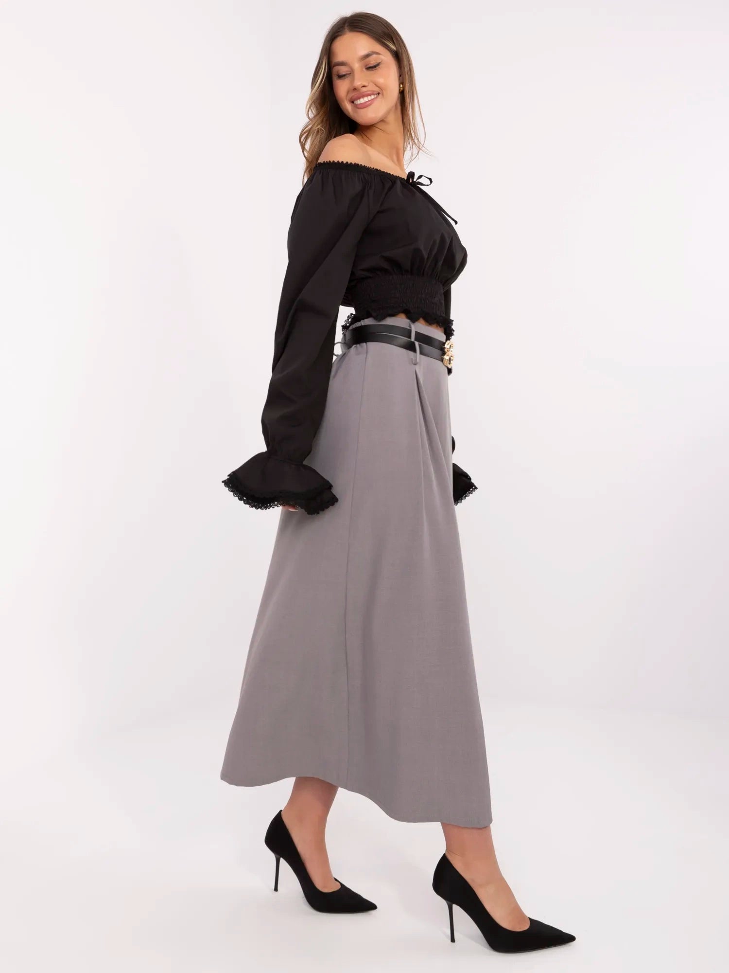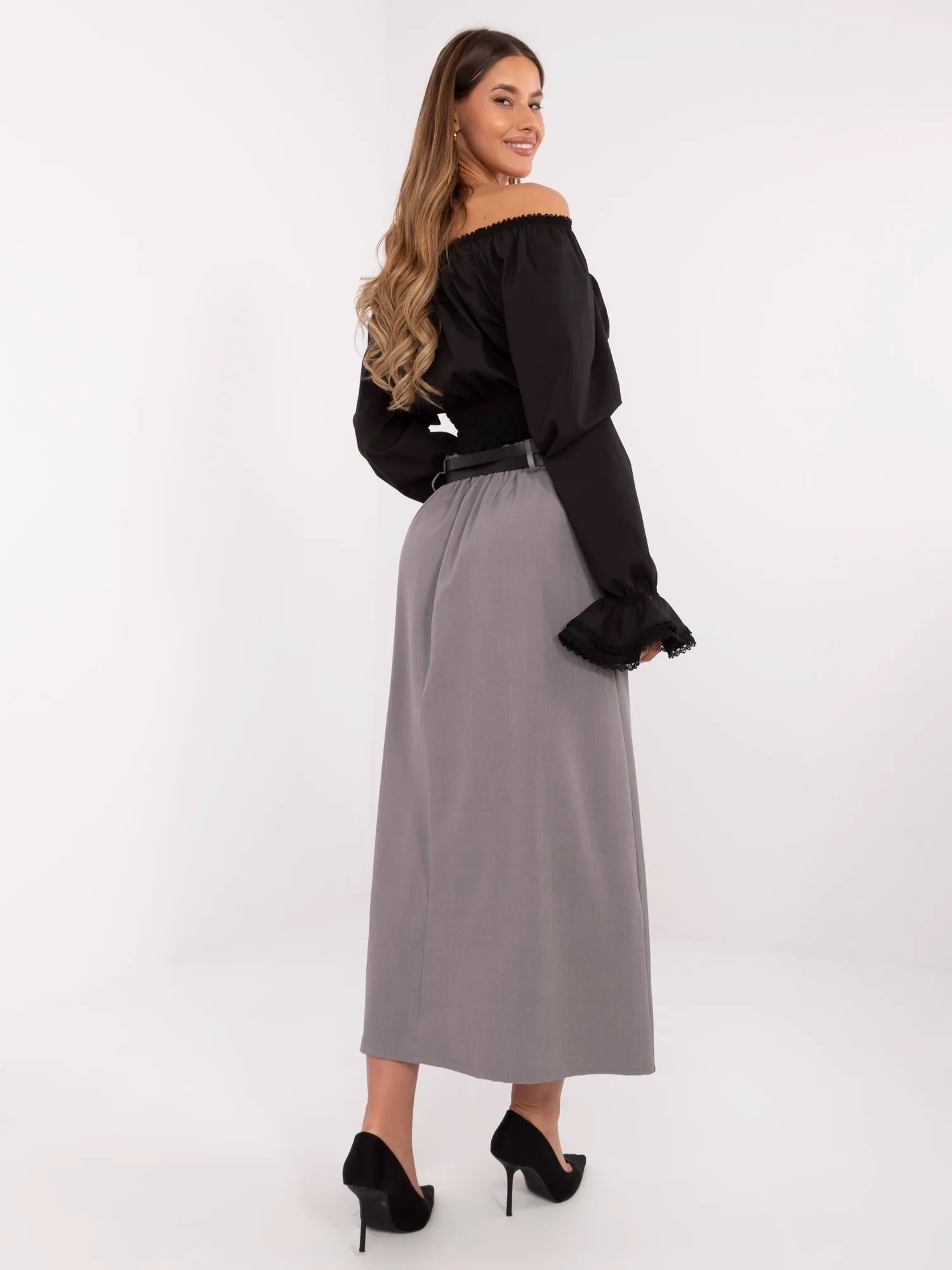 Wymiary spódnicy w rozmiarze one size mierzone na płasko: szerokość w pasie - 34 cm, szerokość w pasie - 49 cm (po rozciągnięciu), długość całkowita - 94 cm.