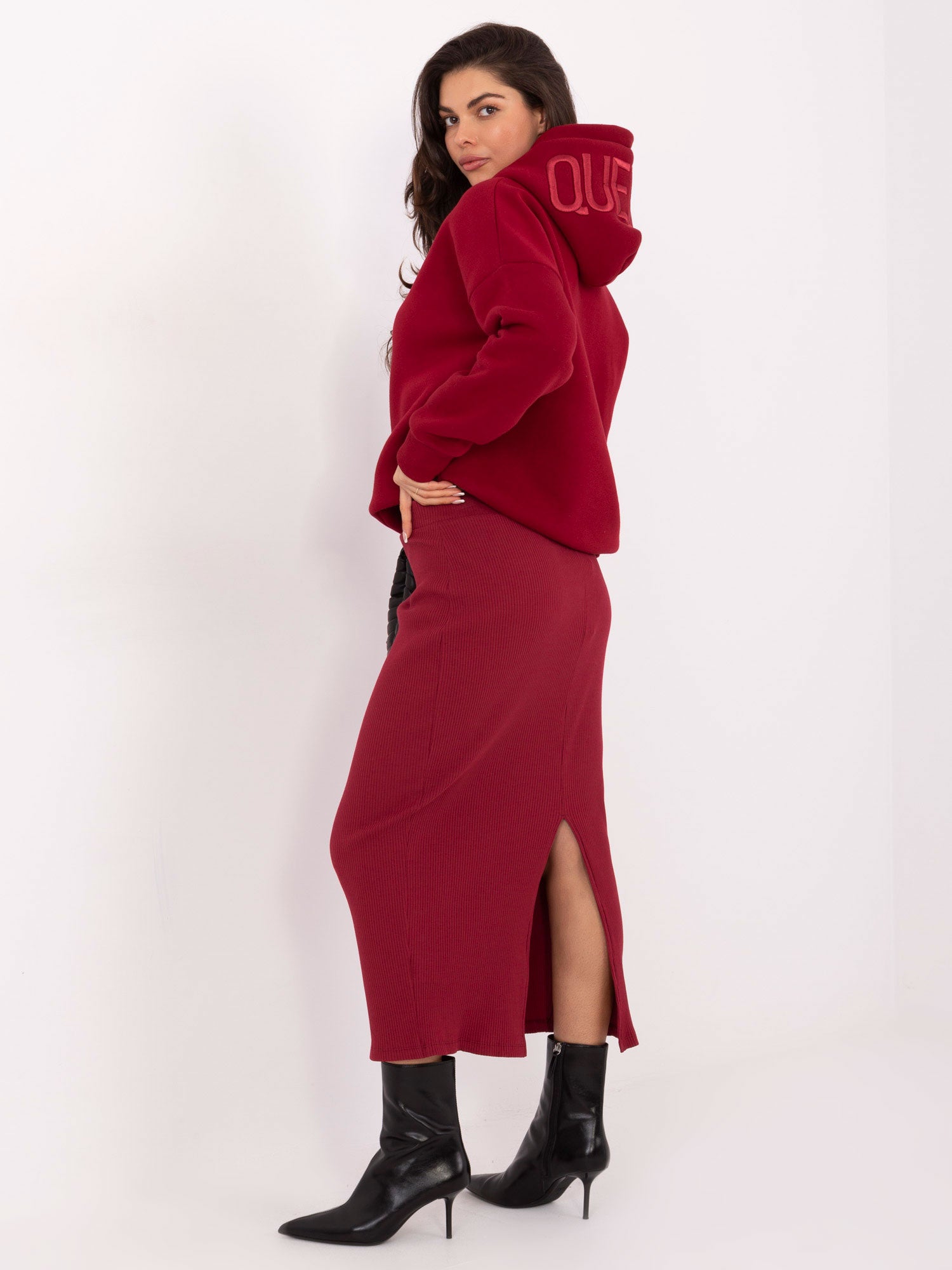 Wymiary spódnicy w rozmiarze one size mierzone na płasko: szerokość w pasie - 39 cm (na płasko), szerokość w pasie - 75 cm (po rozciągnięciu), długość całkowita - 83 cm, szerokość w biodrach - 43 cm.