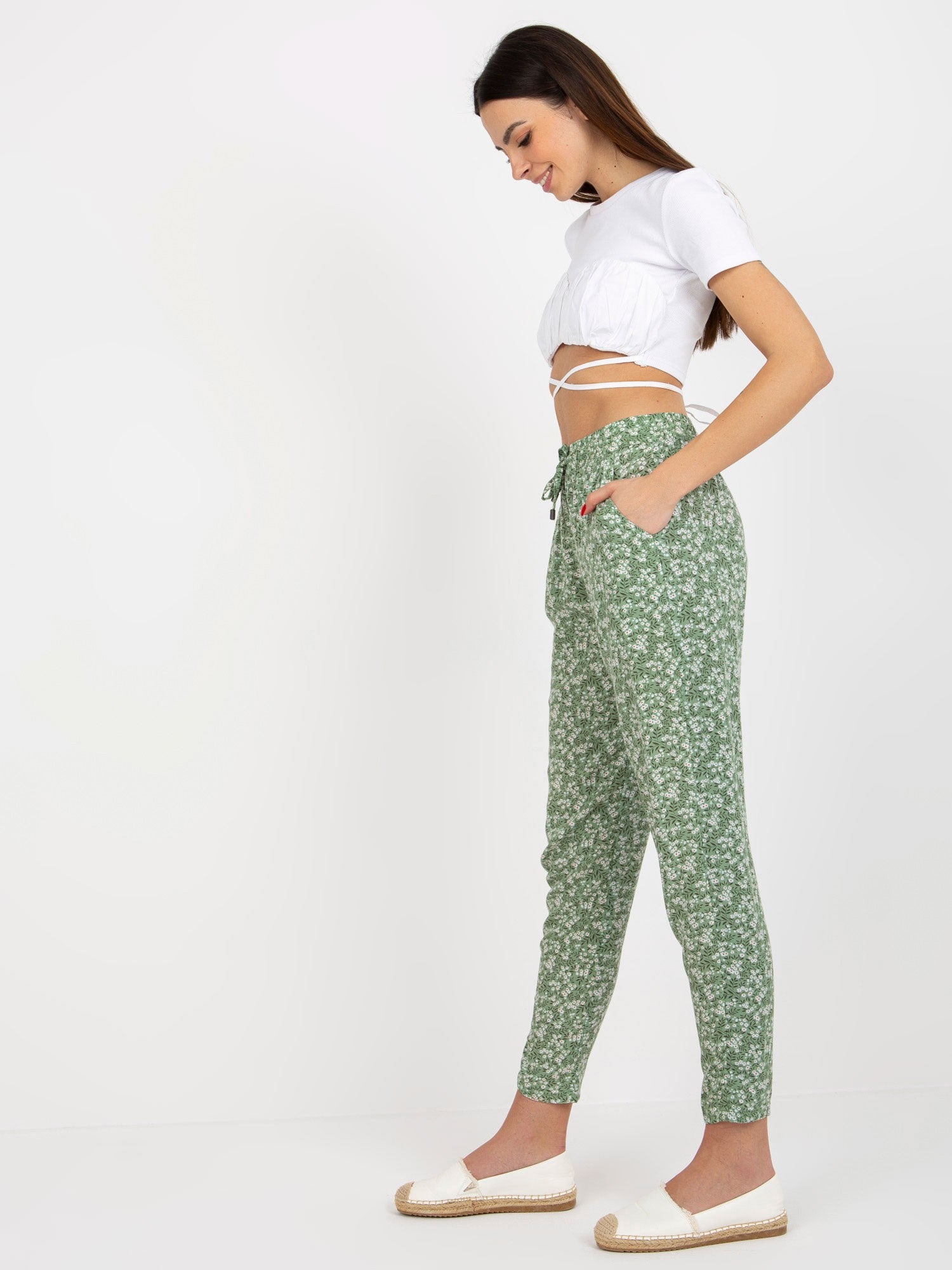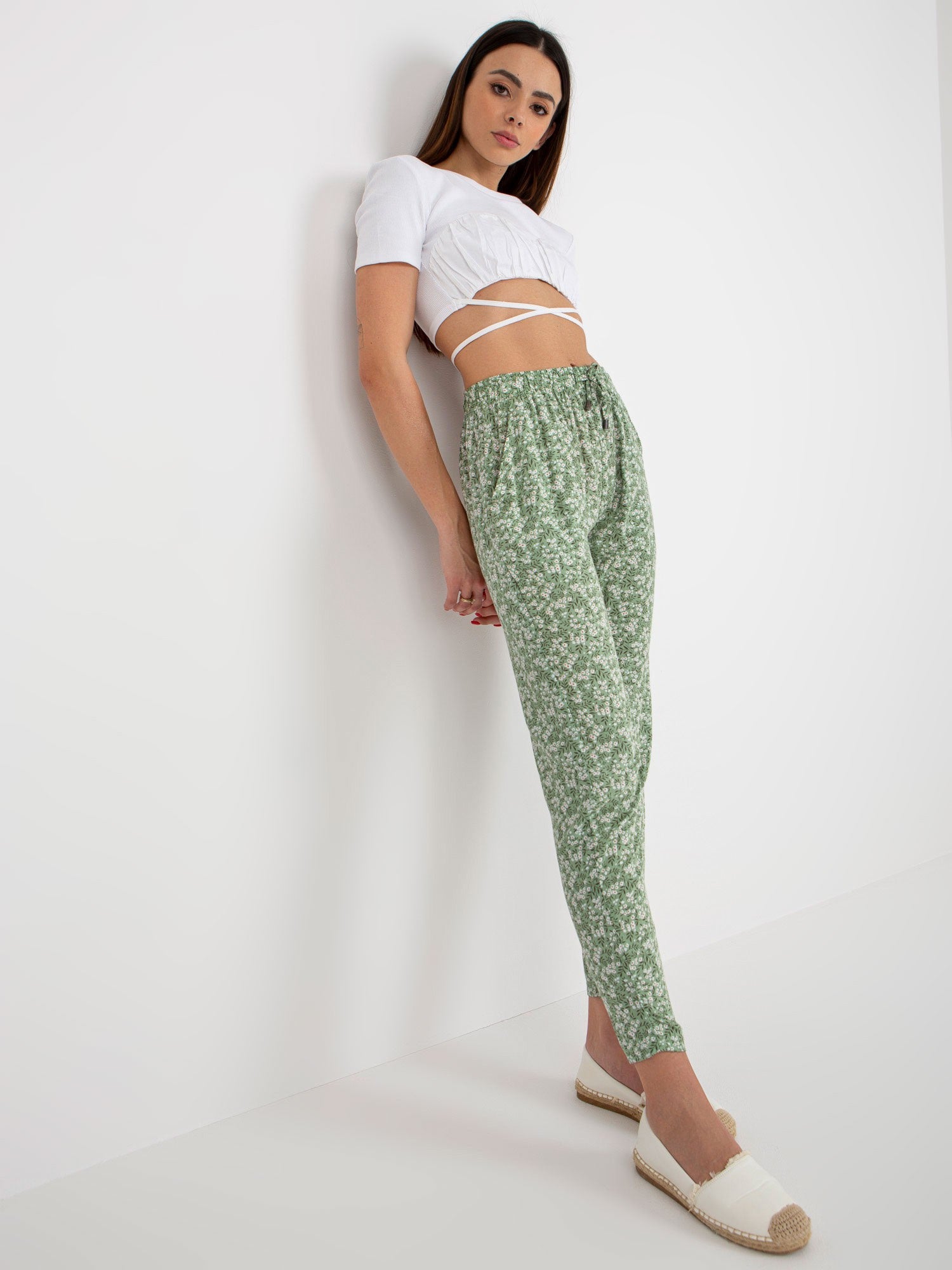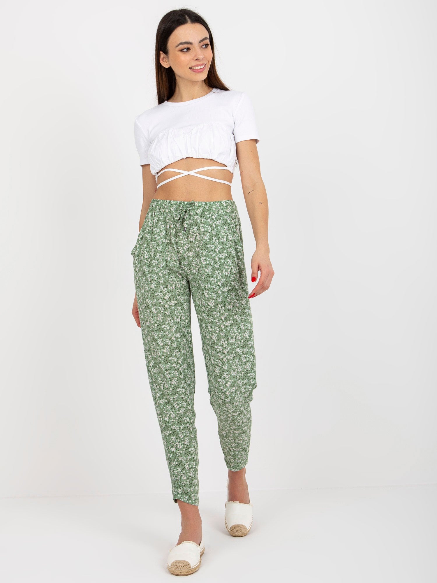 Jasnozielone letnie spodnie z materiału w kwiaty SUBLEVEL .