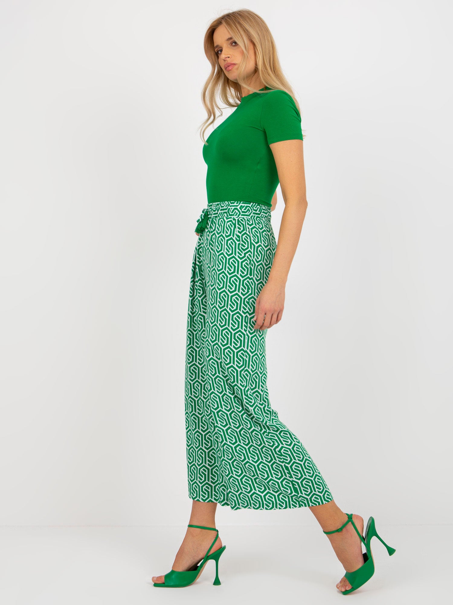 Zielone materiałowe spodnie palazzo we wzory SUBLEVEL .