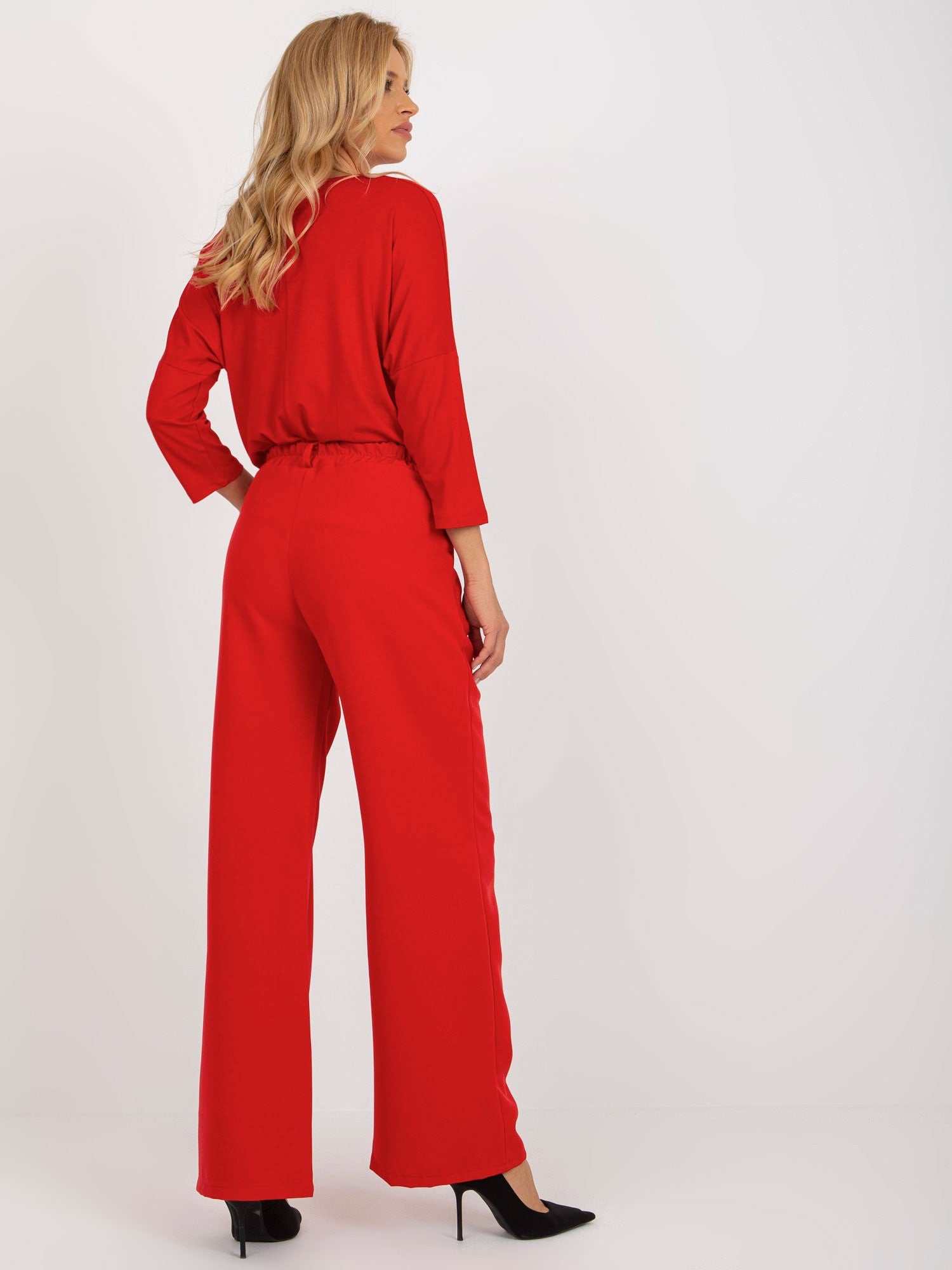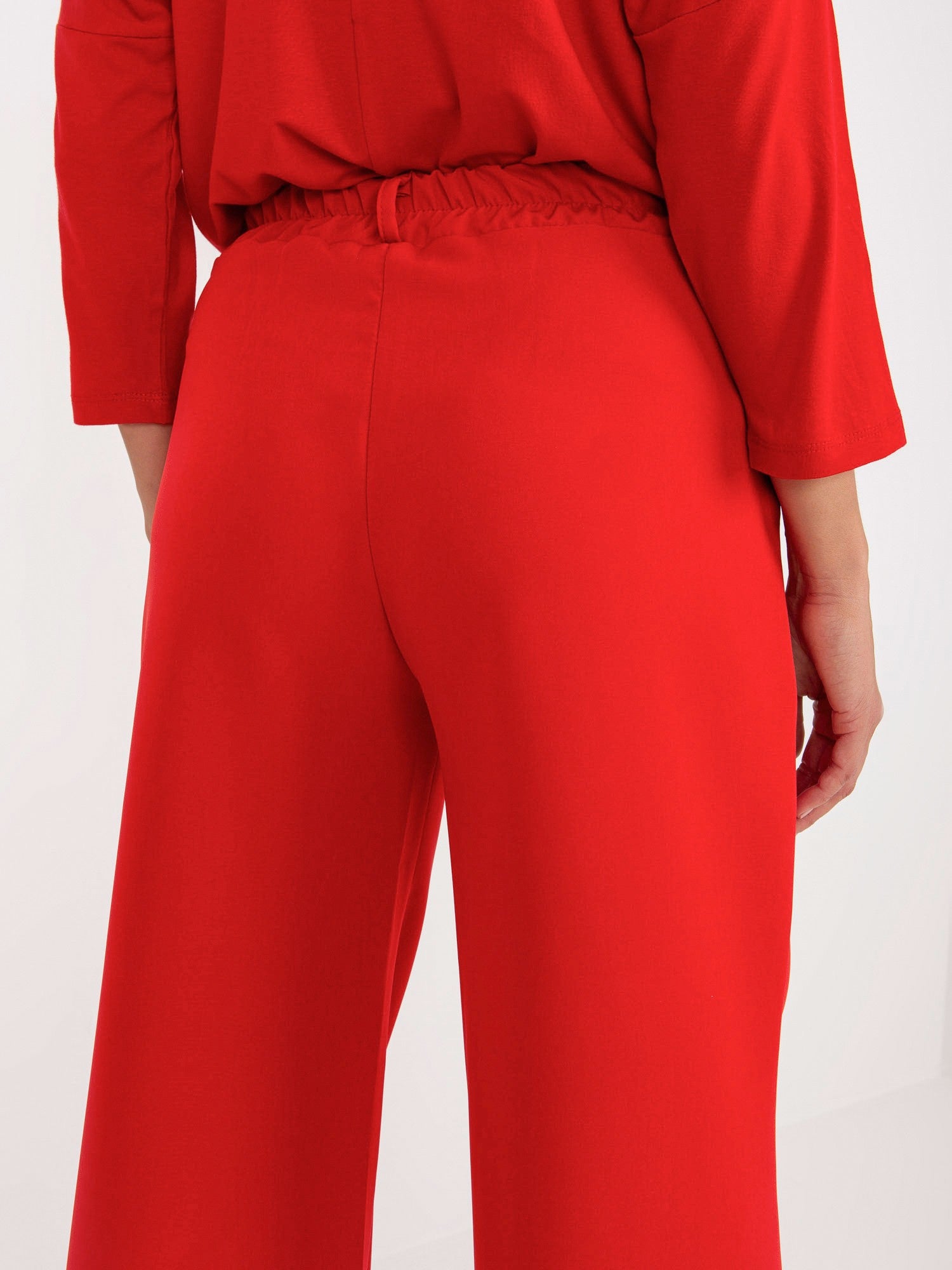 Czerwone spodnie z materiału z zakładkami .