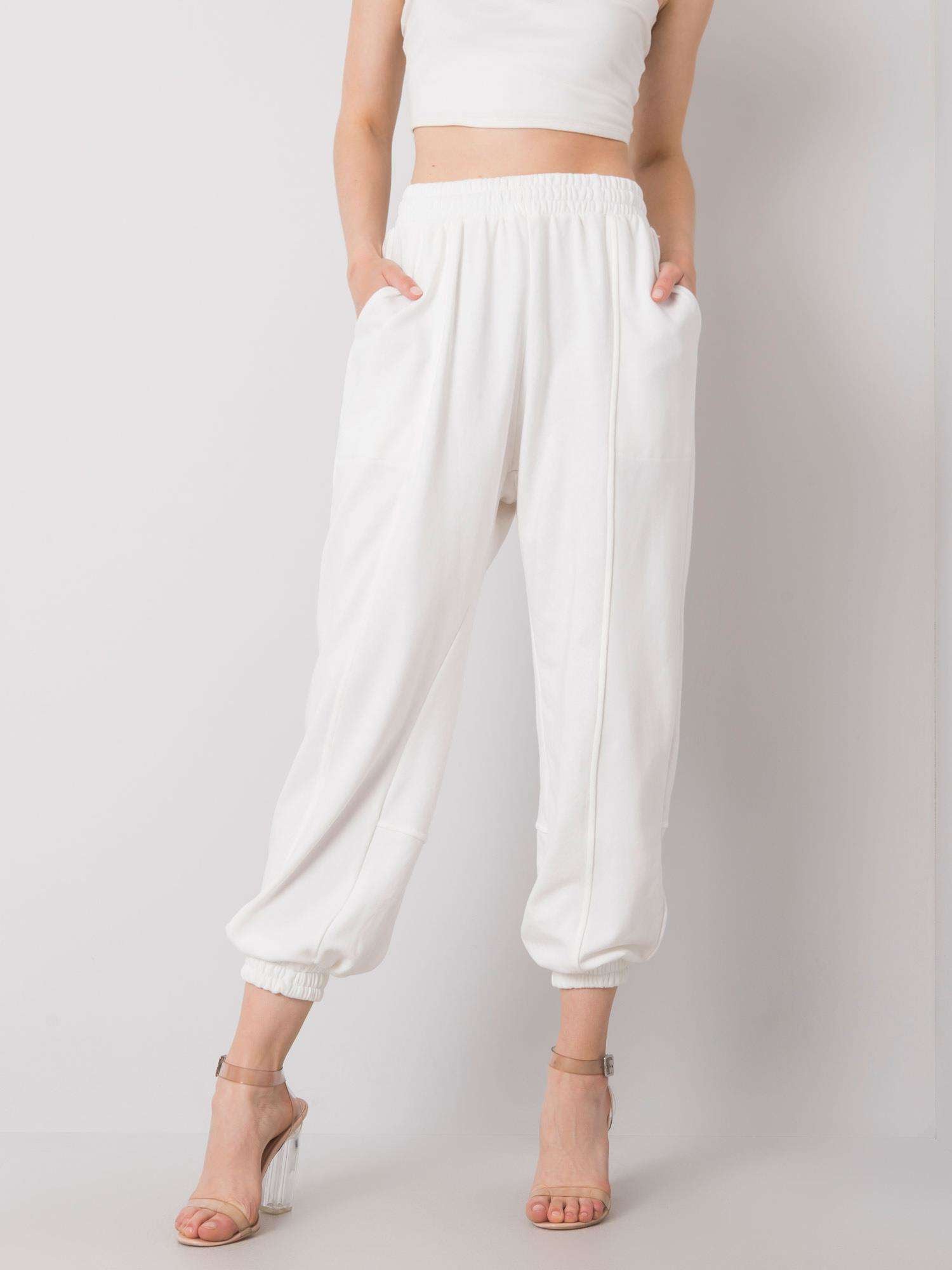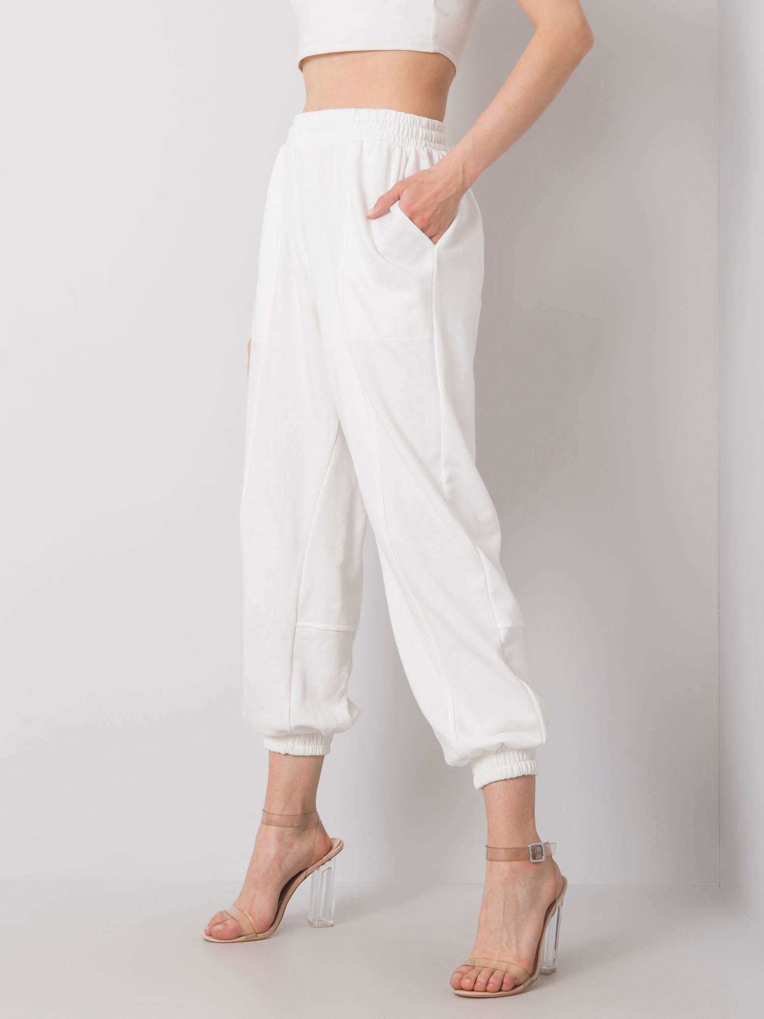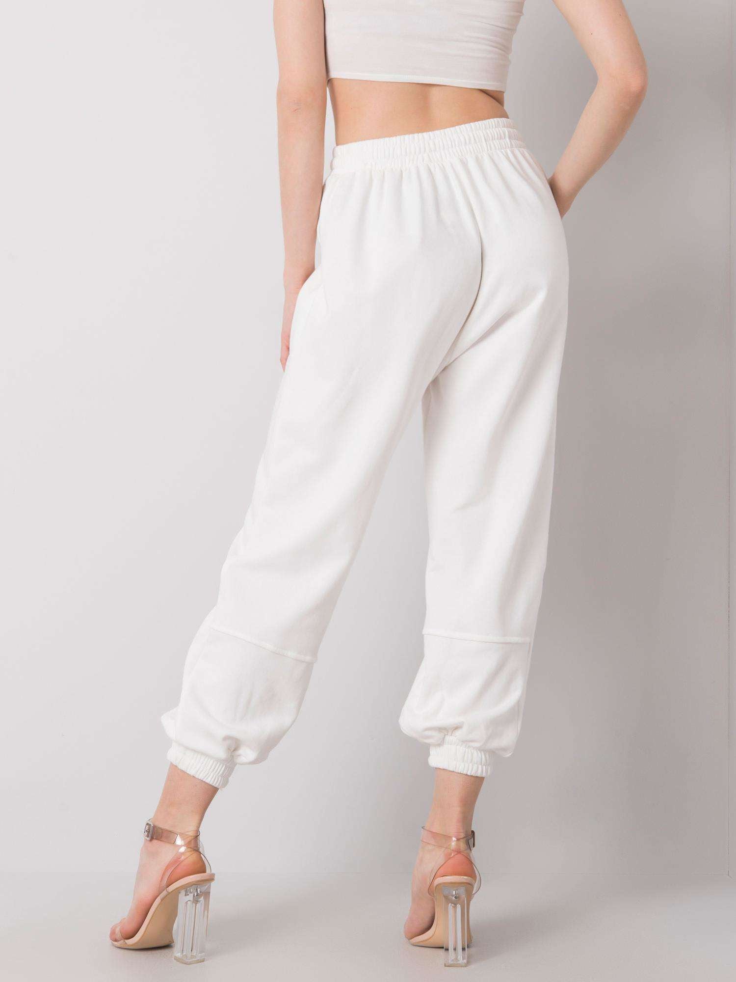 Białe bawełniane spodnie dresowe.