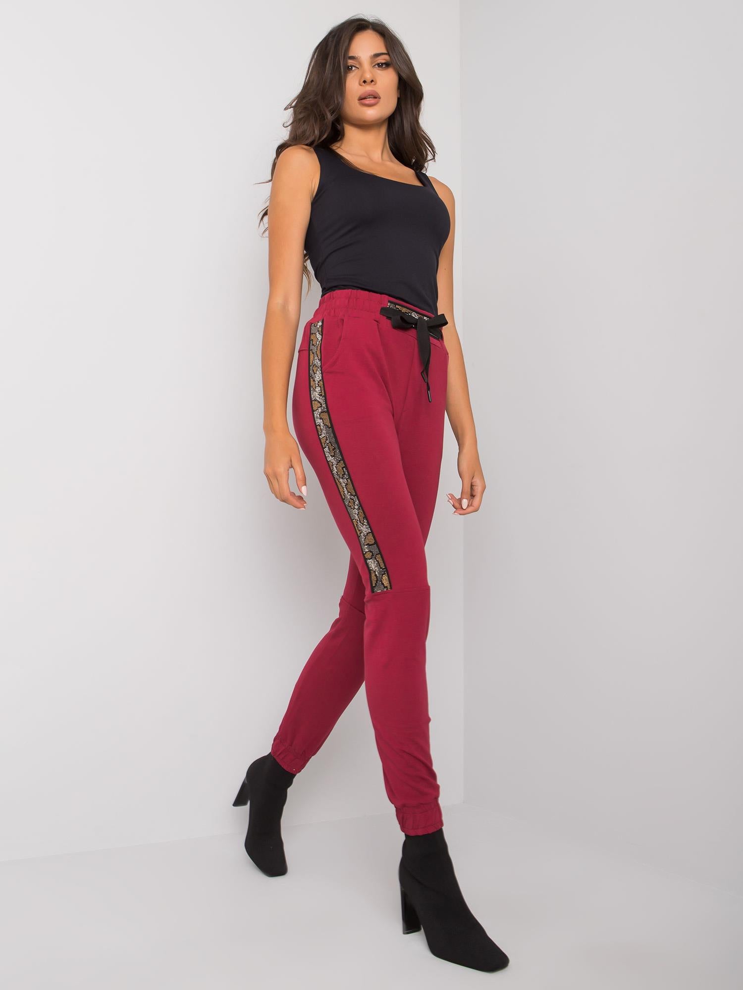 Bordowe damskie spodnie dresowe.