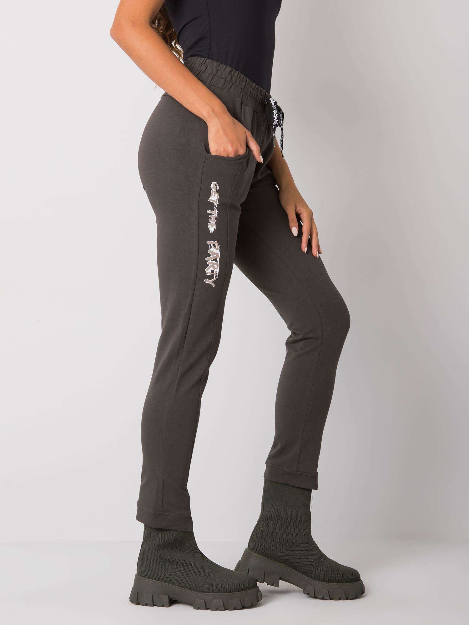 Ciemne khaki spodnie dresowe damskie z bawełny.