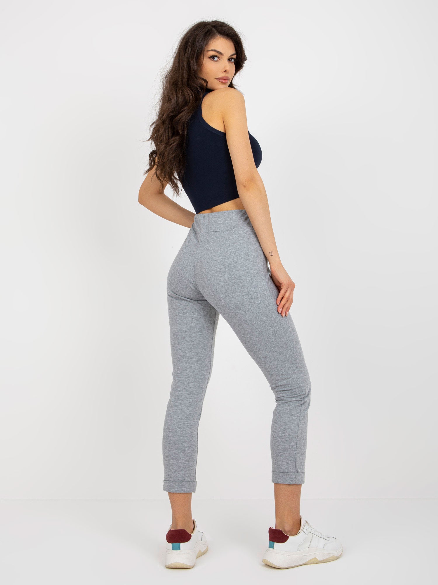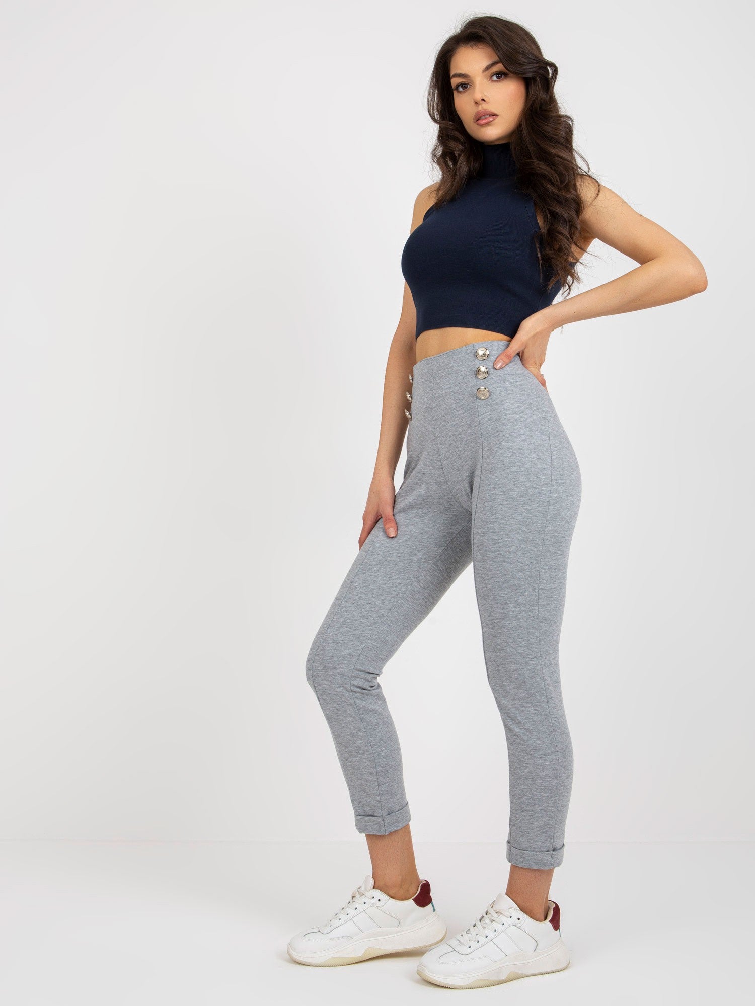 Szare damskie spodnie dresowe z ozdobnymi guzikami .