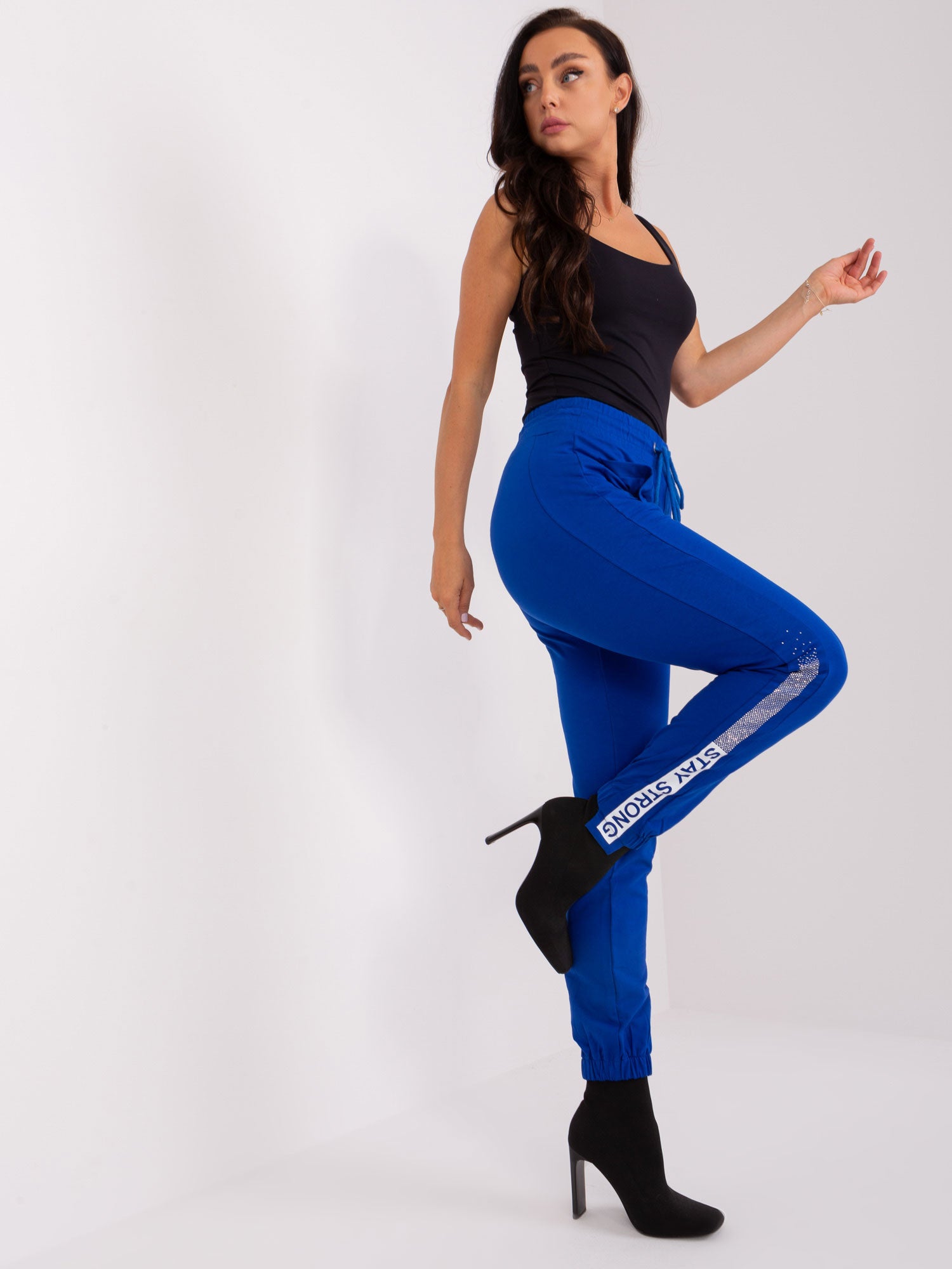 Kobaltowe spodnie dresowe z kieszeniami .