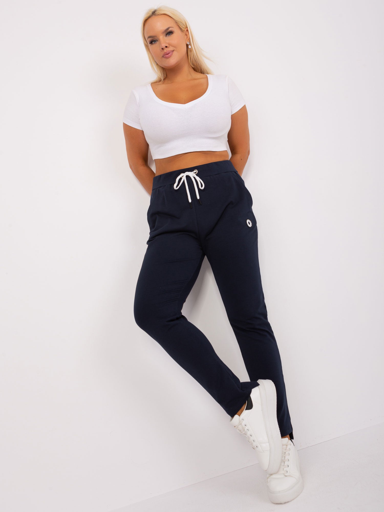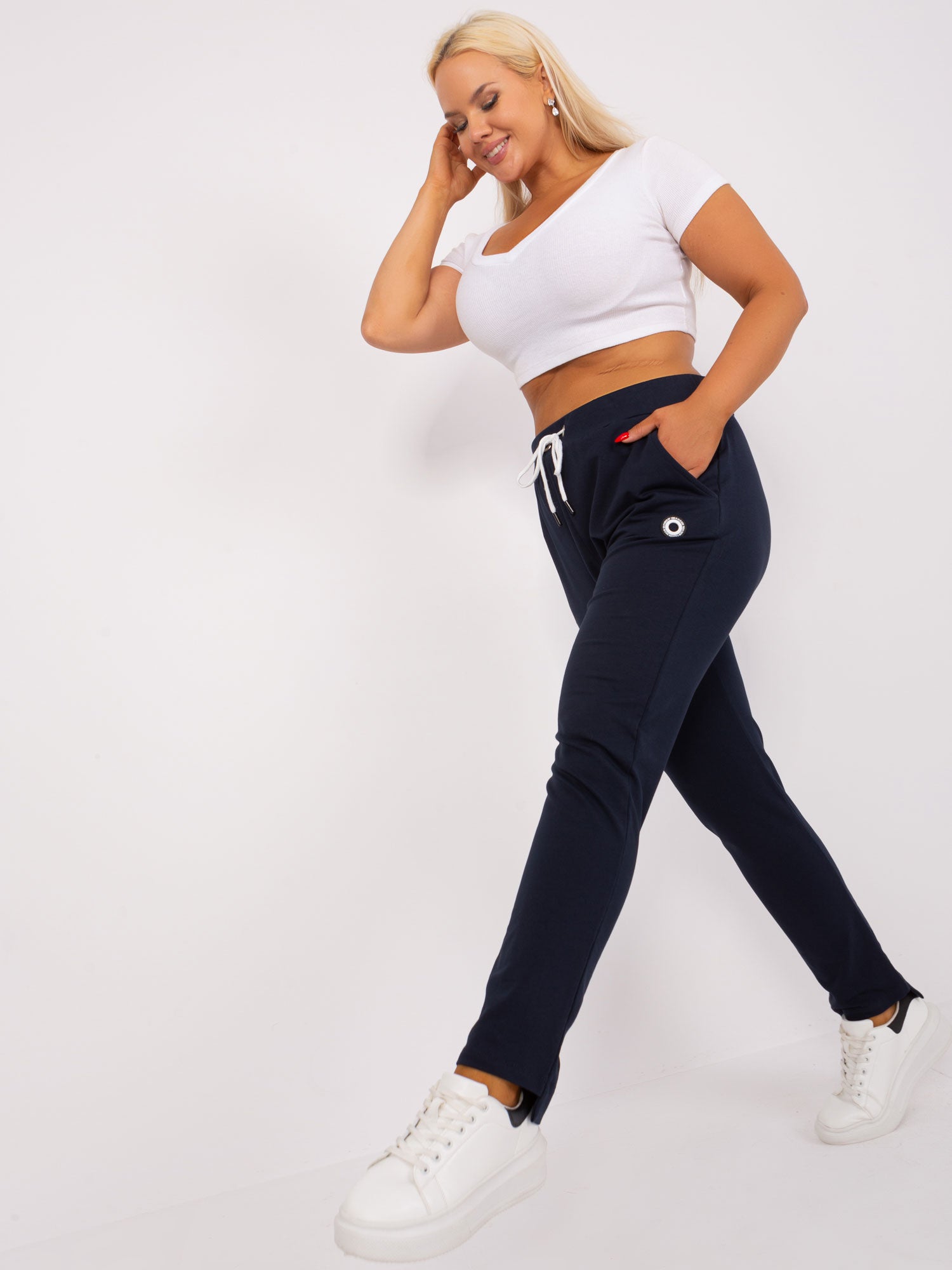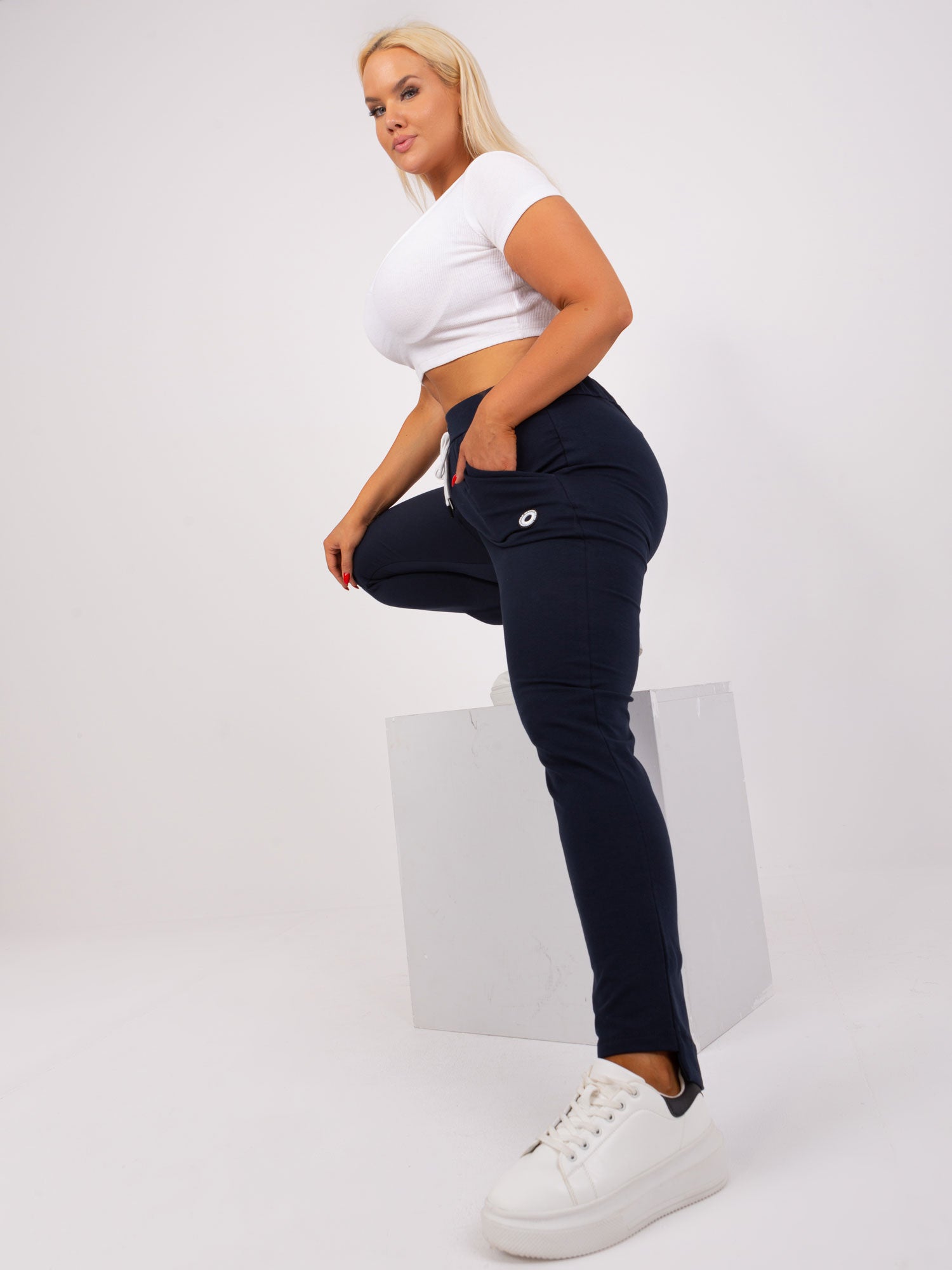 Granatowe spodnie dresowe plus size basic z kieszeniami.