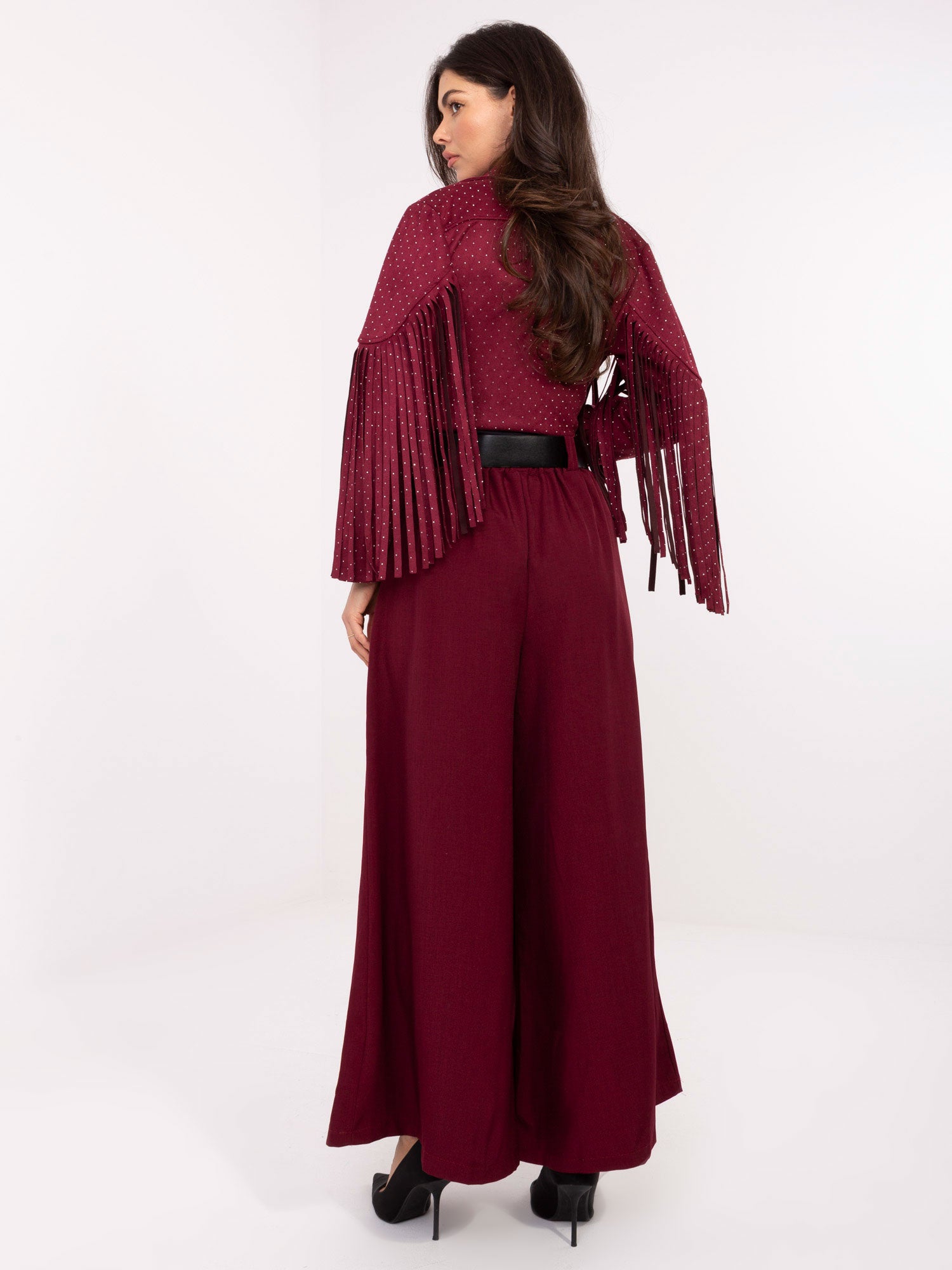 Wymiary spodni w rozmiarze one size: szerokość w pasie - 36 cm (na płasko), szerokość w pasie - 51 cm (po rozciągnięciu), szerokość w biodrach - 72 cm, wysokość stanu - 36 cm, długość całkowita - 105 cm.