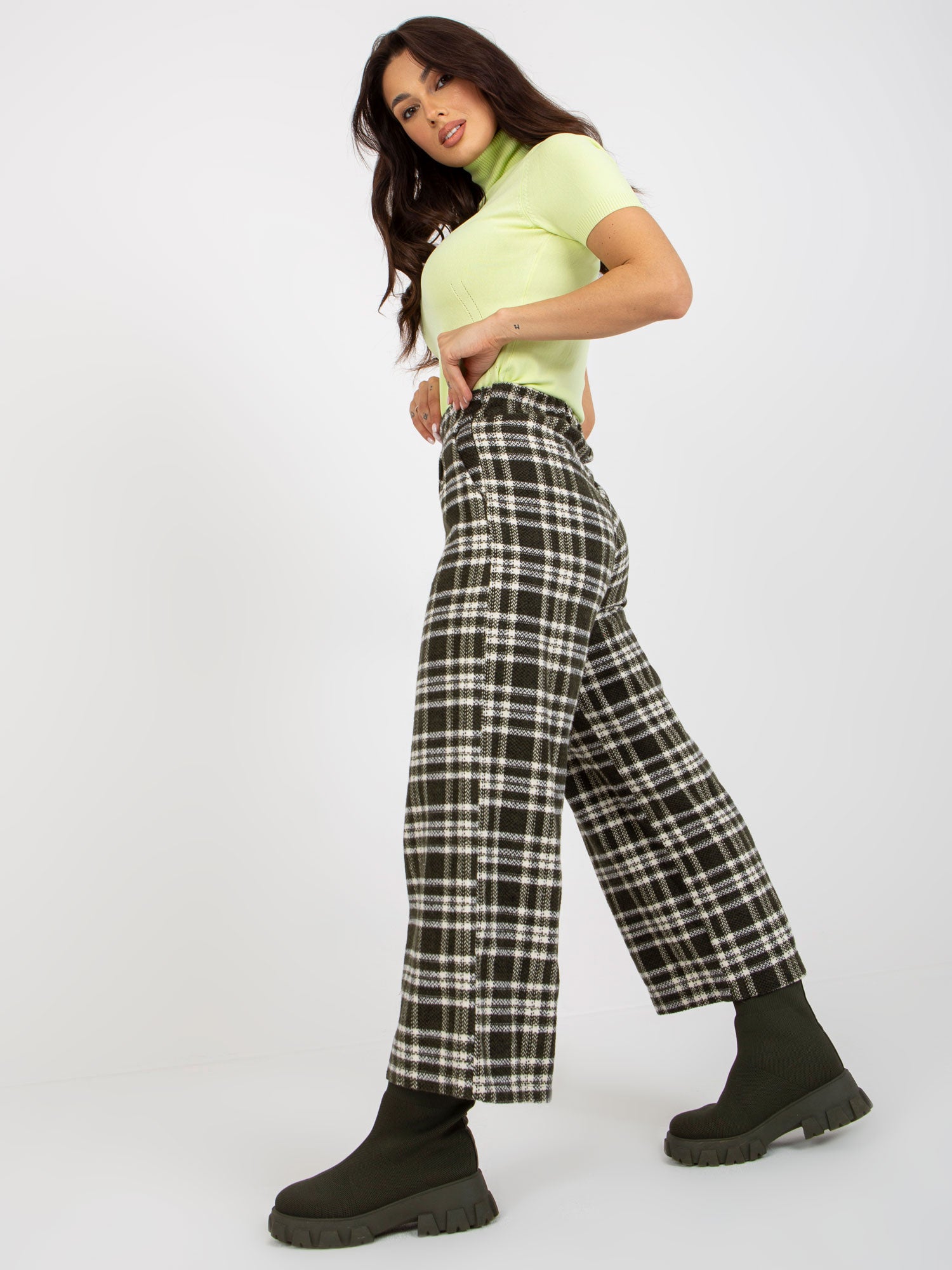 Khaki szerokie spodnie kuloty materiałowe z wełny .