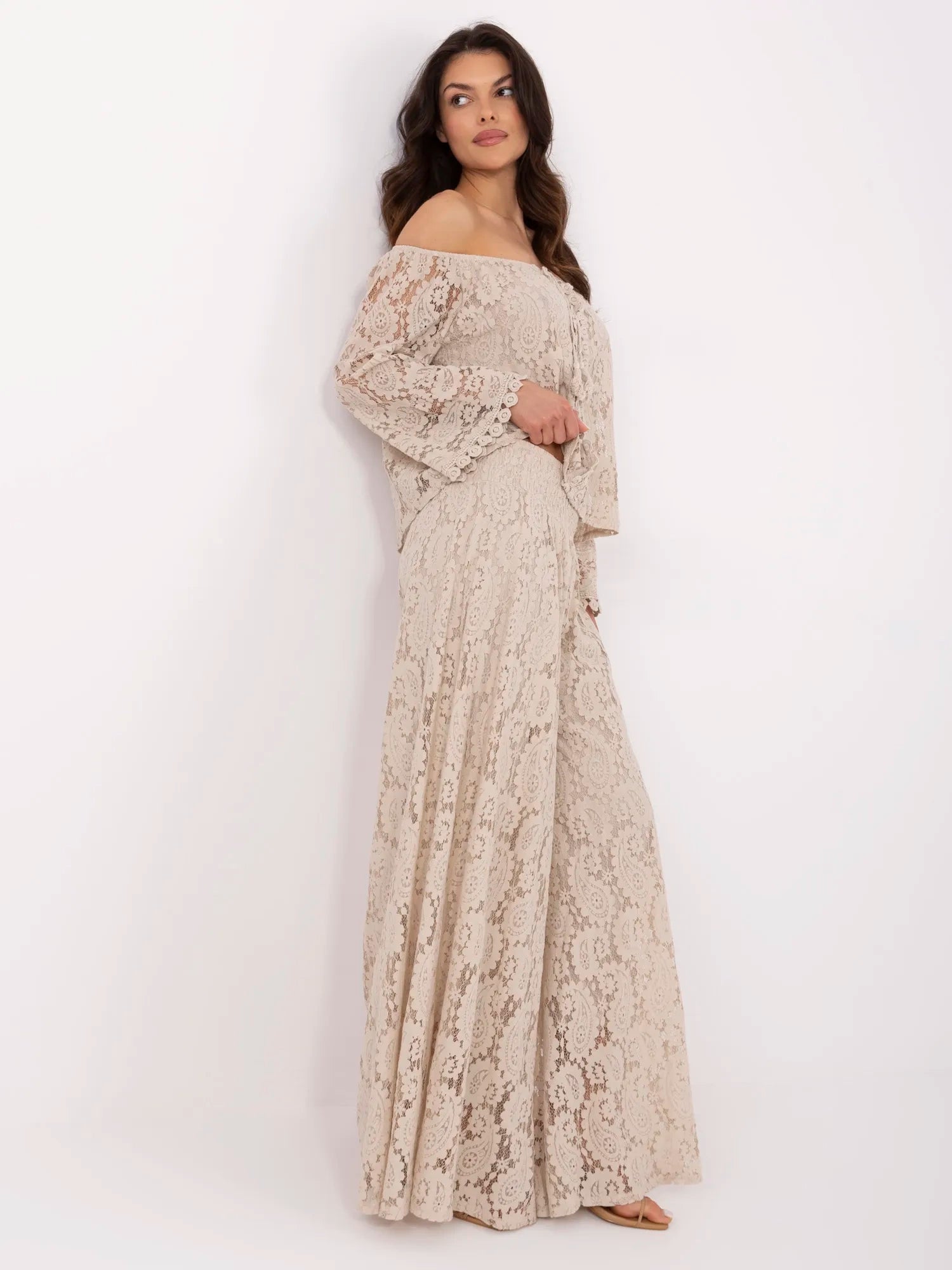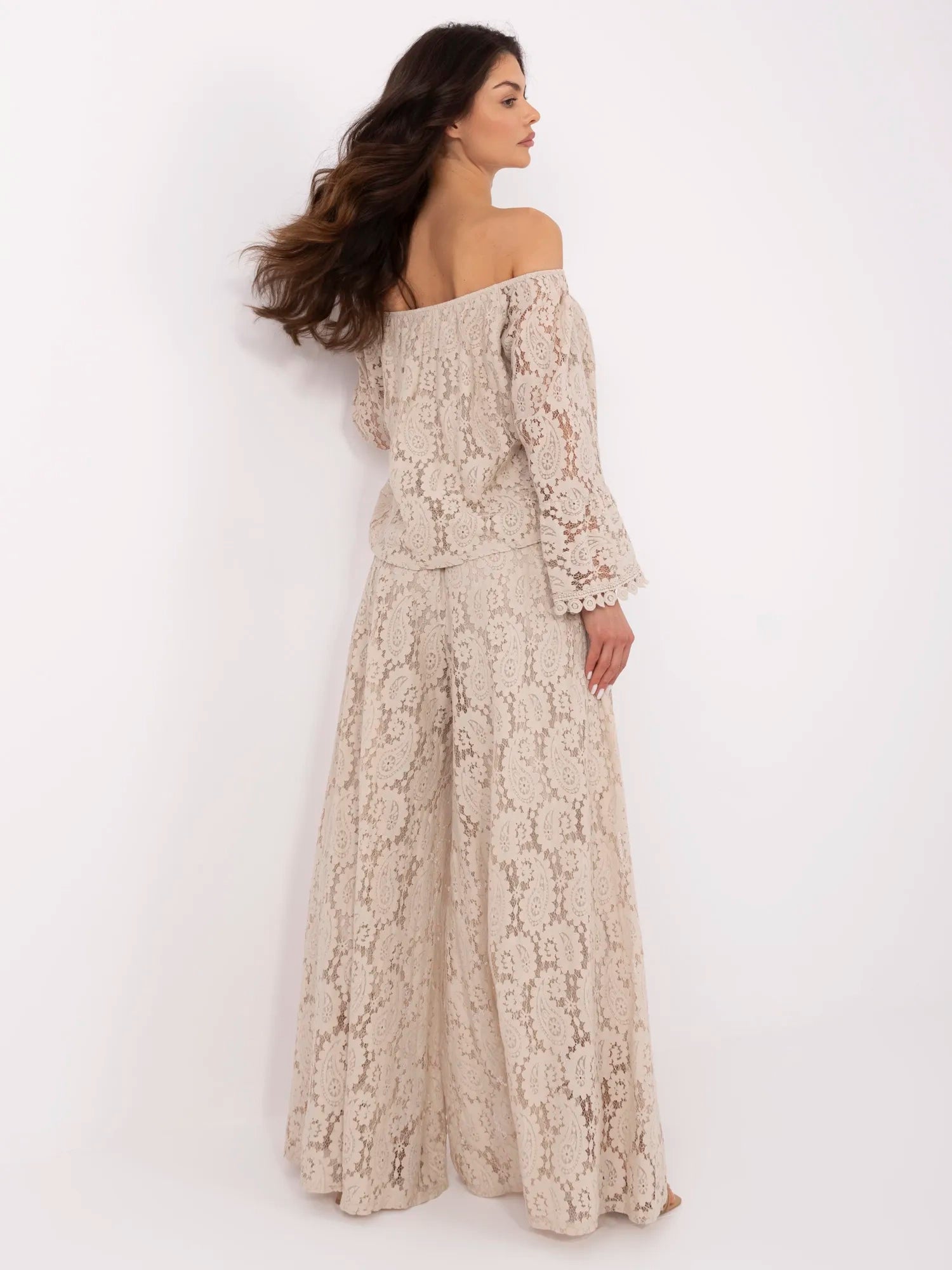 Modelka ma na sobie rozmiar one size. Wymiary modelki: wzrost 173 cm, biust 85 cm, talia 62 cm, biodra 95 cm.