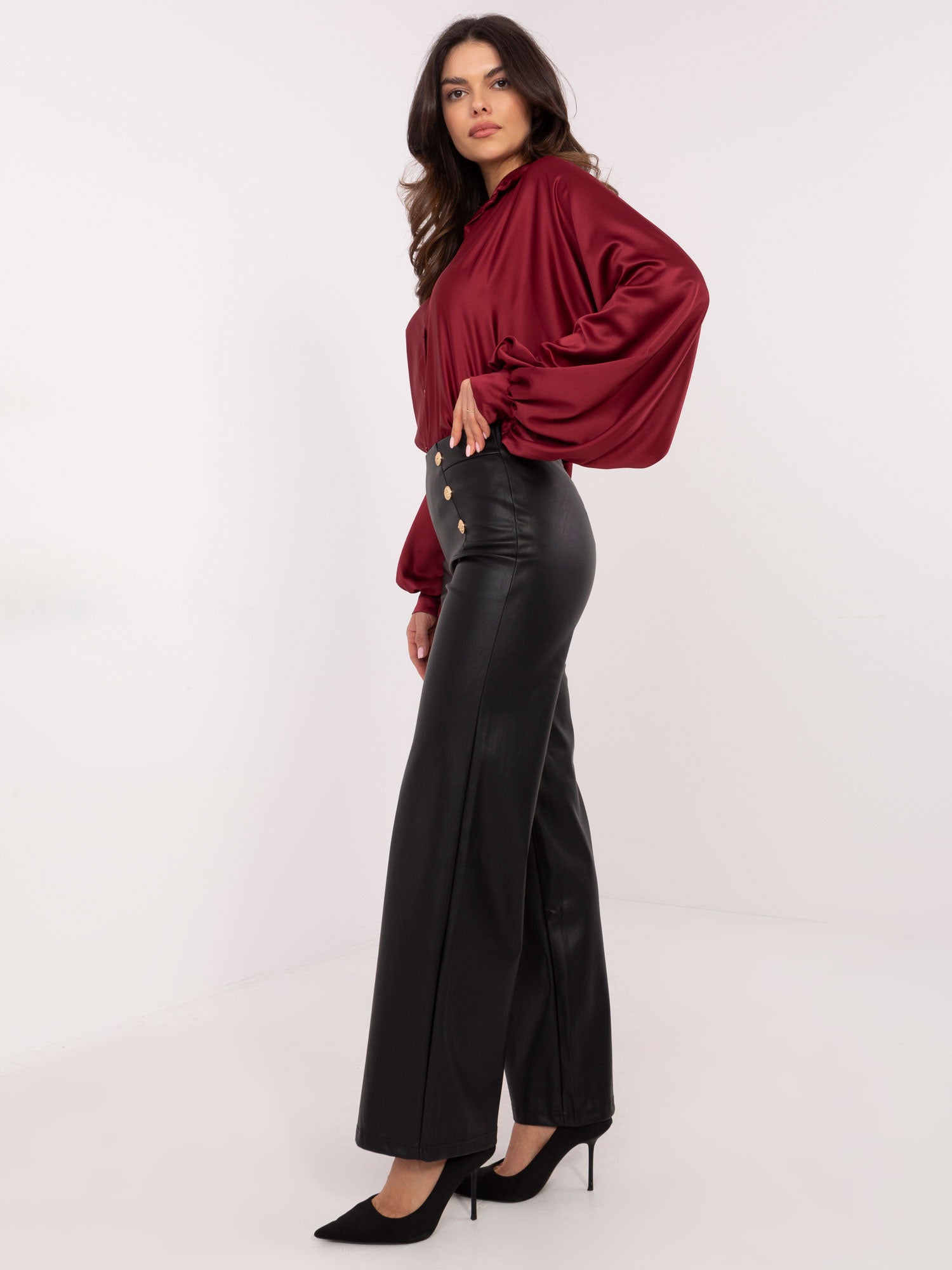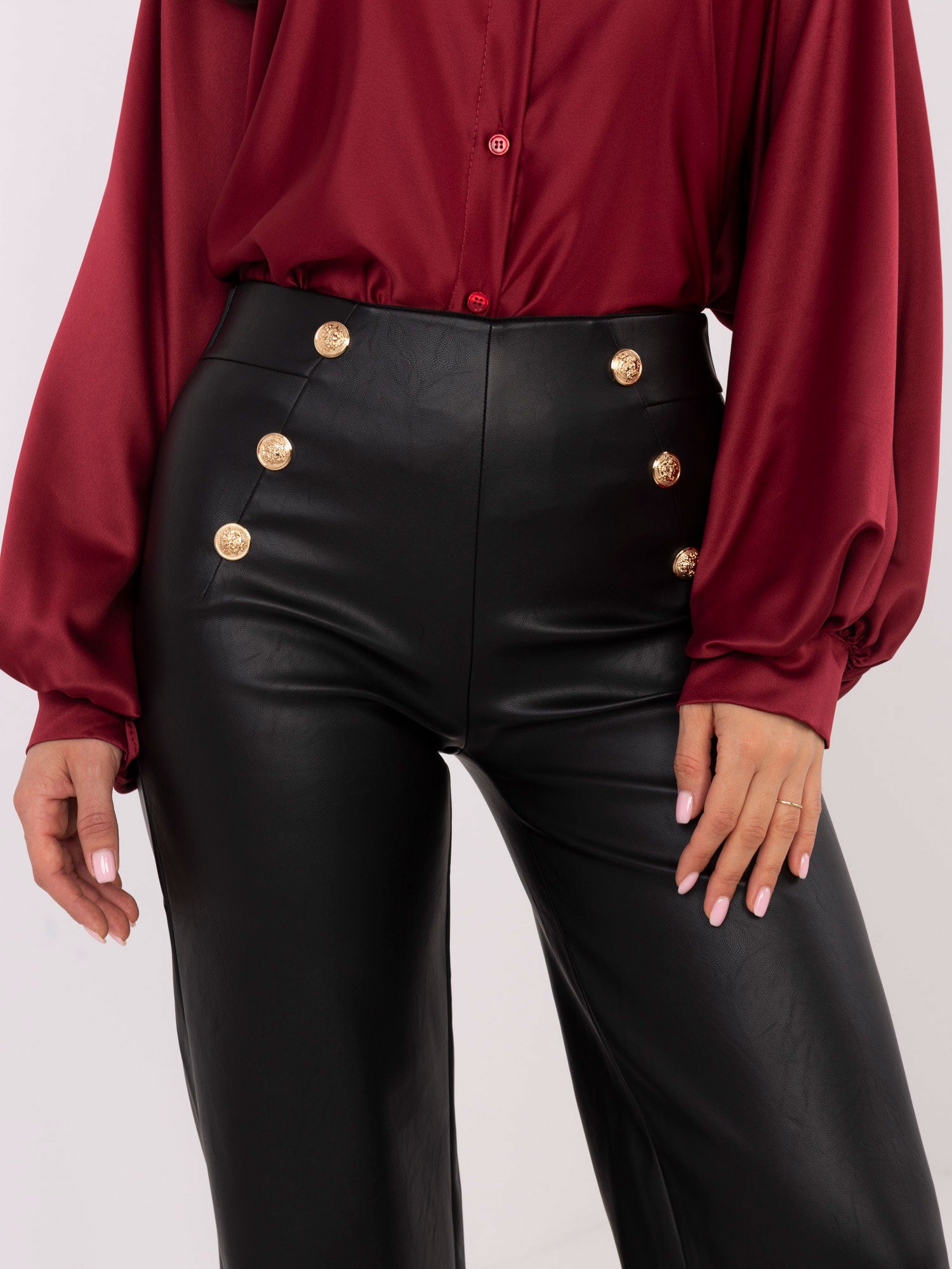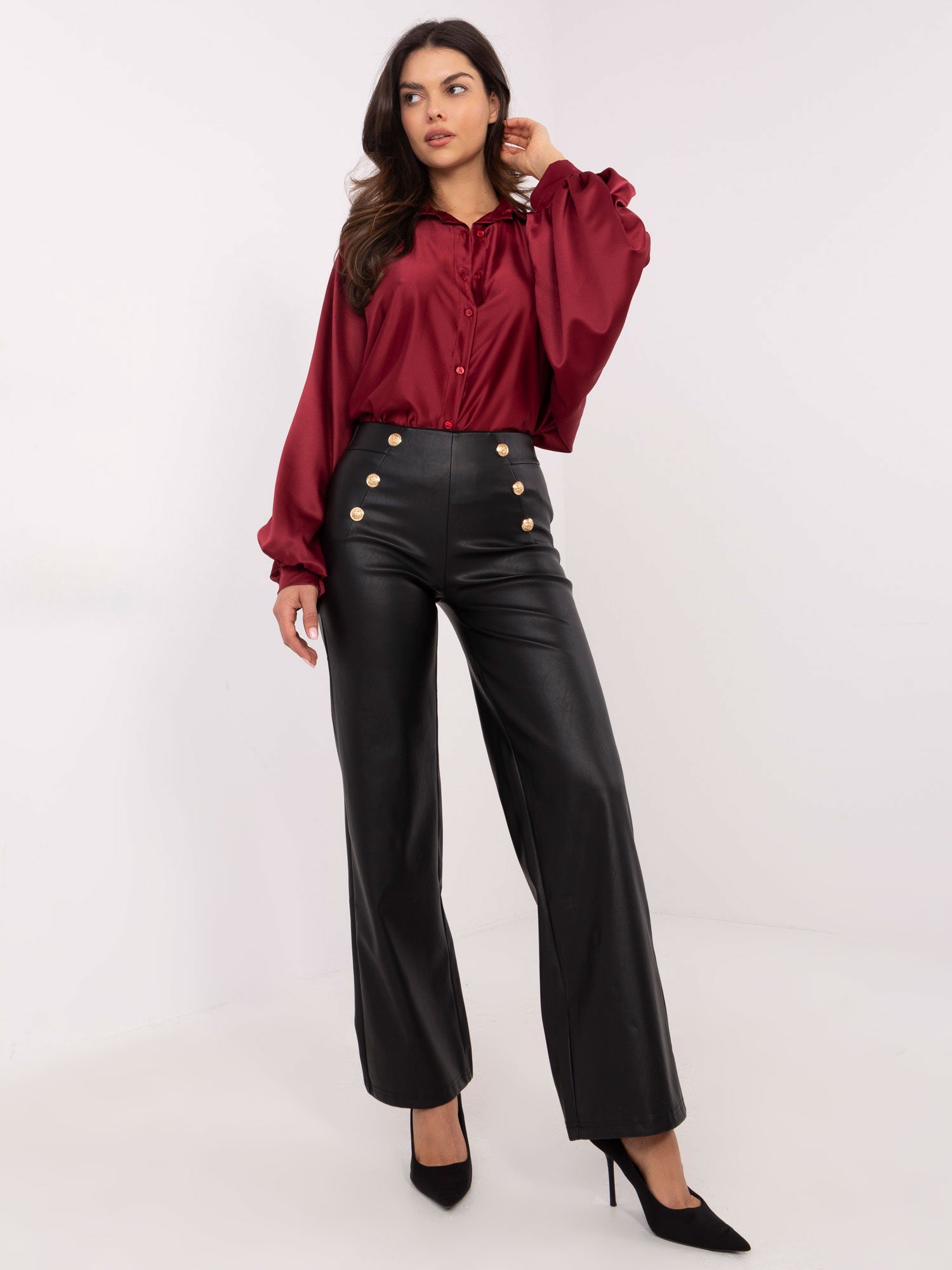 Modelka ma na sobie rozmiar S. Wymiary modelki: wzrost 173 cm, biust 85 cm, talia 62 cm, biodra 95 cm.