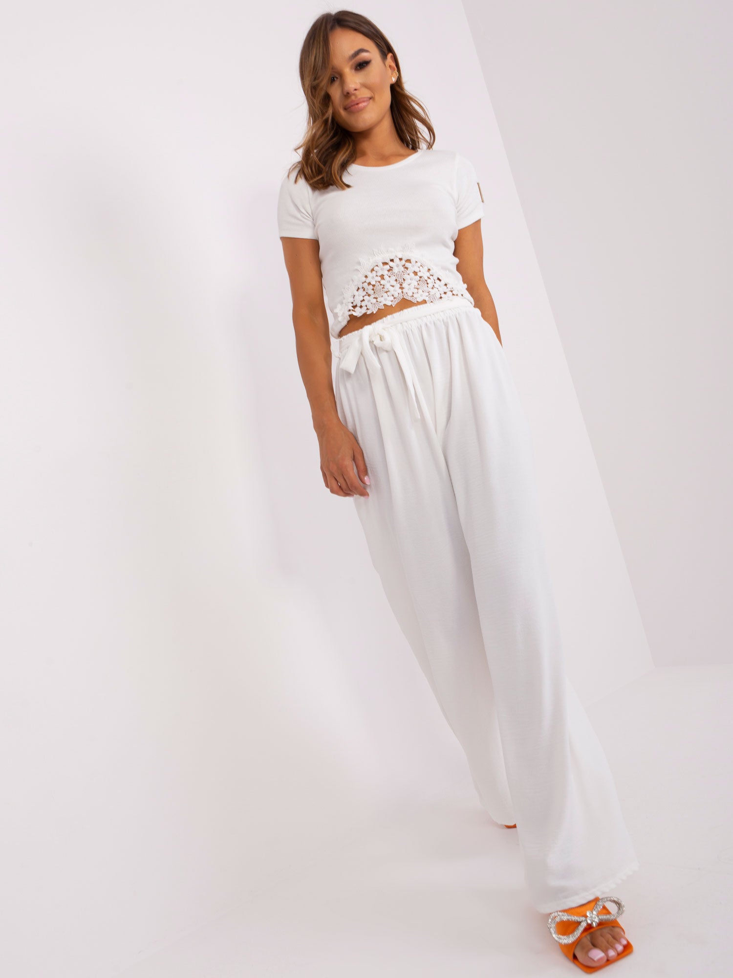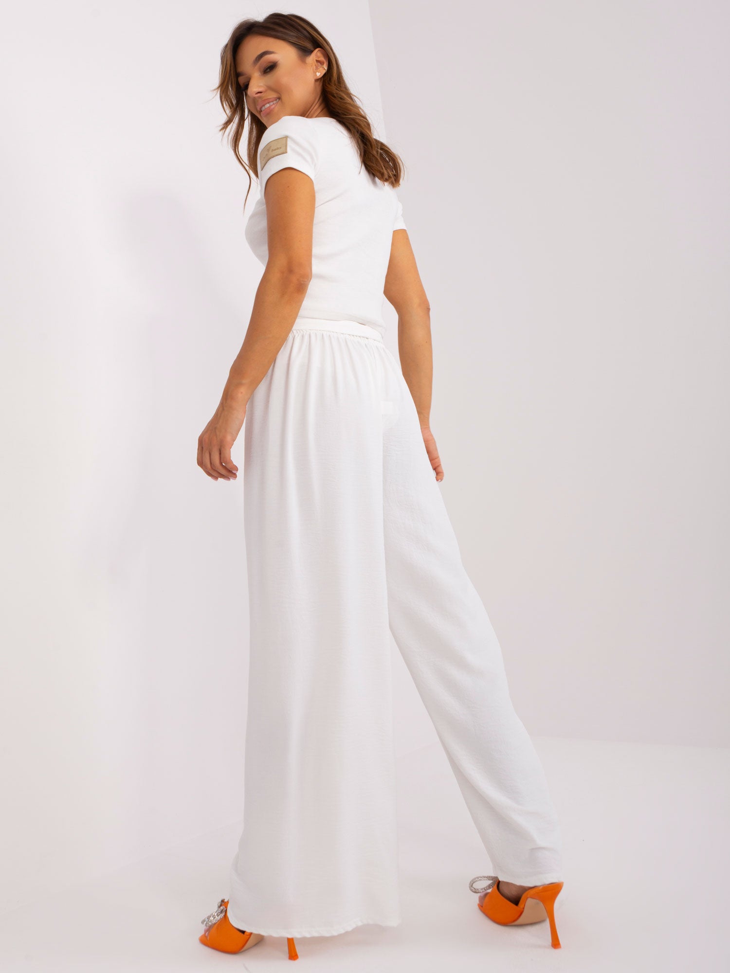Ecru szerokie spodnie z materiału OCH BELLA .