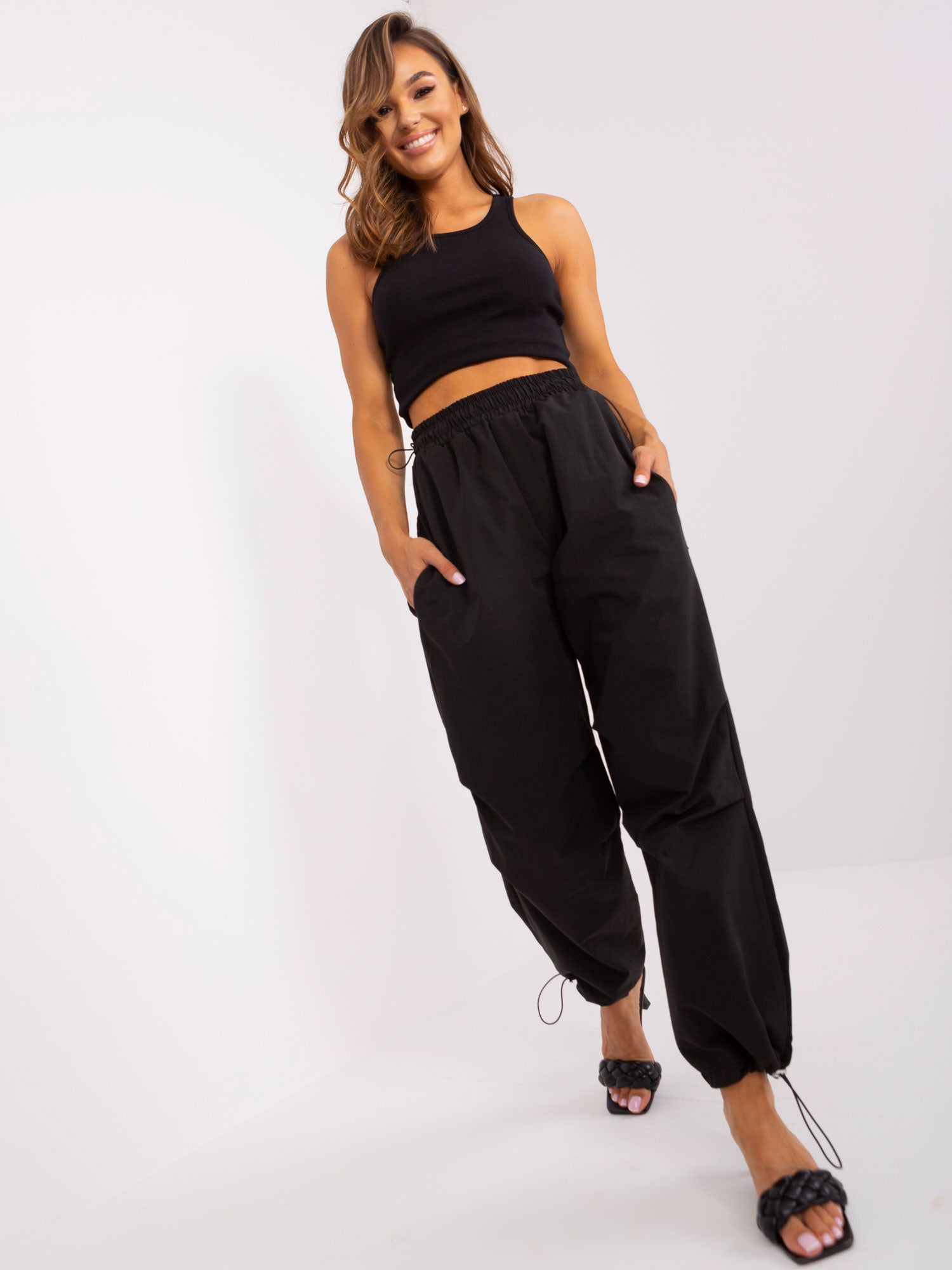 Czarne spodnie parachute z wysokim stanem OCH BELLA .