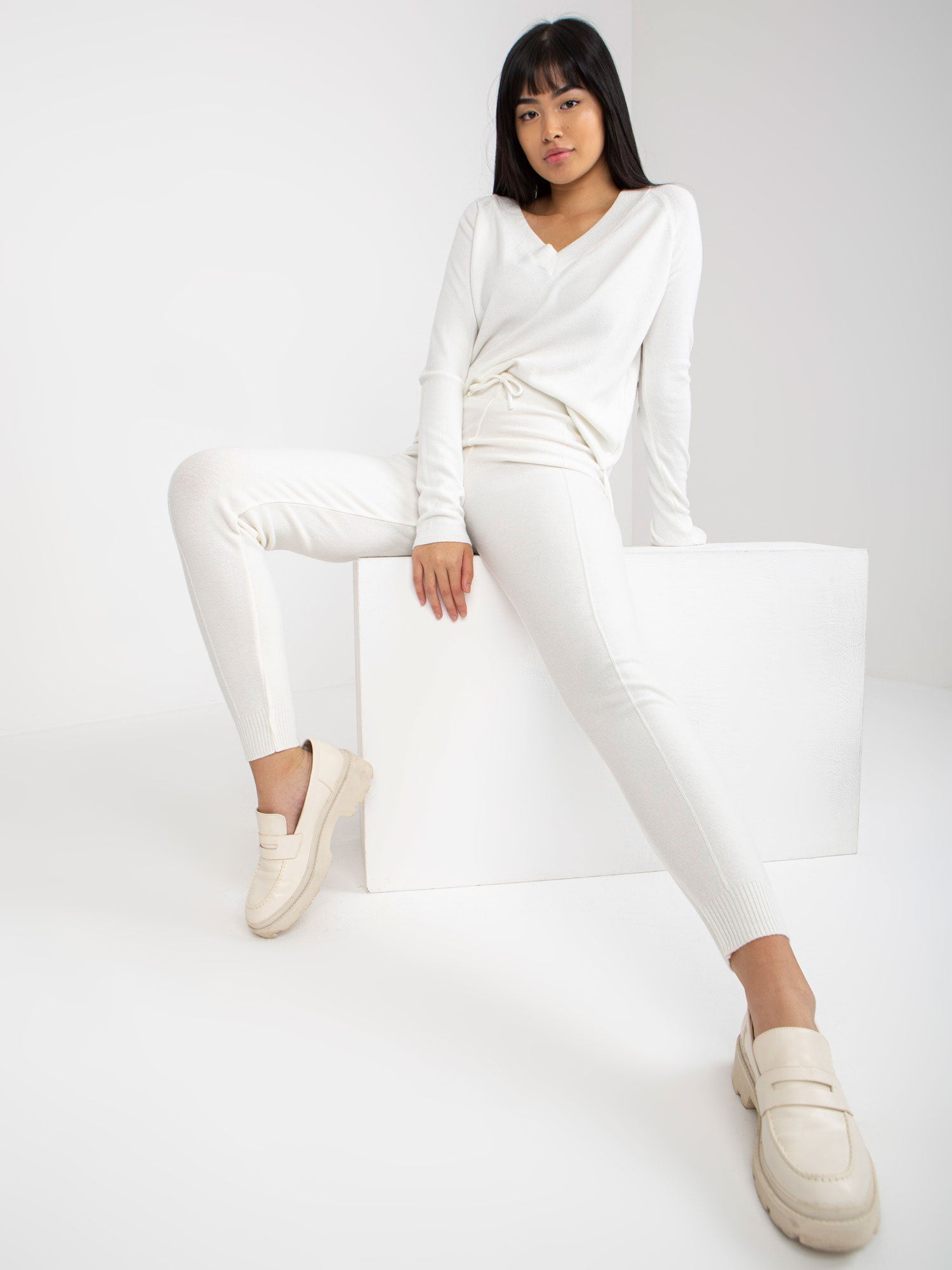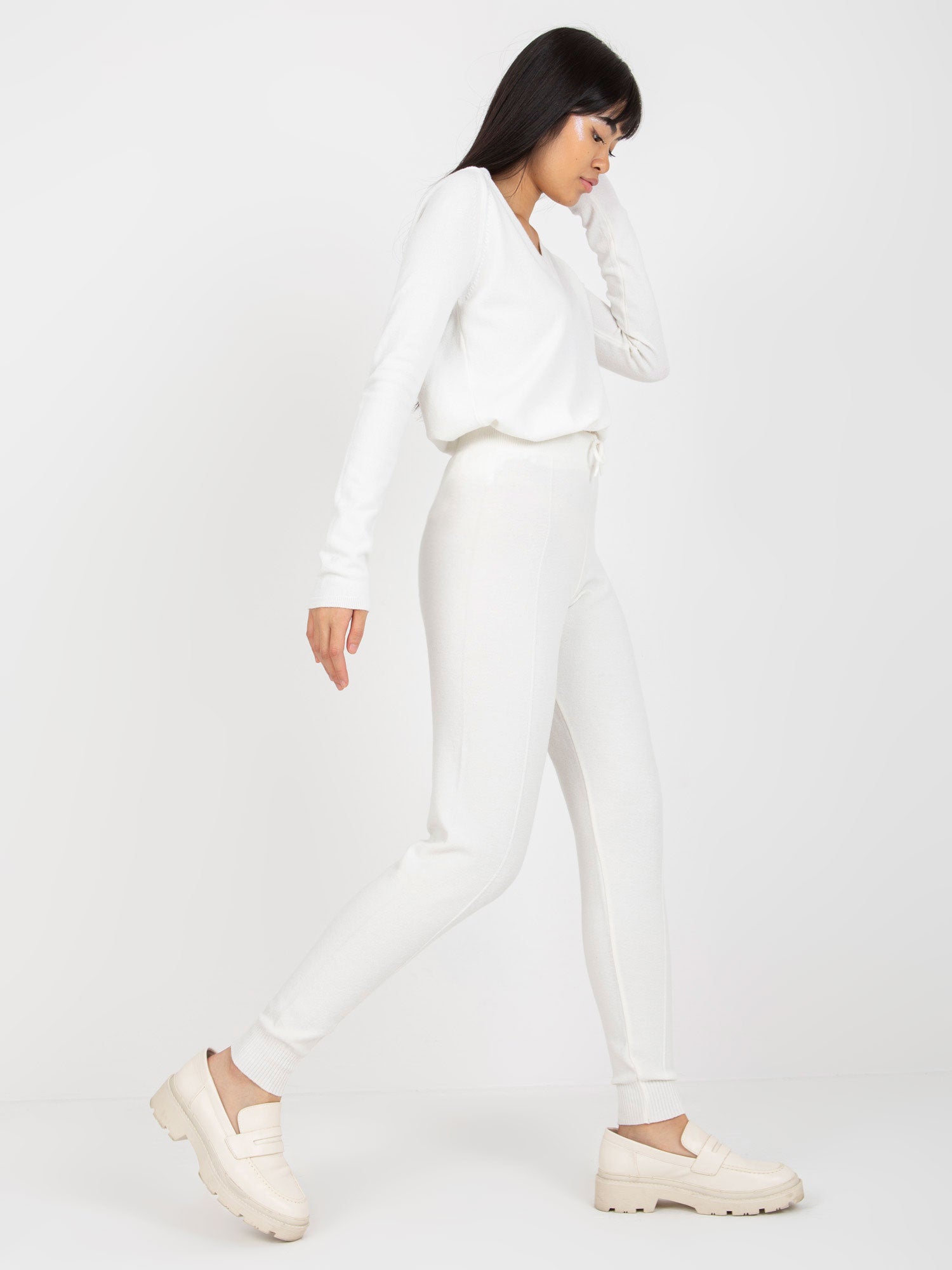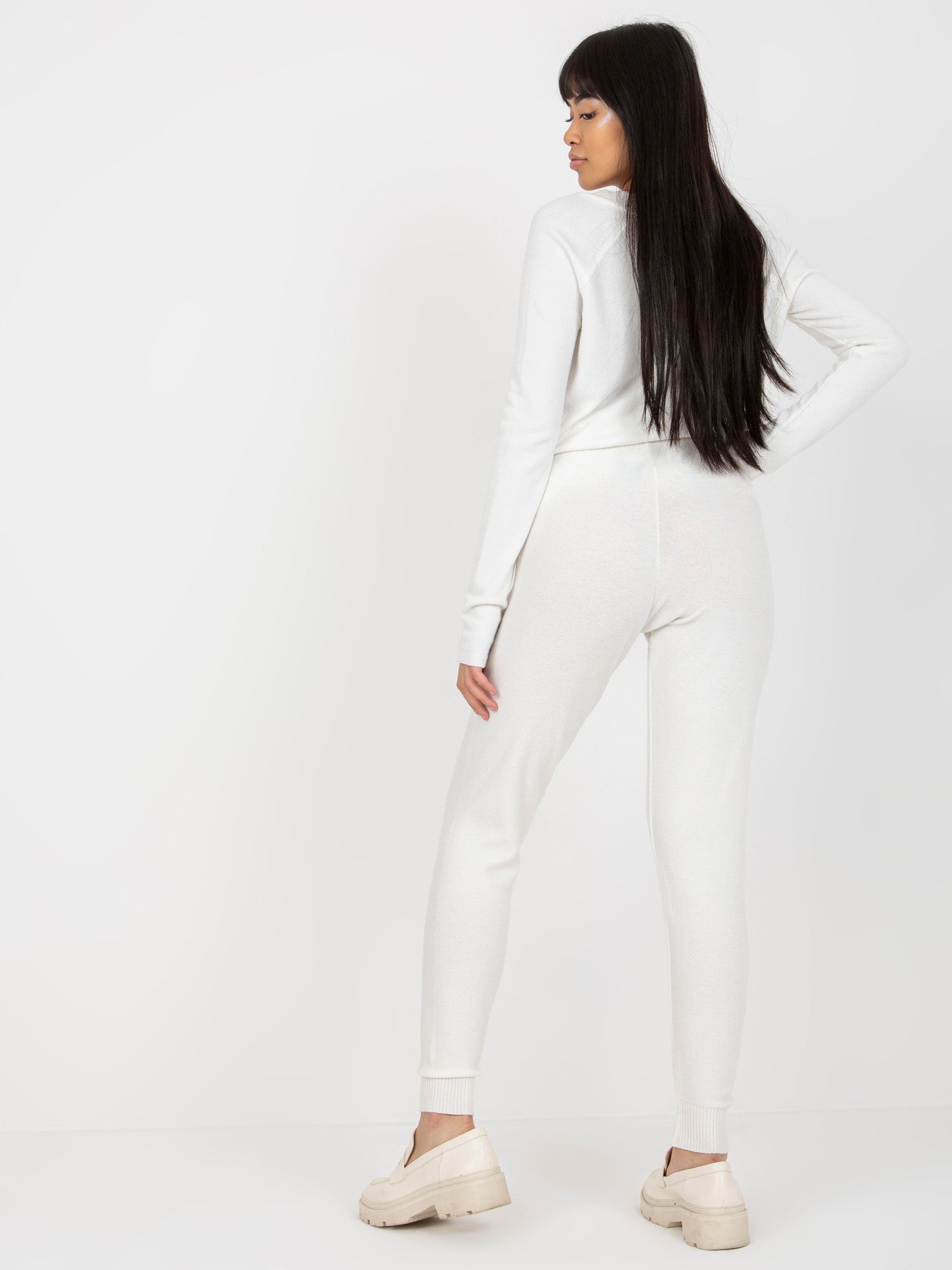 Ecru damskie spodnie dzianinowe ze ściągaczem .