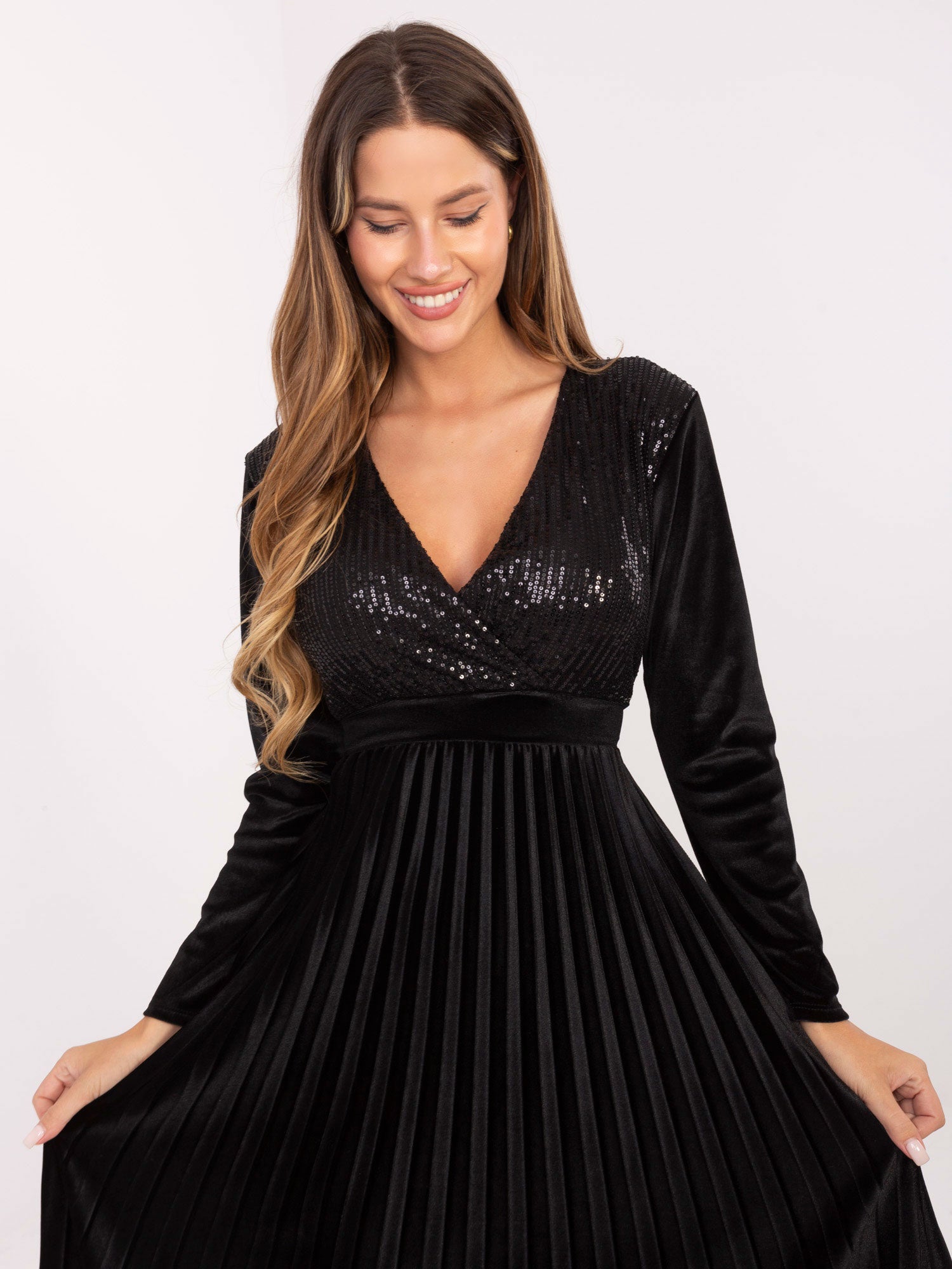 Wymiary sukienki w rozmiarze one size: szerokość pod pachami - 44 cm, szerokość w talii - 34 cm, długość rękawa - 58 cm, szerokość w biodrach - 70 cm, długość całkowita - 146 cm.