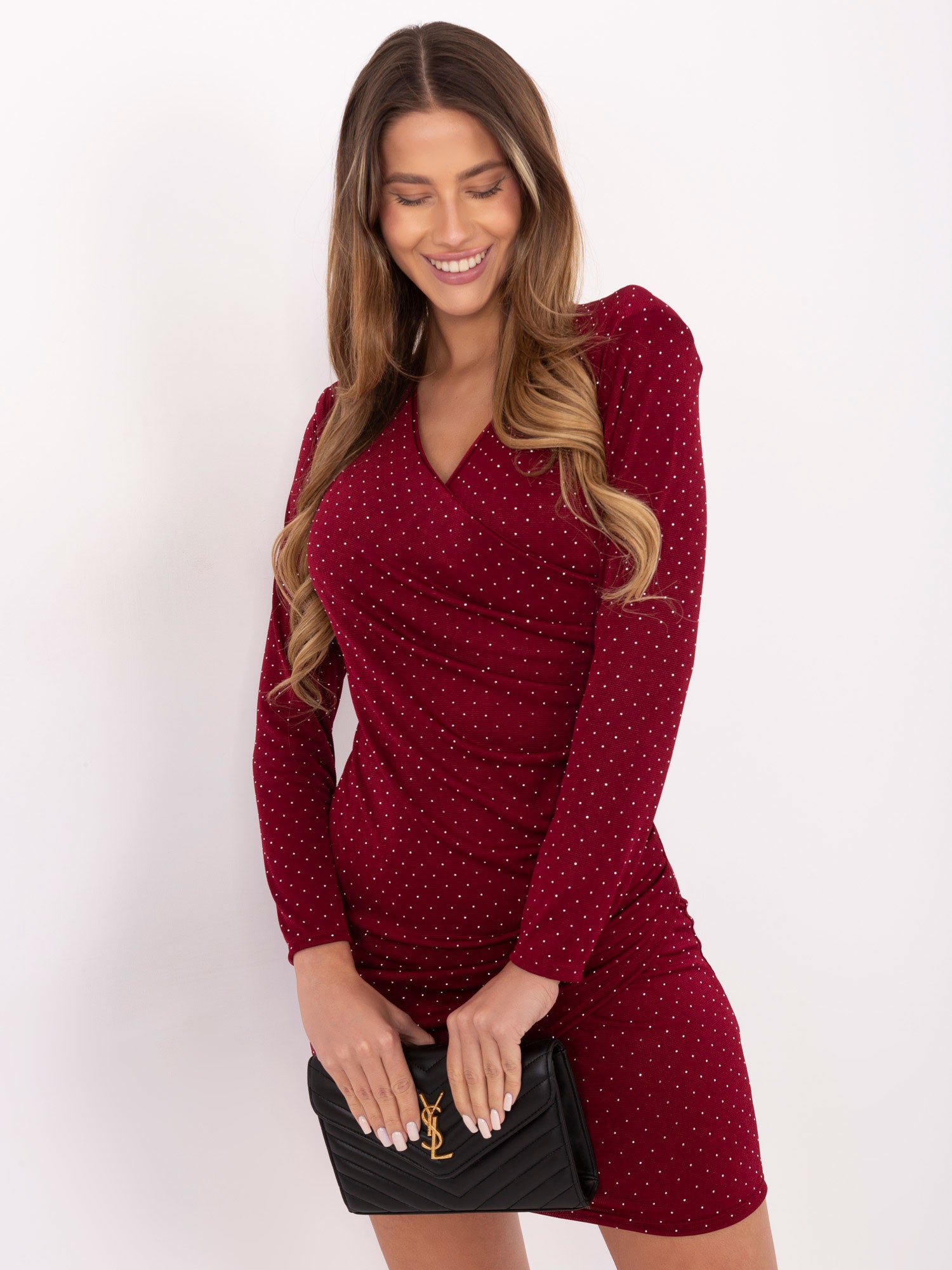 Wymiary sukienki w rozmiarze one size mierzone na płasko: szerokość pod pachami - 45 cm, długość rękawa - 55 cm, szerokość w talii - 35 cm,  szerokość w biodrach - 40 cm, długość całkowita - 90 cm.