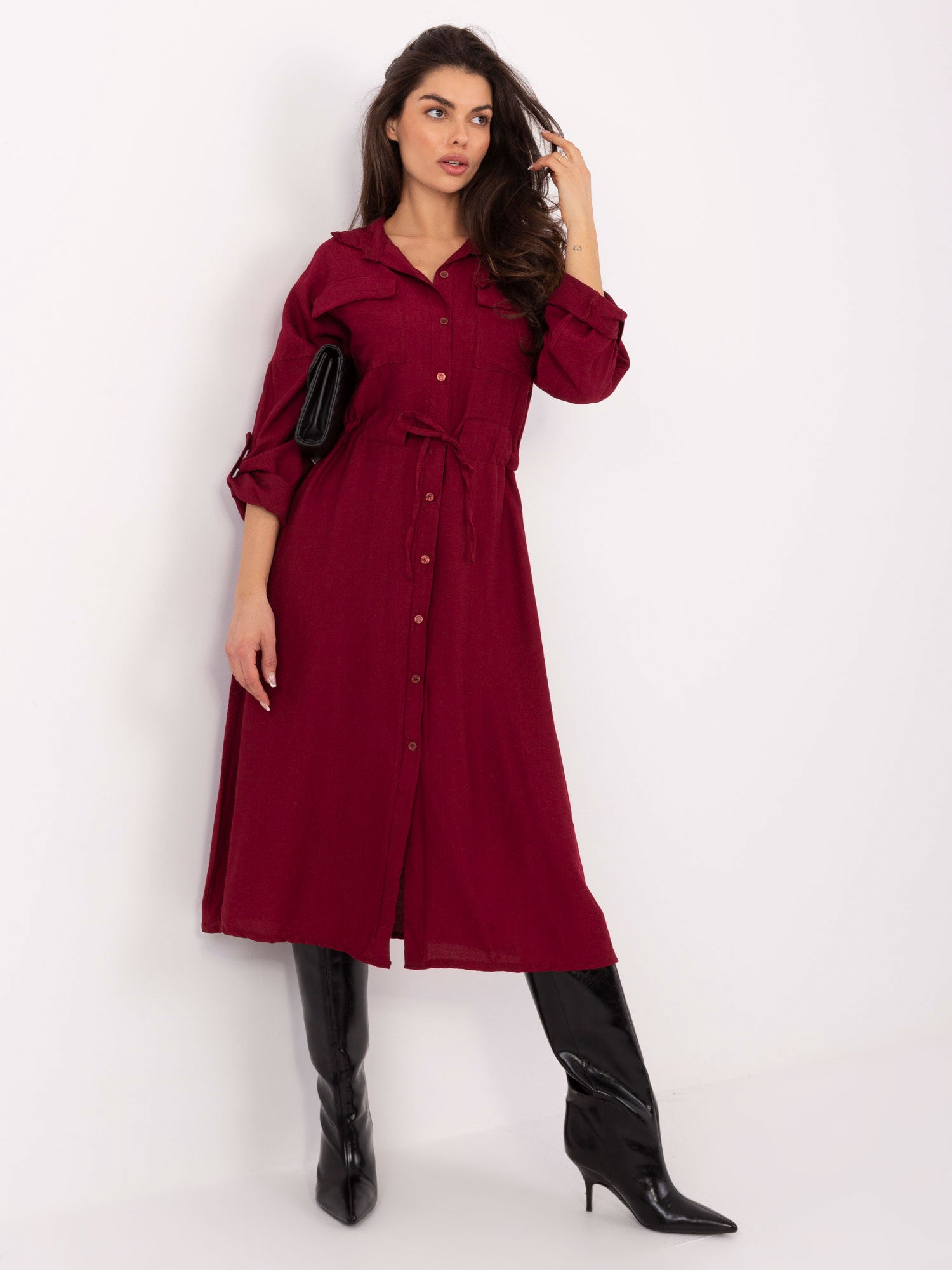 Wymiary sukienki w rozmiarze one size mierzone na płasko: szerokość pod pachami - 52 cm, długość rękawa - 43 cm, szerokość w talii - 38 cm,  szerokość w biodrach - 59 cm, długość całkowita - 121 cm.
