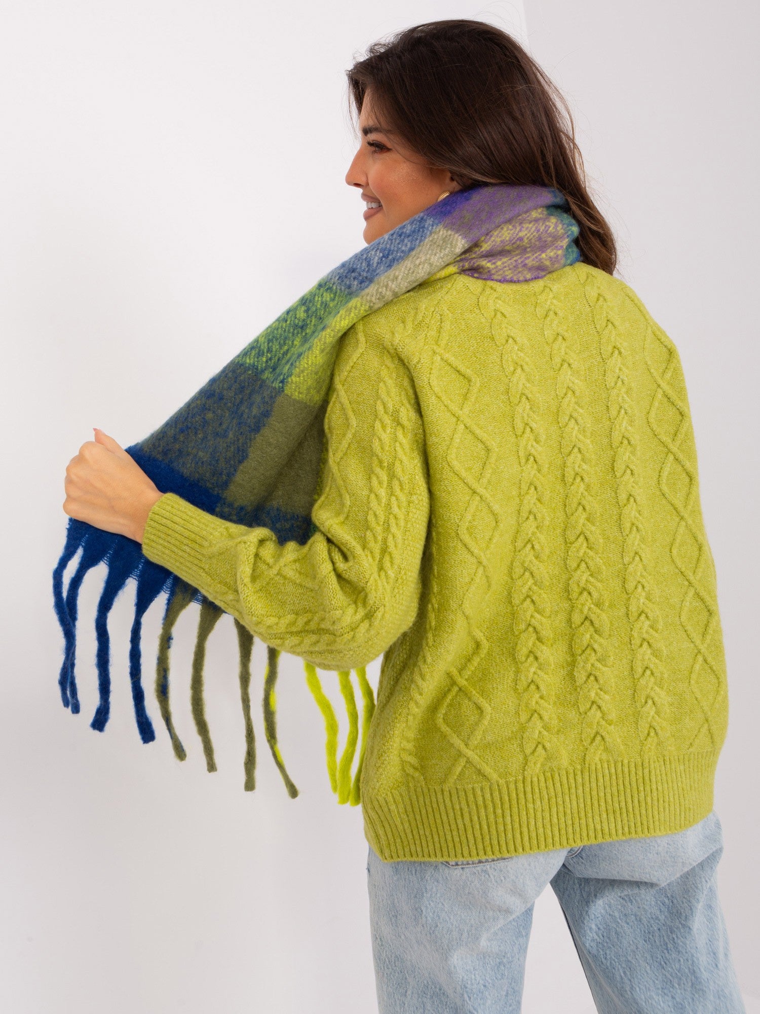 Ciemnoniebiesko-khaki damski szal z frędzlami.
