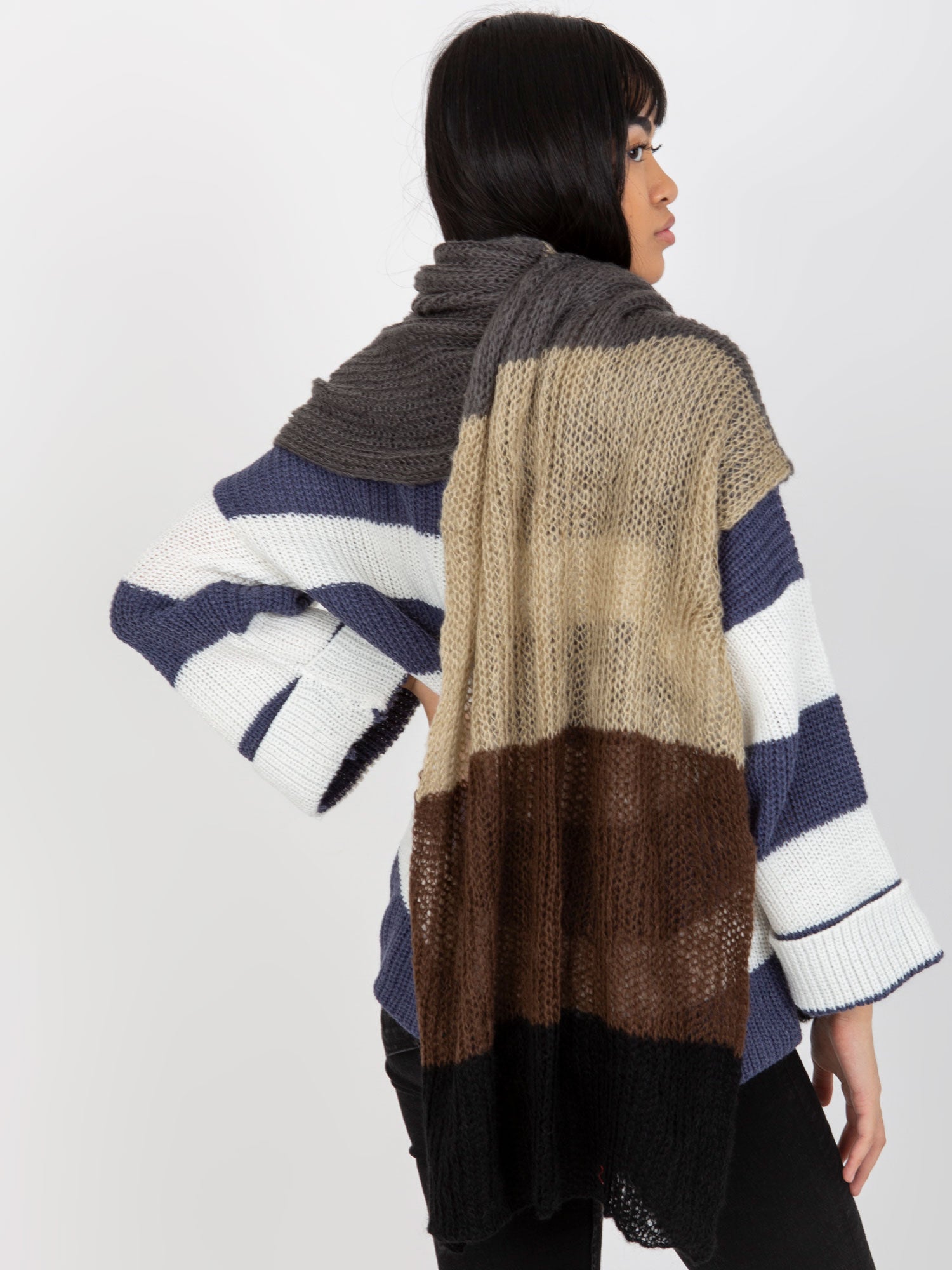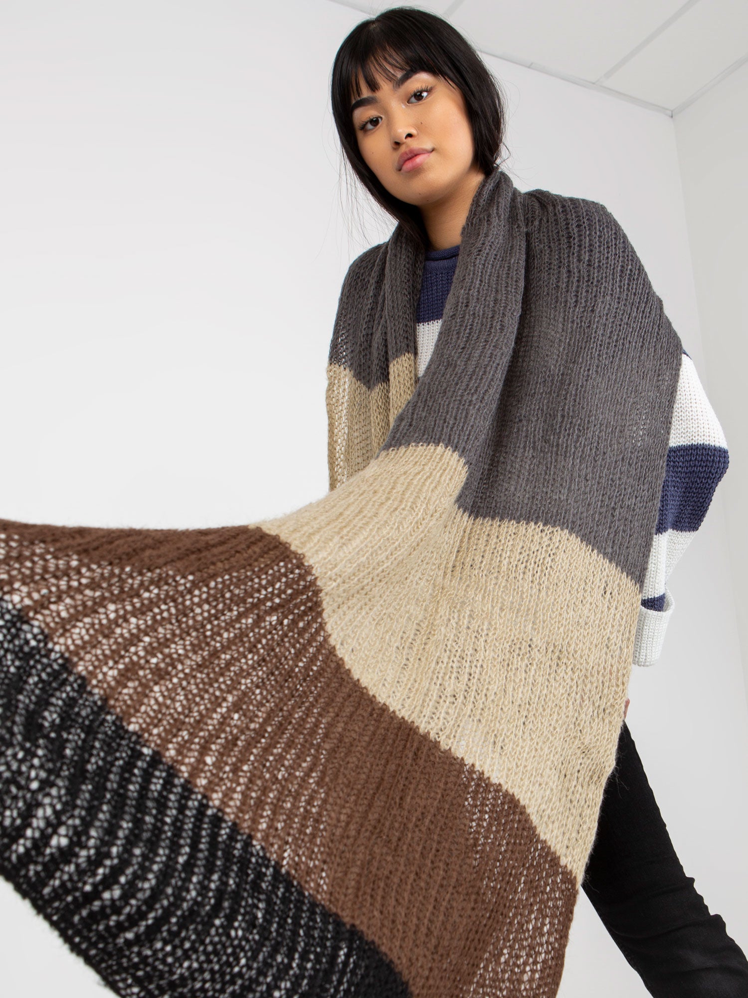 Czarno-brązowy damski szal zimowy z dzianiny .