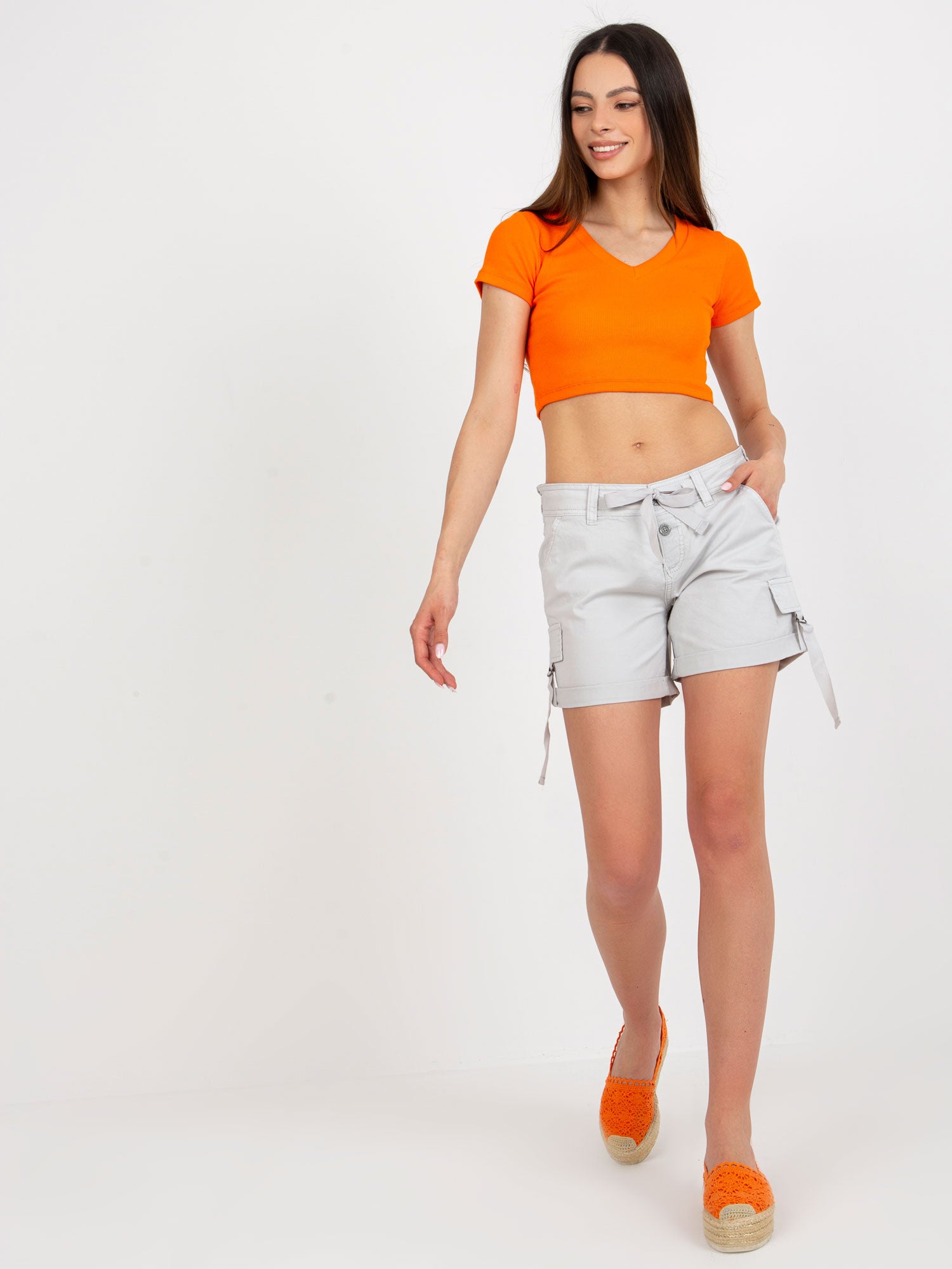Jasnoszare szorty casualowe typu cargo FRESH MADE .