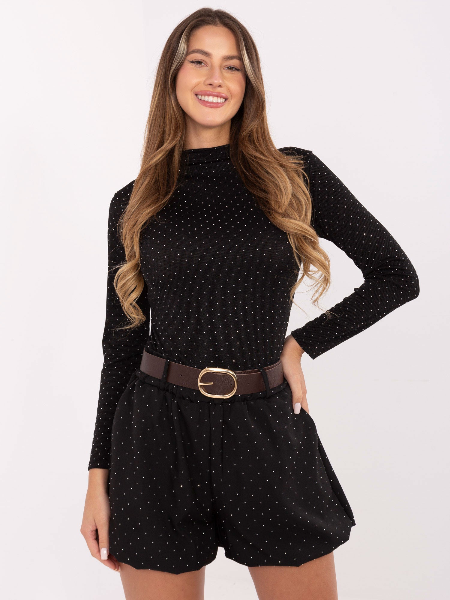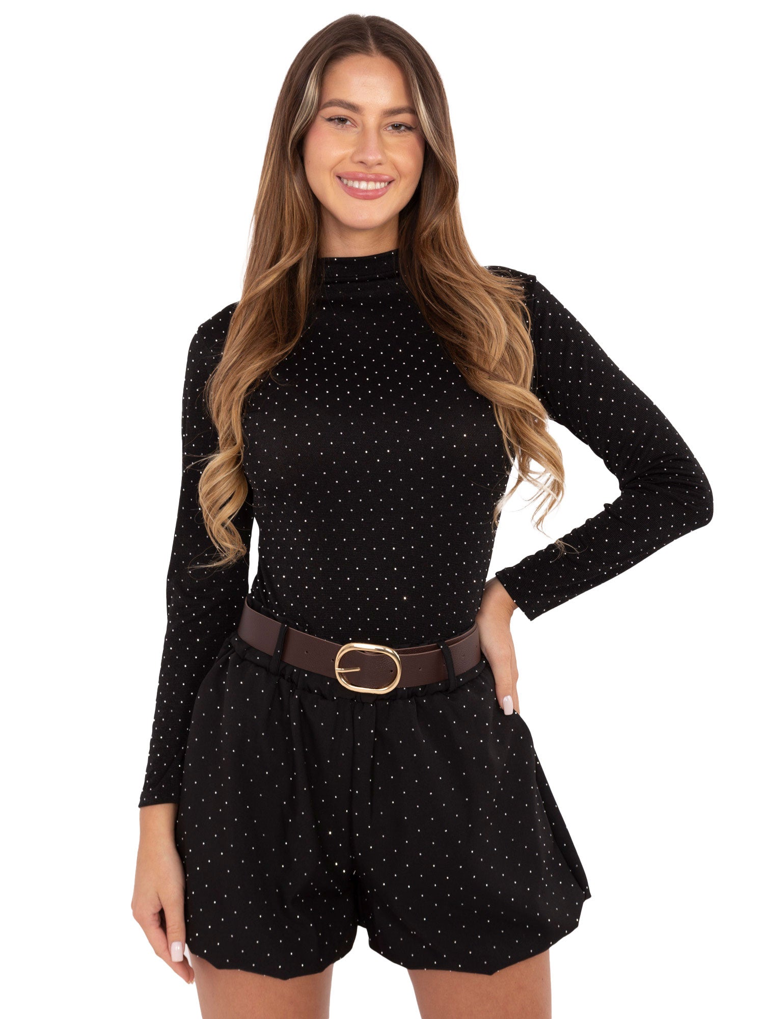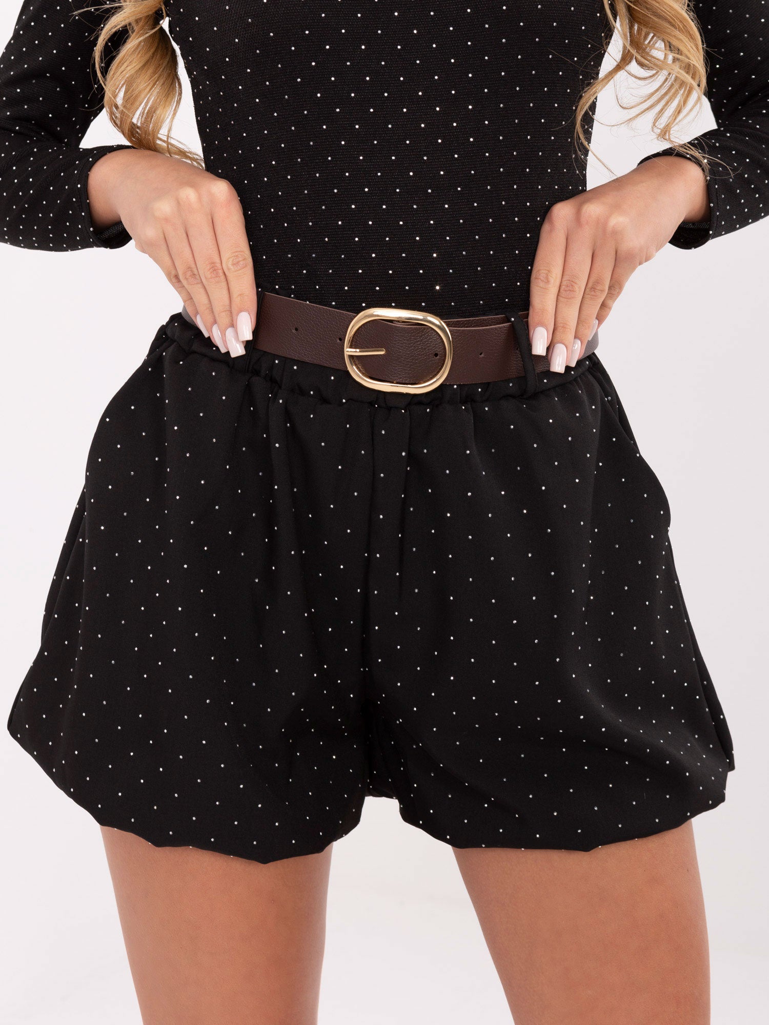 Wymiary szortów w rozmiarze one size: szerokość w pasie - 34 cm (na płasko), szerokość w pasie - 57 cm (po rozciągnięciu), obwód w biodrach - 61 cm, długość całkowita - 38 cm.