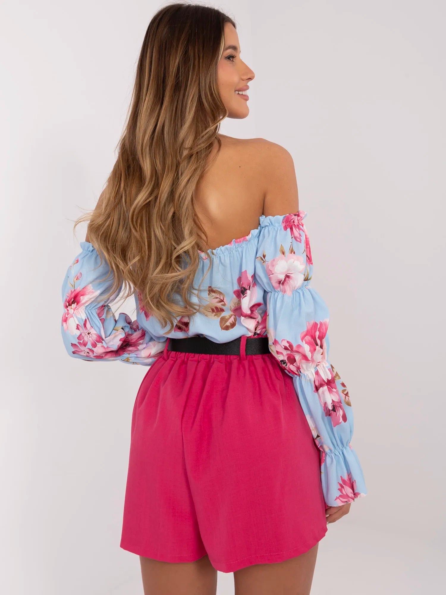 Wymiary szortów w rozmiarze one size mierzone na płasko: szerokość w pasie - 33 cm, szerokość w pasie - 50 cm (po rozciągnięciu), długość całkowita - 41 cm.