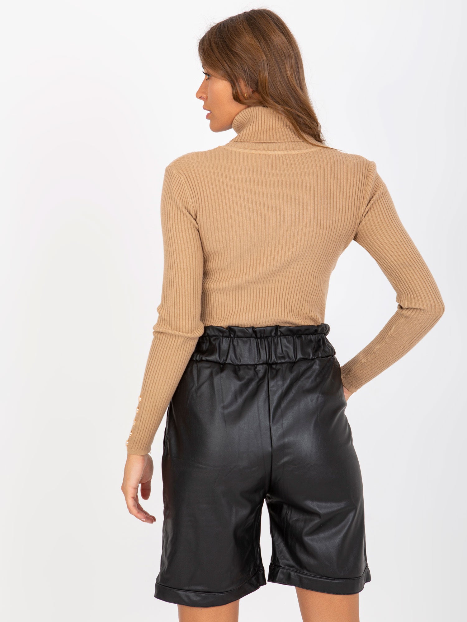 Czarne ocieplane szorty casualowe z ekoskóry .