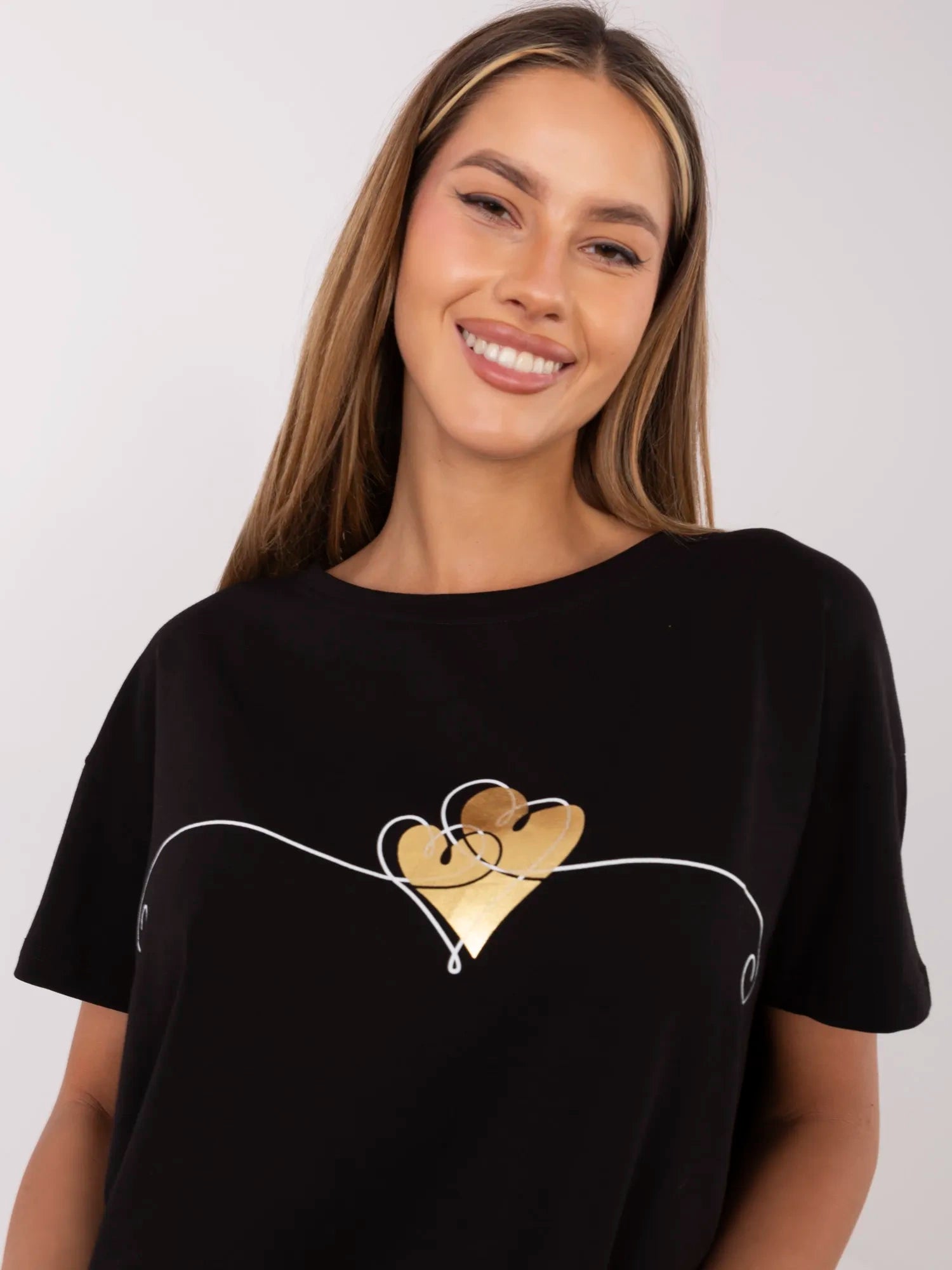 Wymiary t-shirtu w rozmiarze S mierzone na płasko: szerokość pod pachami - 56 cm długość rękawa - 13 cm (od szwu), szerokość w biodrach - 52 cm, długość całkowita - 66 cm.