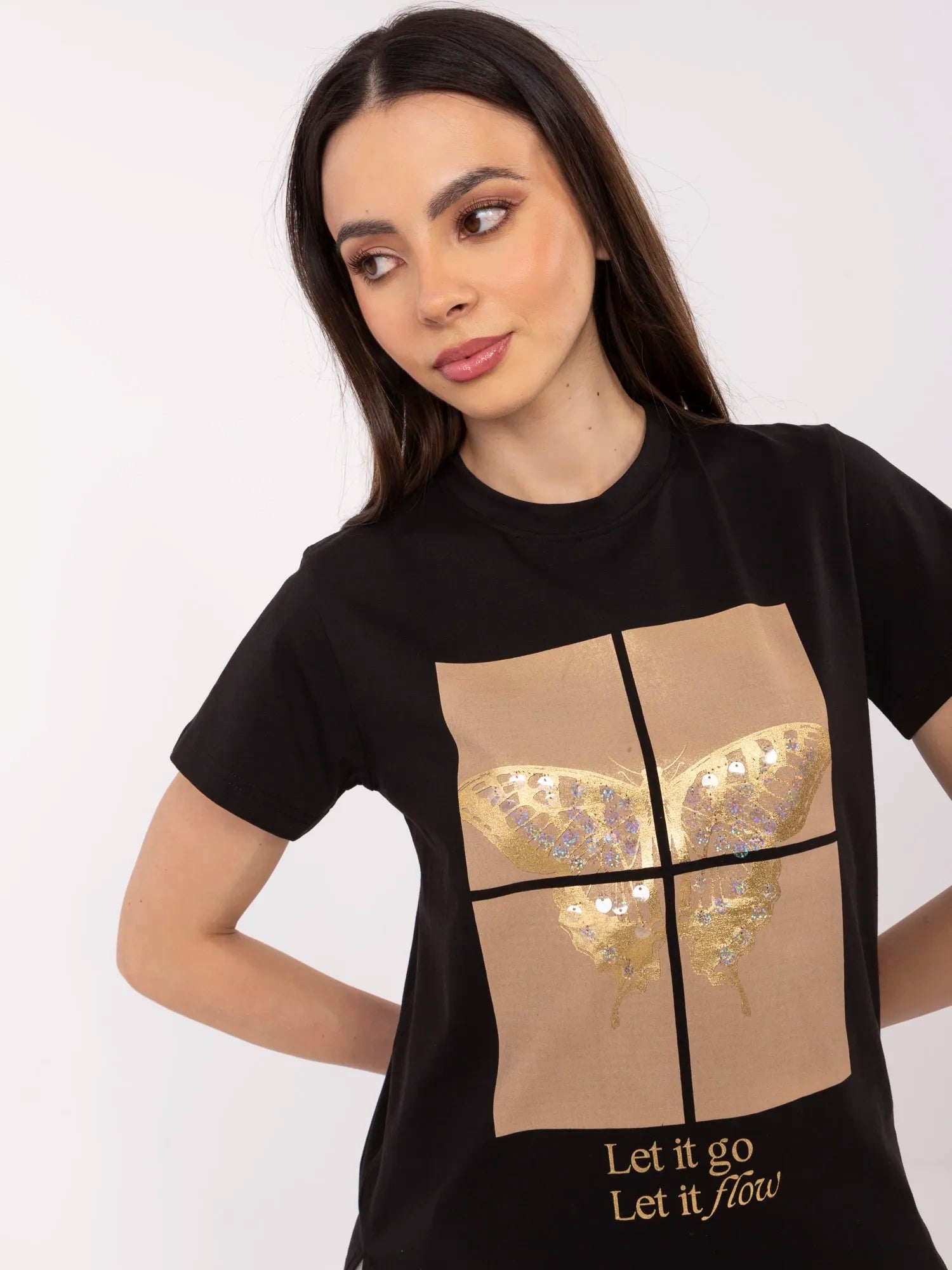 Wymiary t-shirtu w rozmiarze S mierzone na płasko: szerokość pod pachami - 47 cm, długość rękawa - 17 cm (od szwu), długość całkowita - 61 cm, szerokość w biodrach - 48 cm.