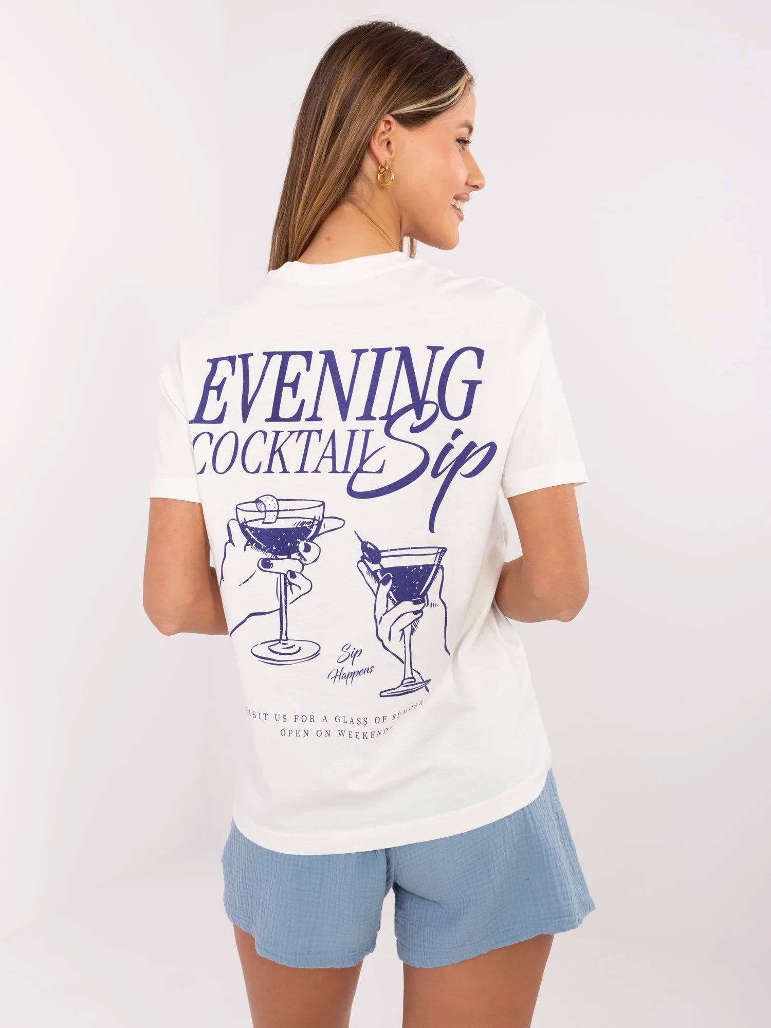 Wymiary t-shirtu w rozmiarze S mierzone na płasko: szerokość pod pachami - 55 cm długość rękawa - 18 cm (od szwu), szerokość w biodrach - 56 cm, długość całkowita - 67 cm.